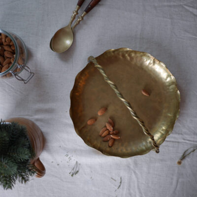 Rustikt Messing Fad med Hank
