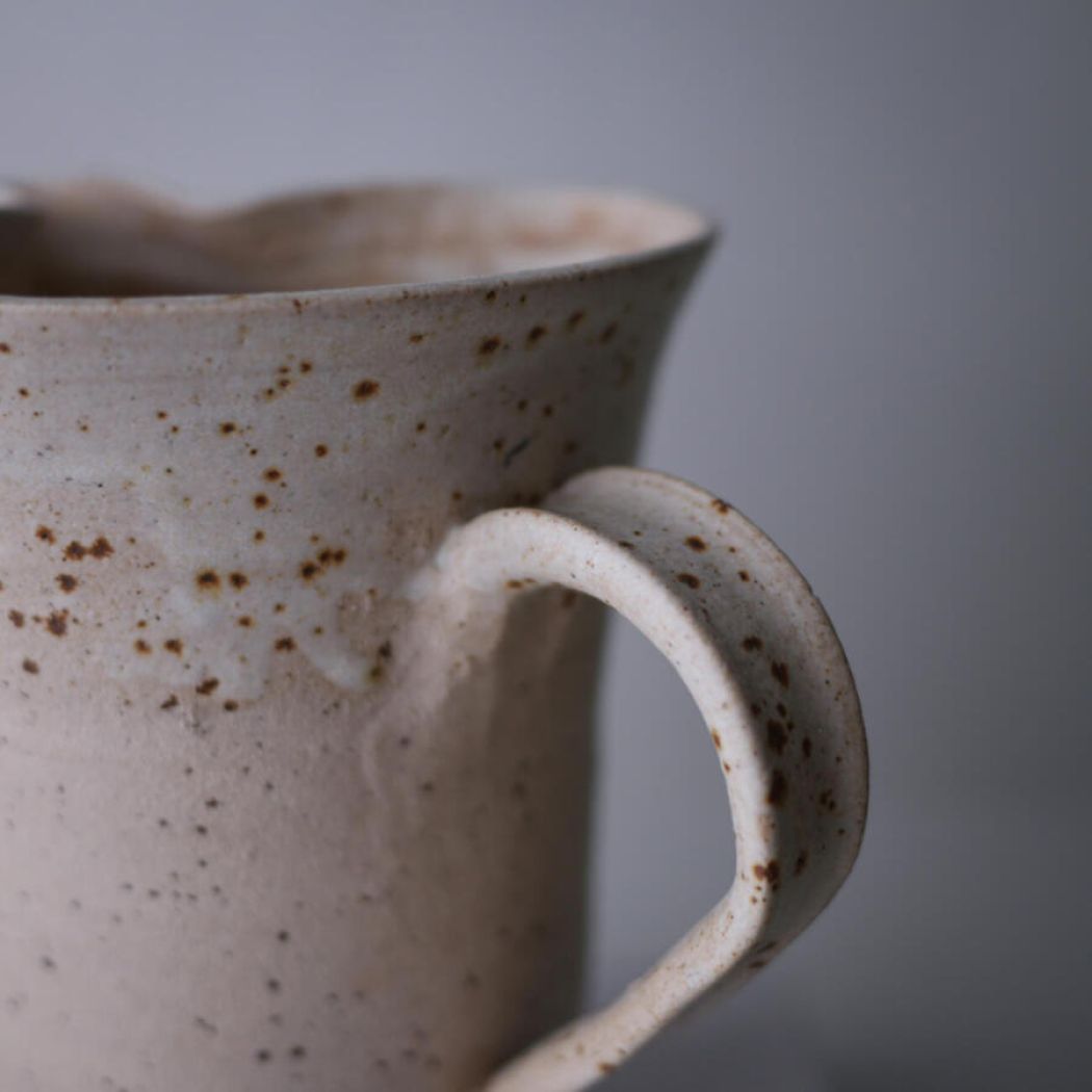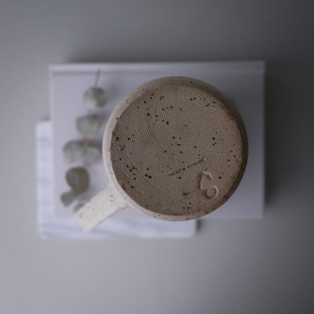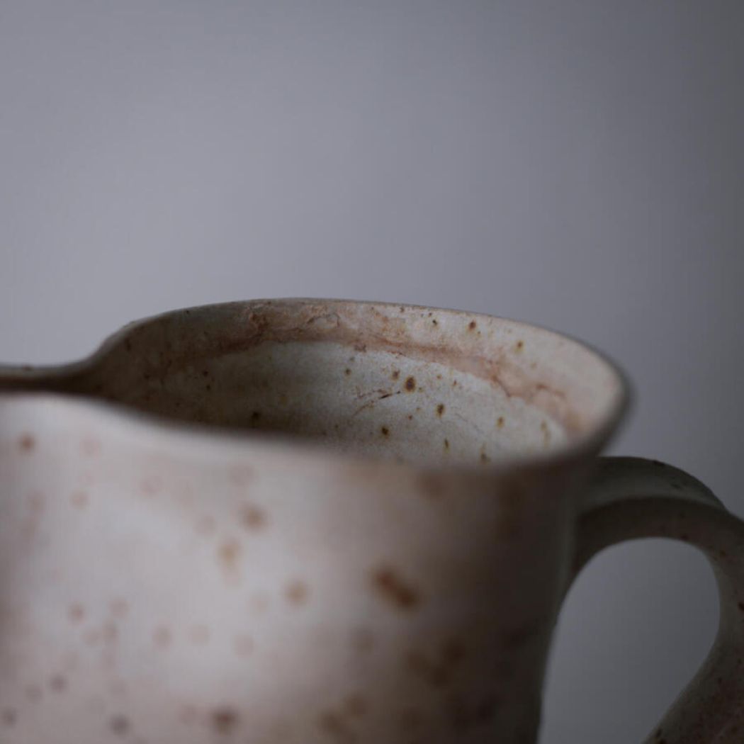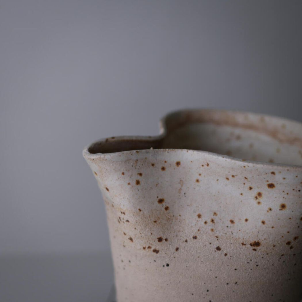 En super cool keramikkande i den lækreste skulpturelle formsprog. Kanden er i en lys nuance med lækre rustikke nistre i glasuren. En kande til dekoration, en kølig lemonade eller vilde blomster i sommerhuset.