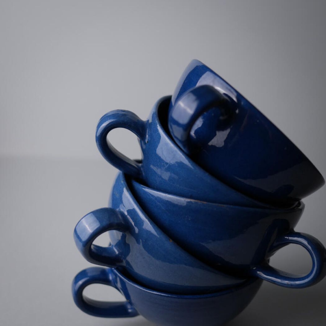 Blå Keramik Kopper, 5 stk.