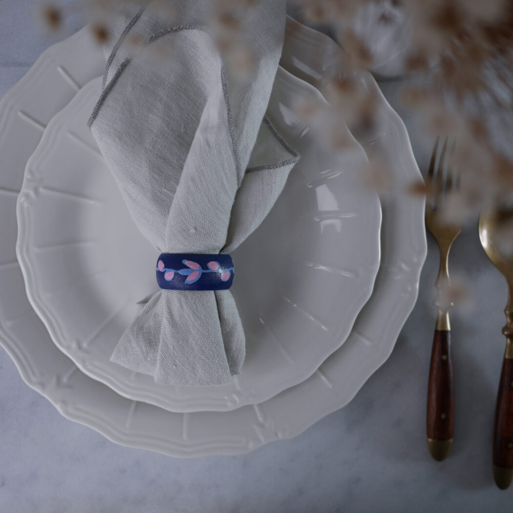 Blå Servietringe med Lyserøde Blomster, 6 stk.