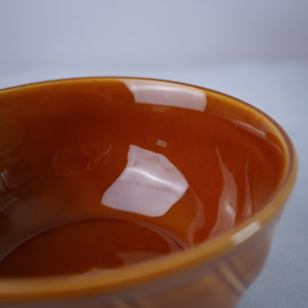 Et sæt smukke tyske brune serverings skåle med flotte detaljer. Farven er varm og dyb og skålene har gode størrelser til servering eller madlavning. 2 stk. fundet i Jylland, og de sælges samlet.