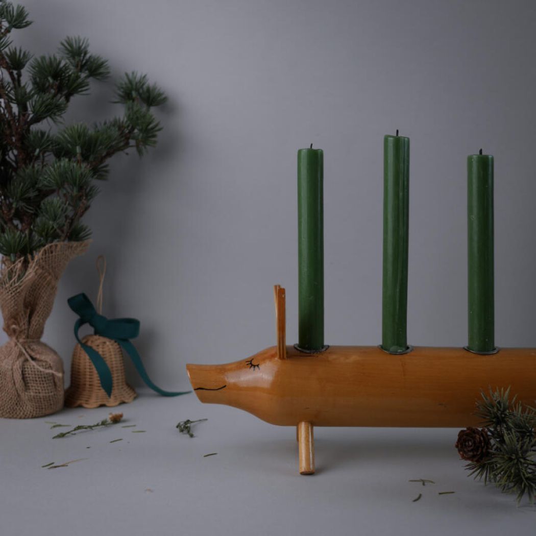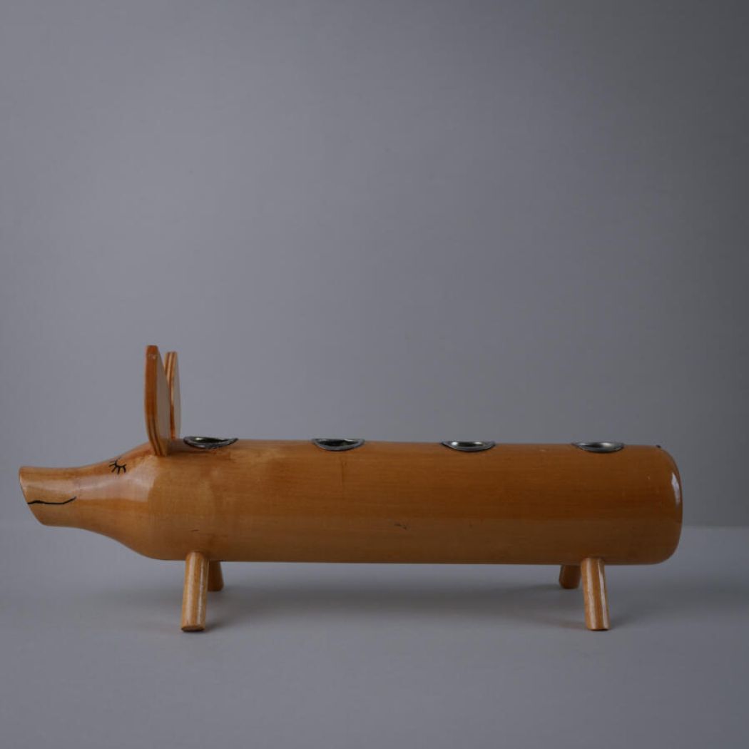 Her kommer et af mine favoritfund fra denne uges indkøbstur. En charmerende grise adventsstage i træ. Ej men se ham lige!! Retro julepynt med sjæl og nostalgi i særklasse. Plads til fire kronelys. Stagen er fundet i Sverige.