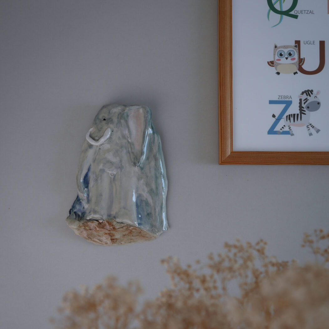 Et super charmerende håndlavet elefant relief perfekt til børneværelset. Det er skørt, skævt og noget ganske særligt – et håndlavet fund i særklasse. Så sødt i den rigtige indretning. Elefant relieffet i keramik er fundet i Sverige.