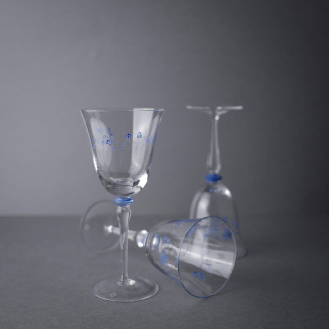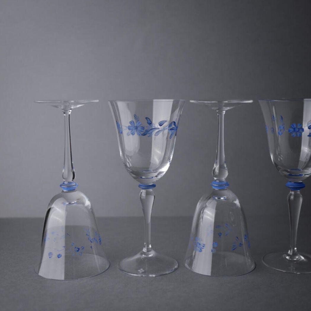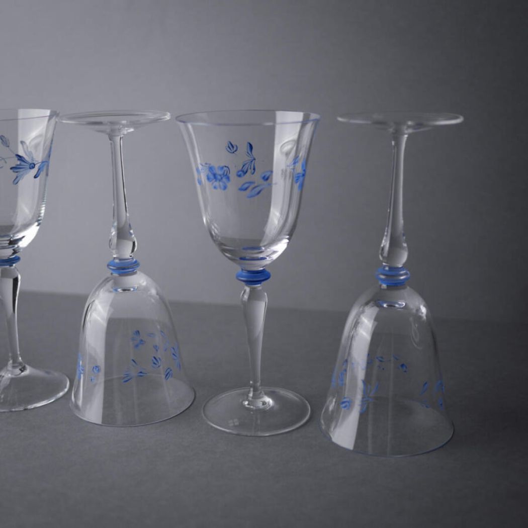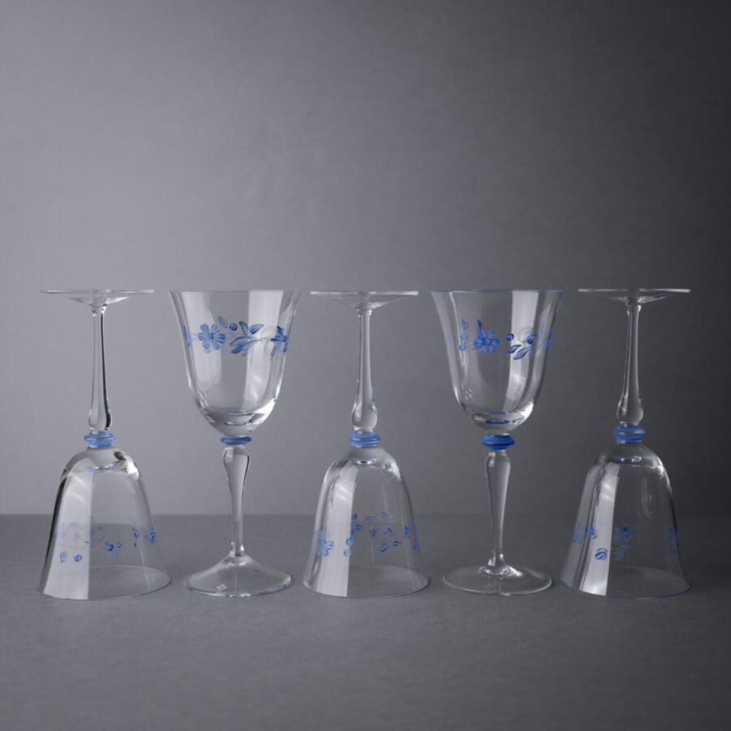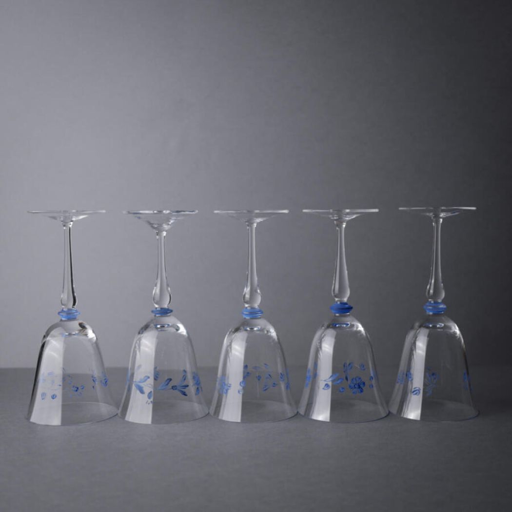 Christine Holm Vinglas med Blå Blomster, 5 stk.