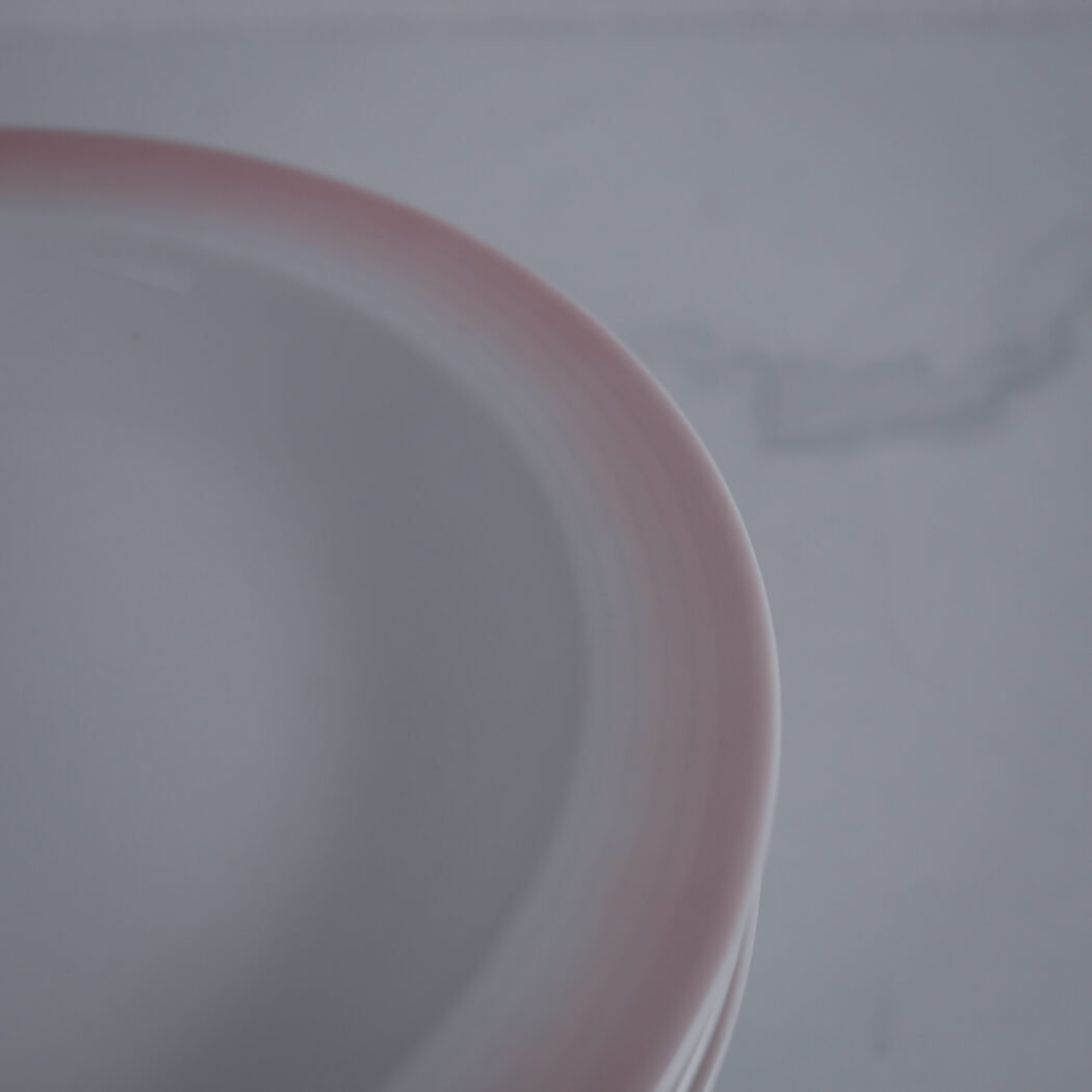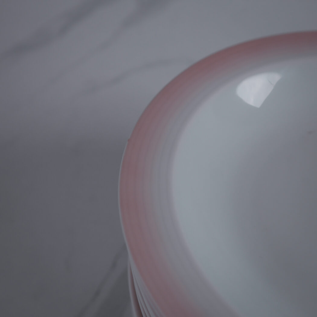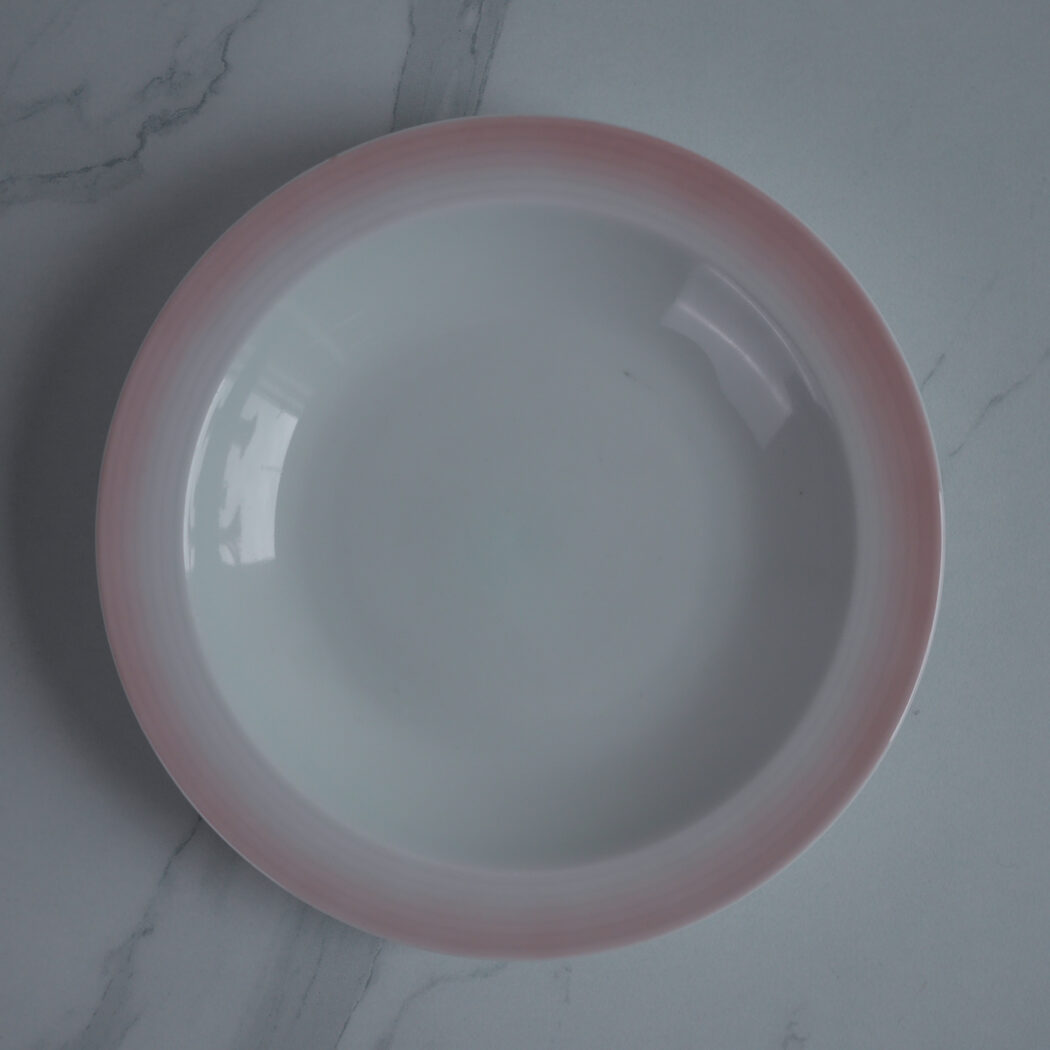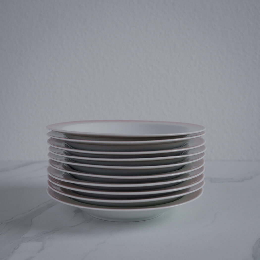 Et sæt på ti smukke, dybe tallerkner i sart rosa porcelæn. Den blide pasteltoning giver et let og luftigt udtryk, perfekt til at skabe en lys og indbydende borddækning. Tallerknerne er et charmerende svensk fund og de 10 stk. sælges samlet.