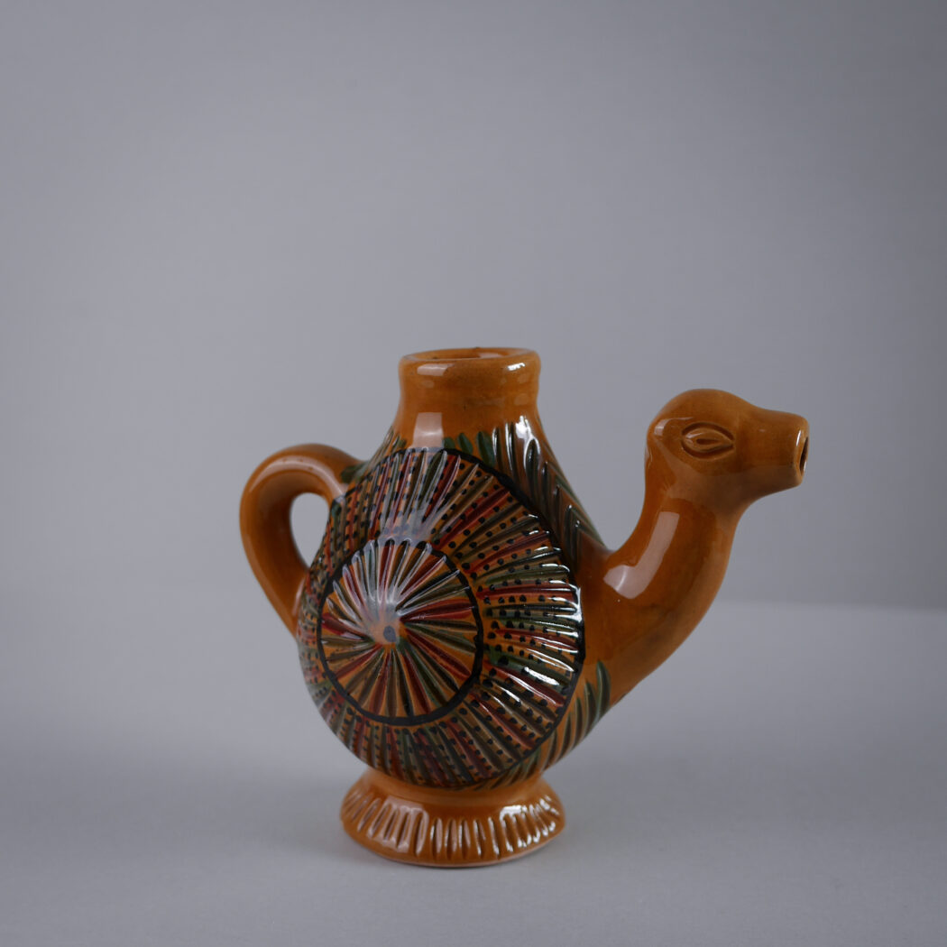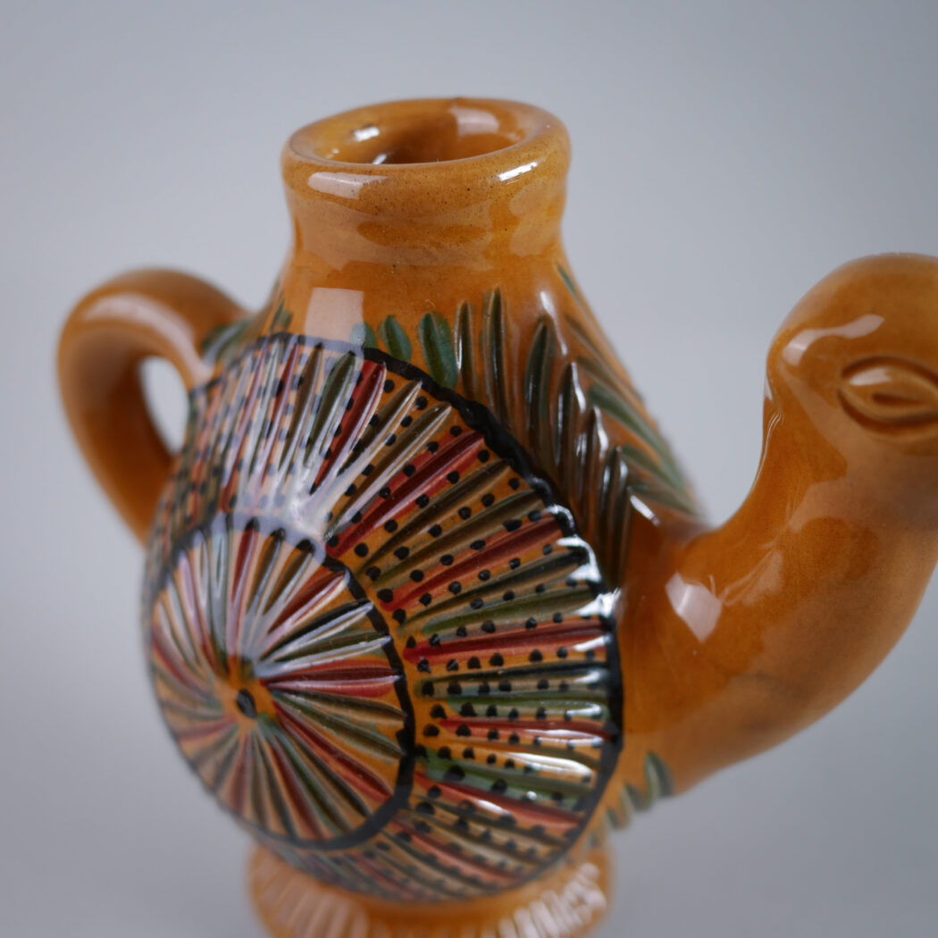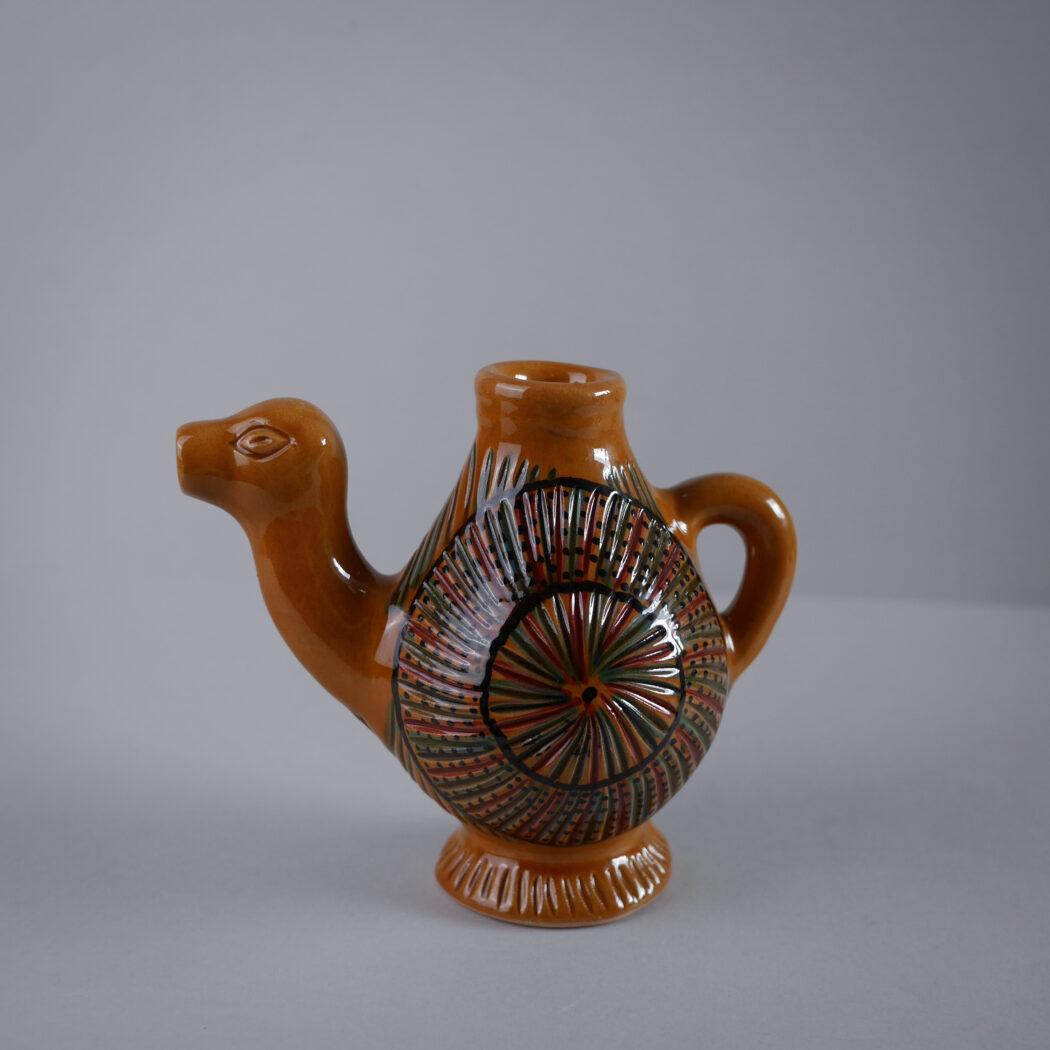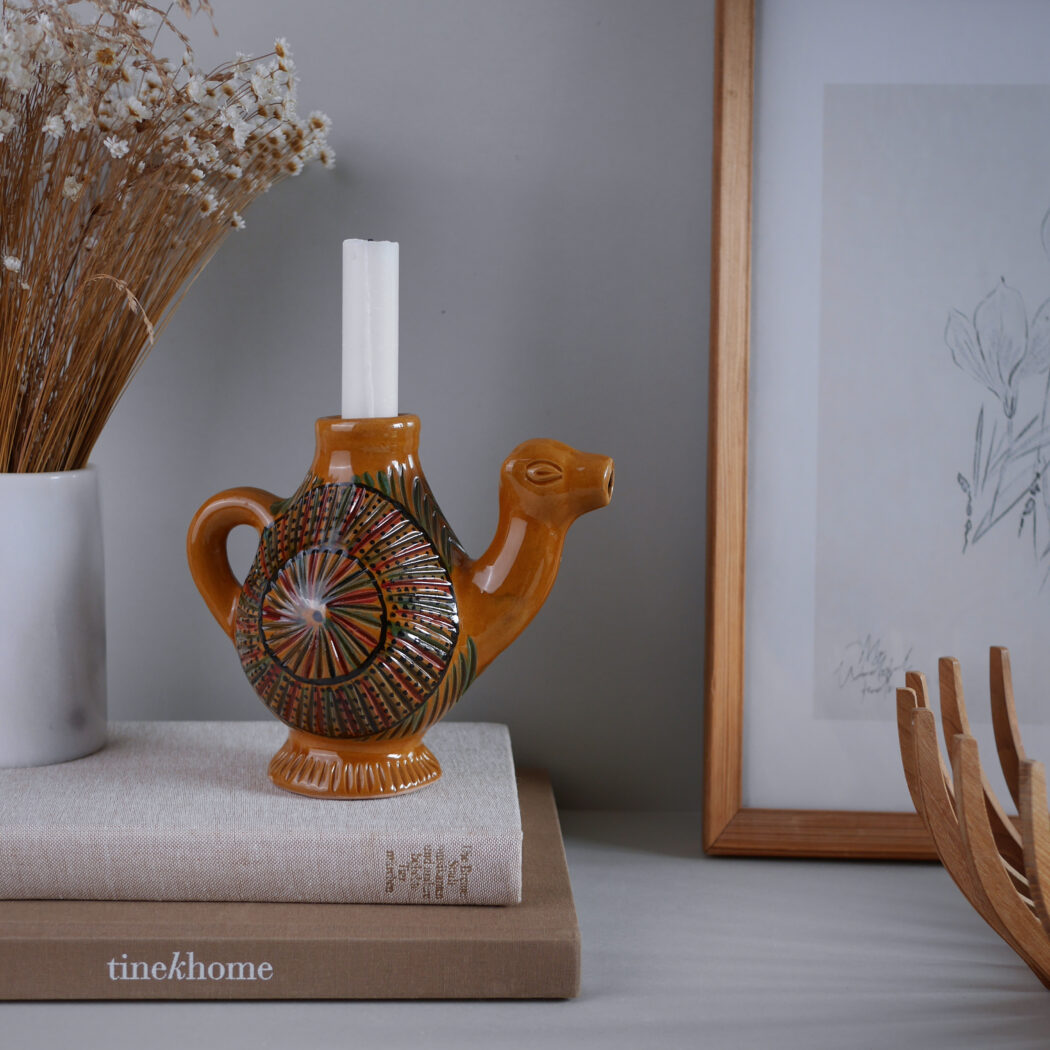Et fantastisk skørt, sjovt og personligt fund – en charmerende og farverig kamel lysestage. De små unikke fund giver personlighed, når de styles i en indretning. Denne skønne kamelstage er fundet i Jylland. Passer til et kronelys.