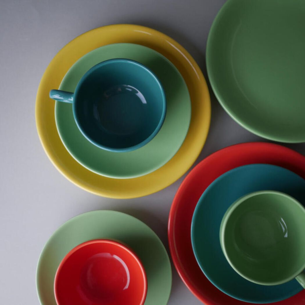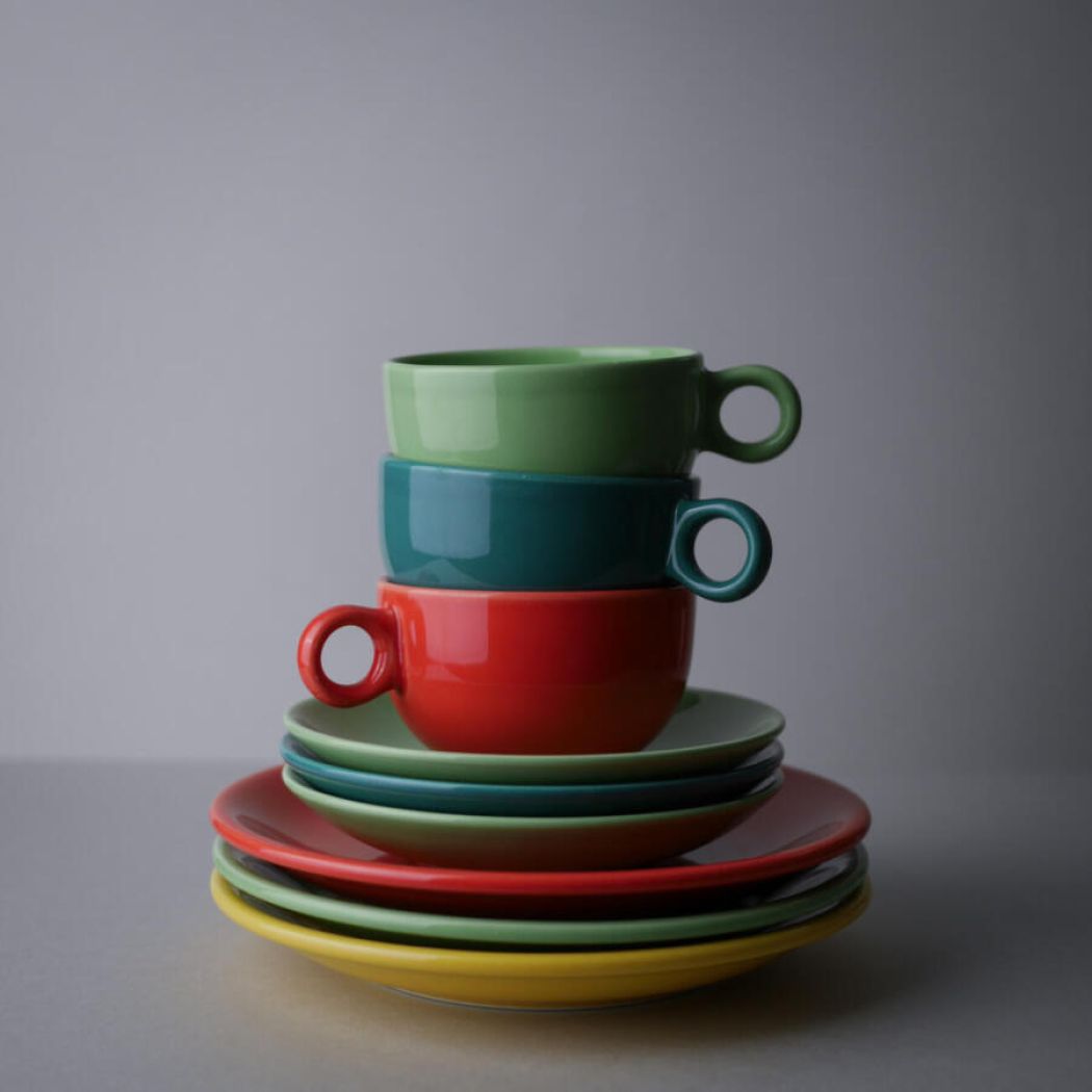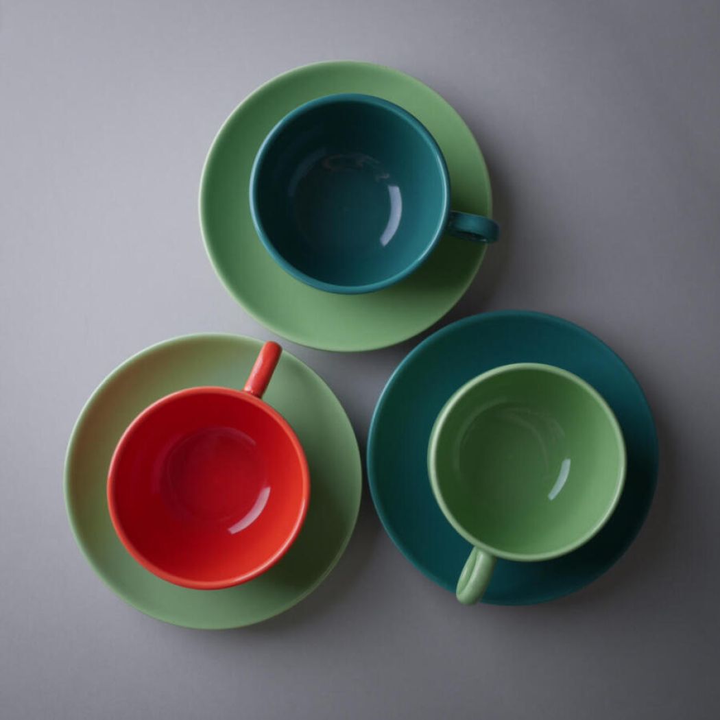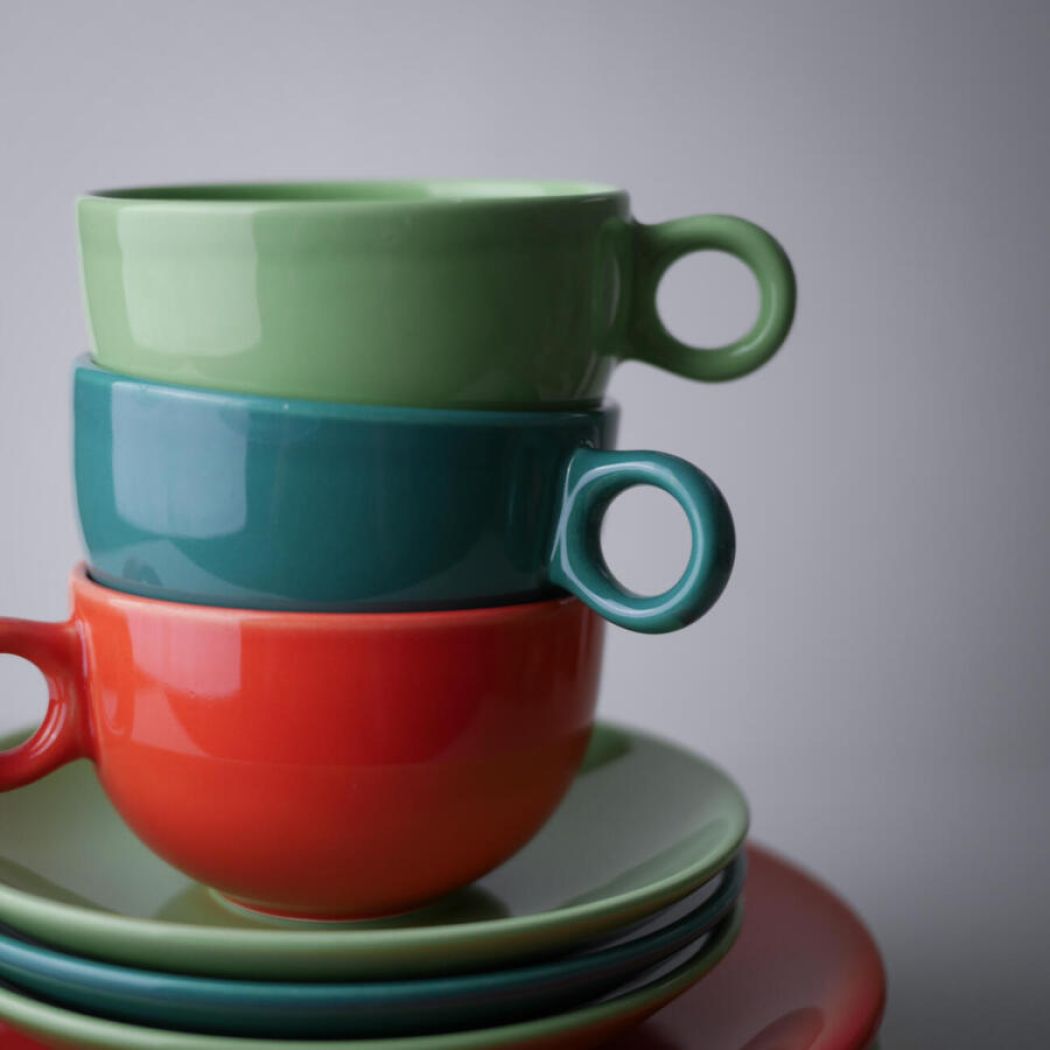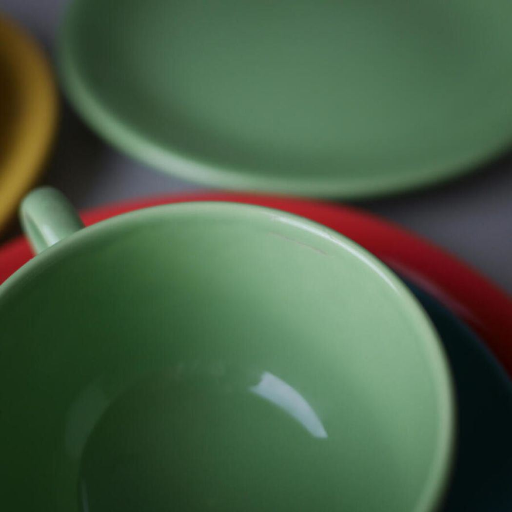 Flotte farverige italienske kaffesæt bestående af en lille tallerken samt en kop med underkop. Farverne er helt tilfældige og kan mikses på kryds og tværs, så leder du efter flotte sæt til sommerhuset, som kan sætte spræl og farve på bordet, så har du her muligheden for leg med farver. Der er 3 sæt, som sælges samlet. Obs. den grønne kop har en lille revne i kanten indeni.
