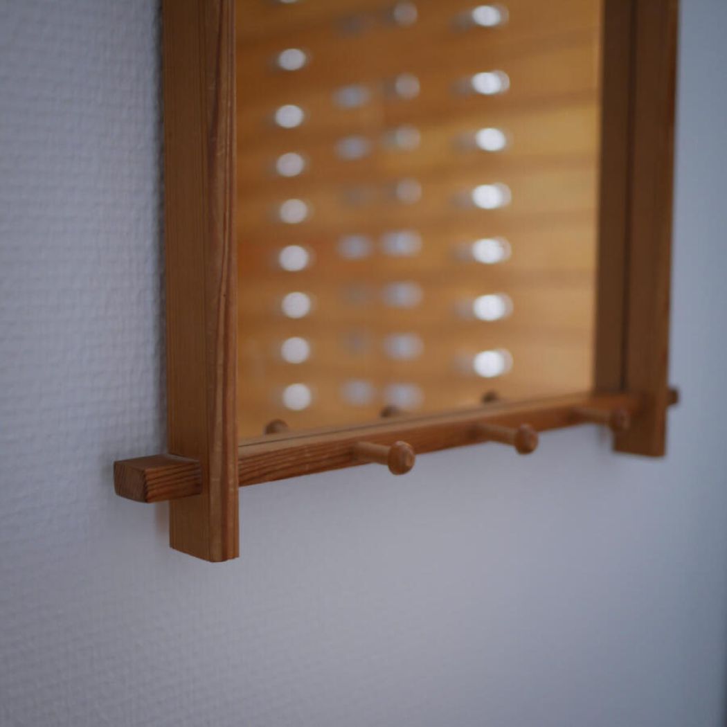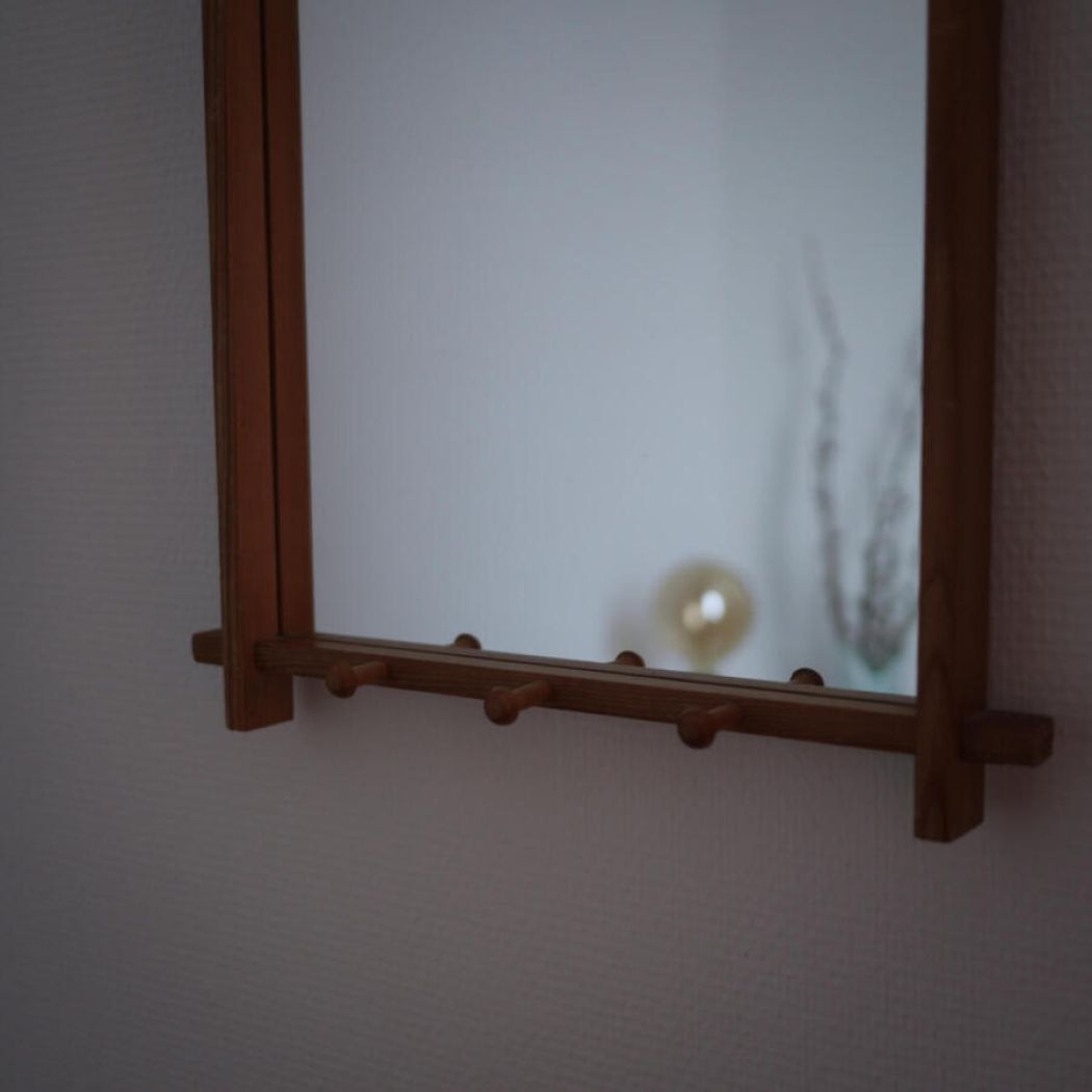 Firkantet Retro Træspejl med Knager