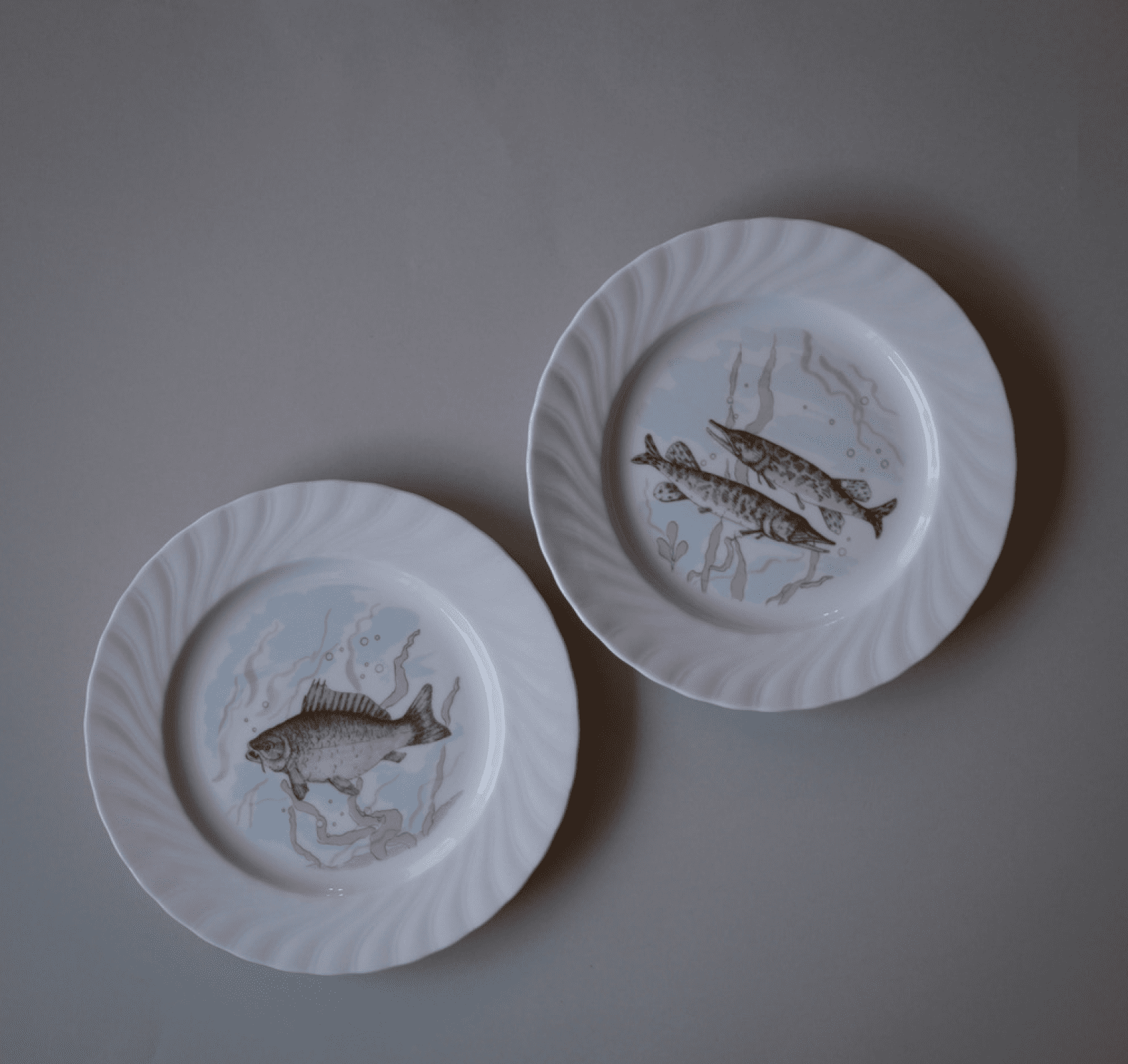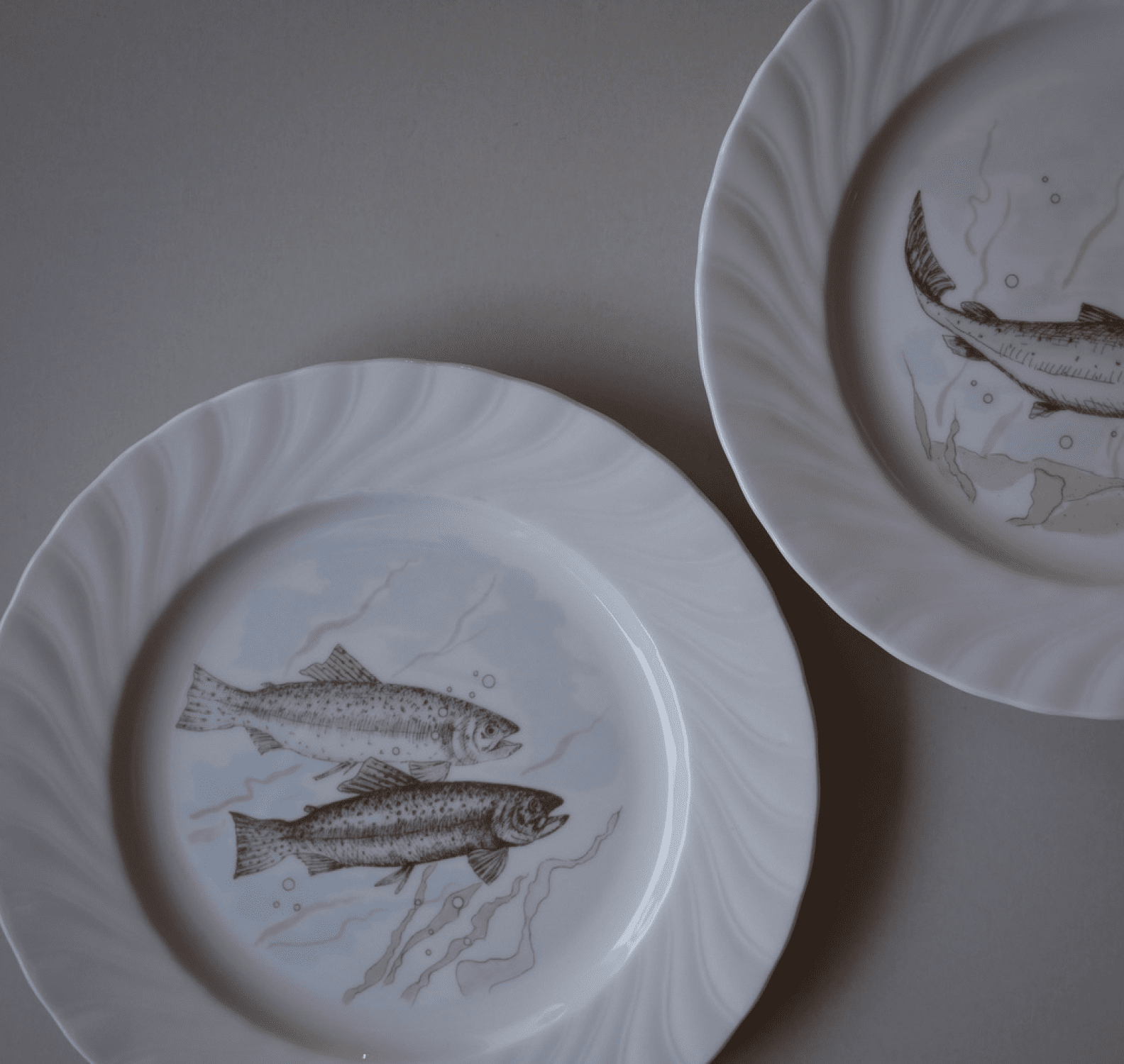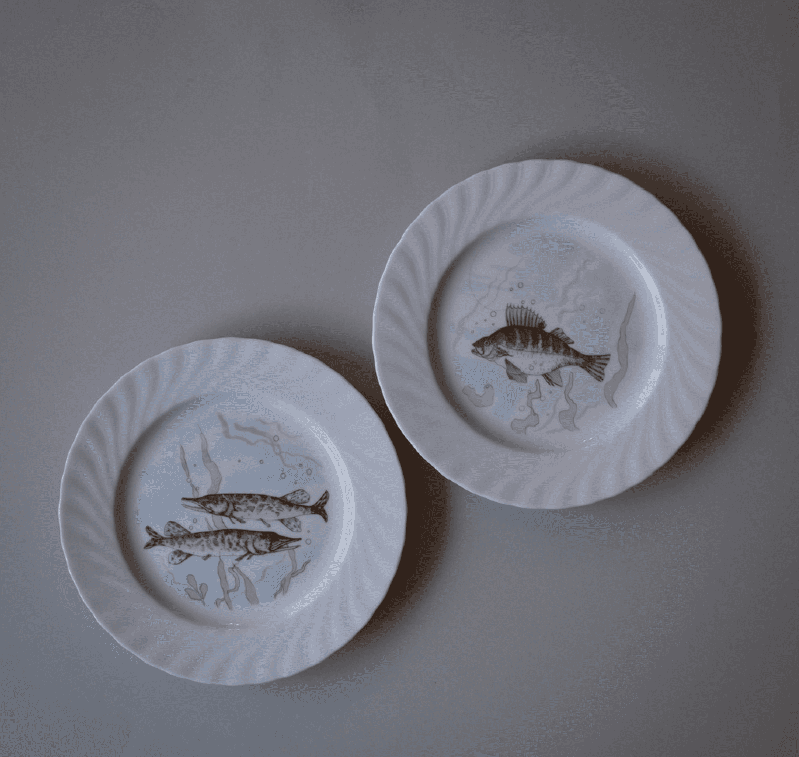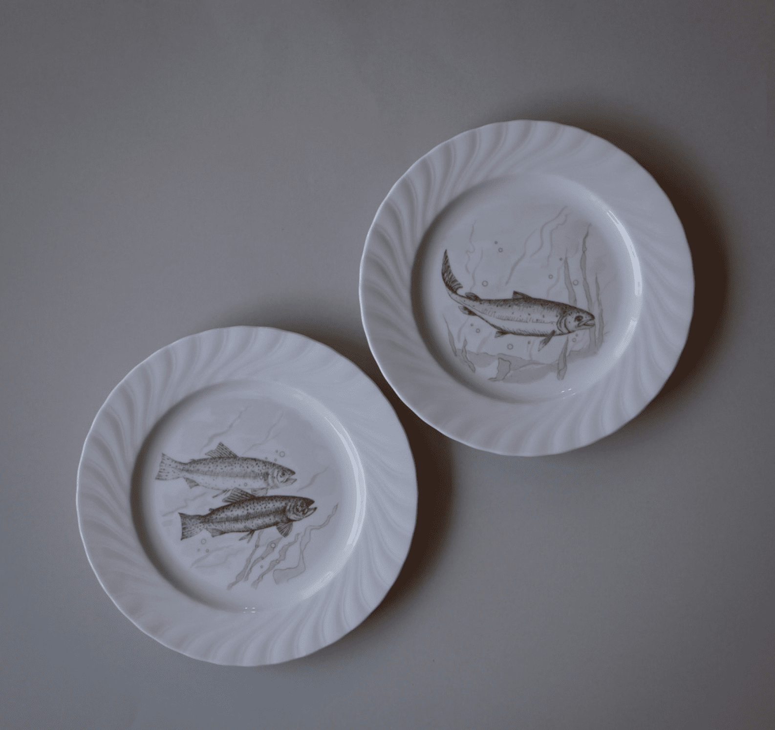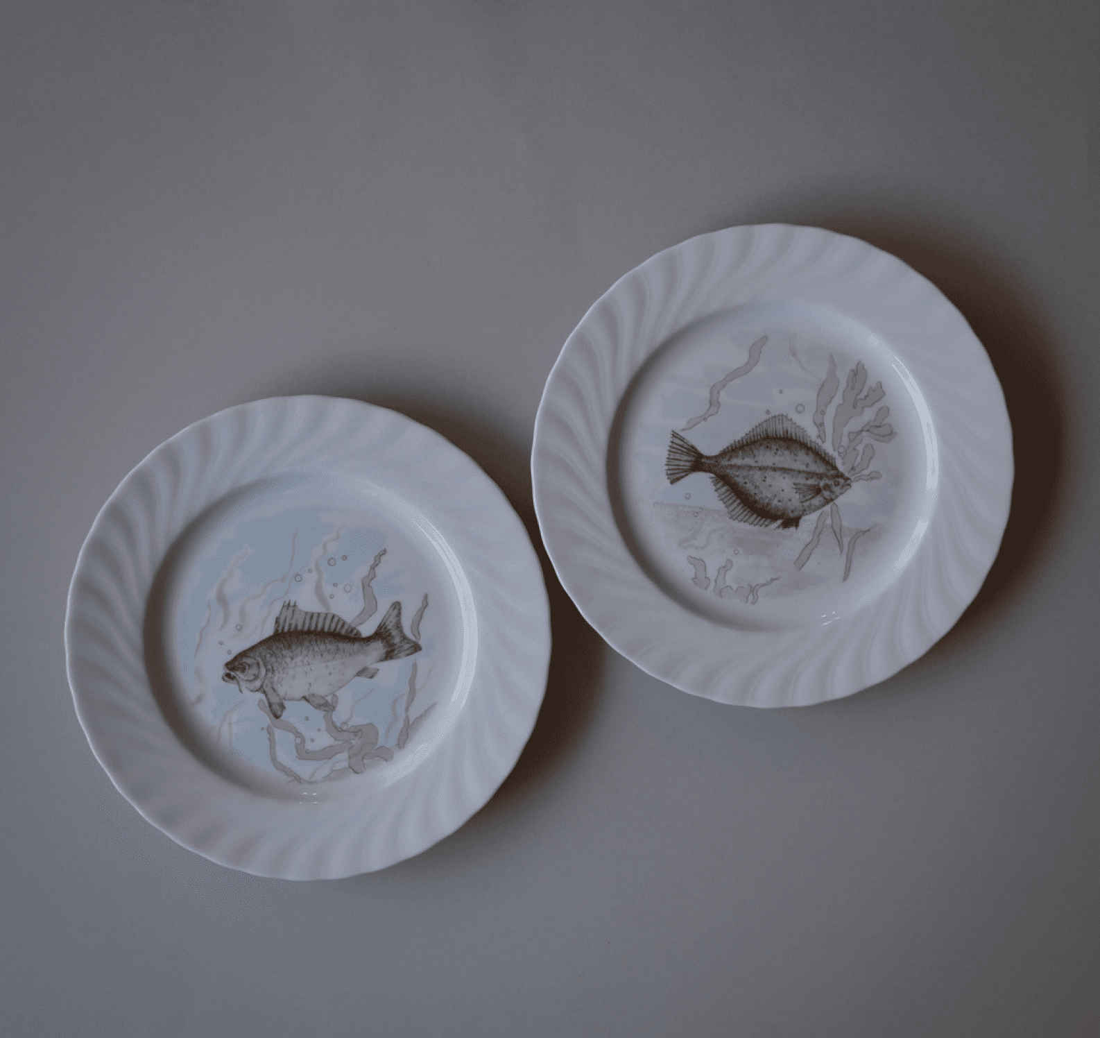 ✓ WAUWgaranti - 100% Pengene TilbageFisk og swirl. Jeg er så heldig at være faldet over en lille stak af de populære fisketallerkener. De skønneste pastel motiver og en elegant swirl-kant. 8 stk. haves
