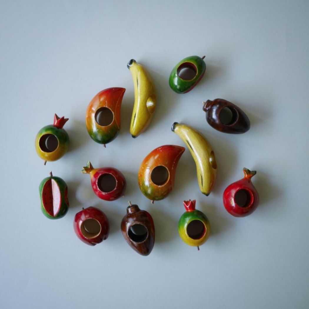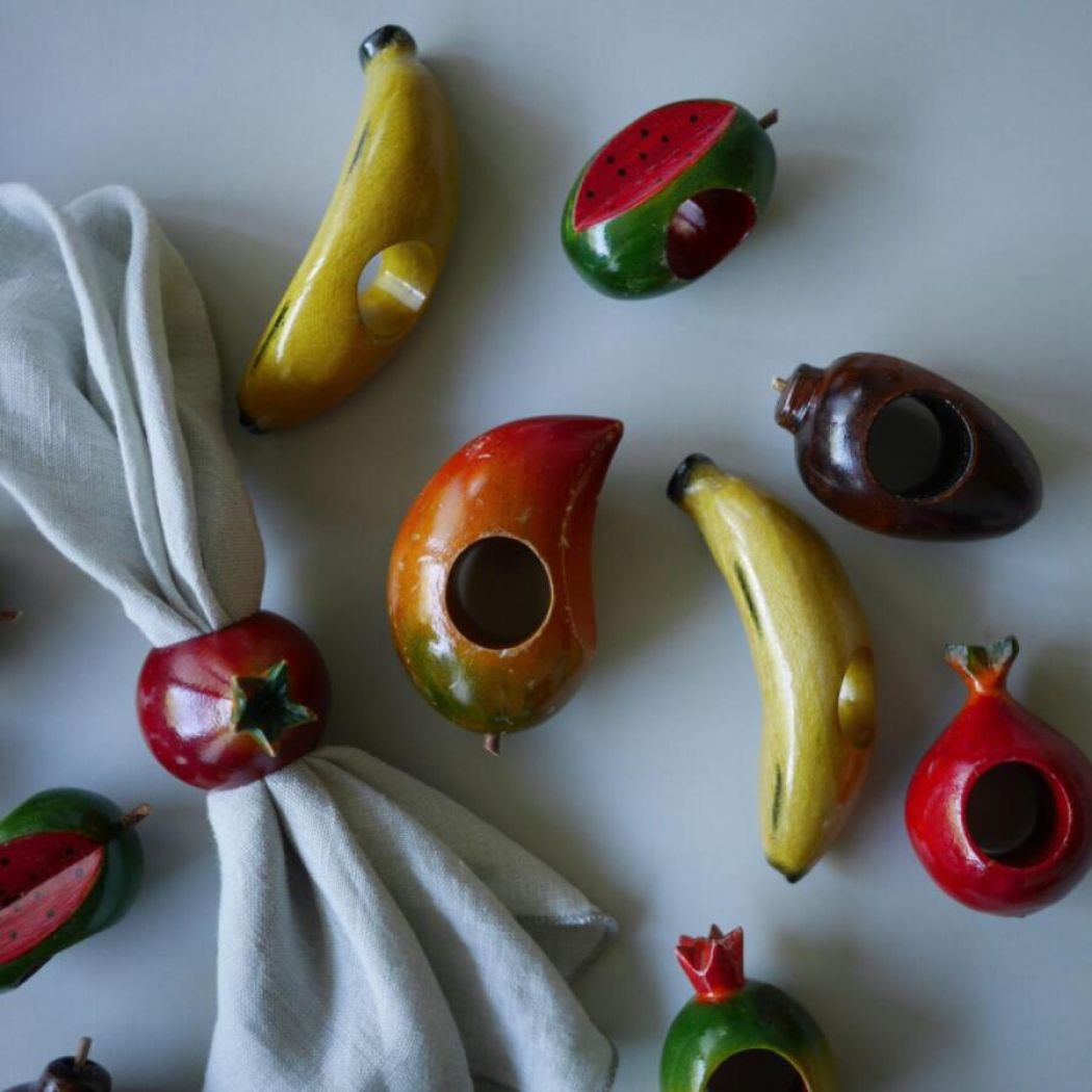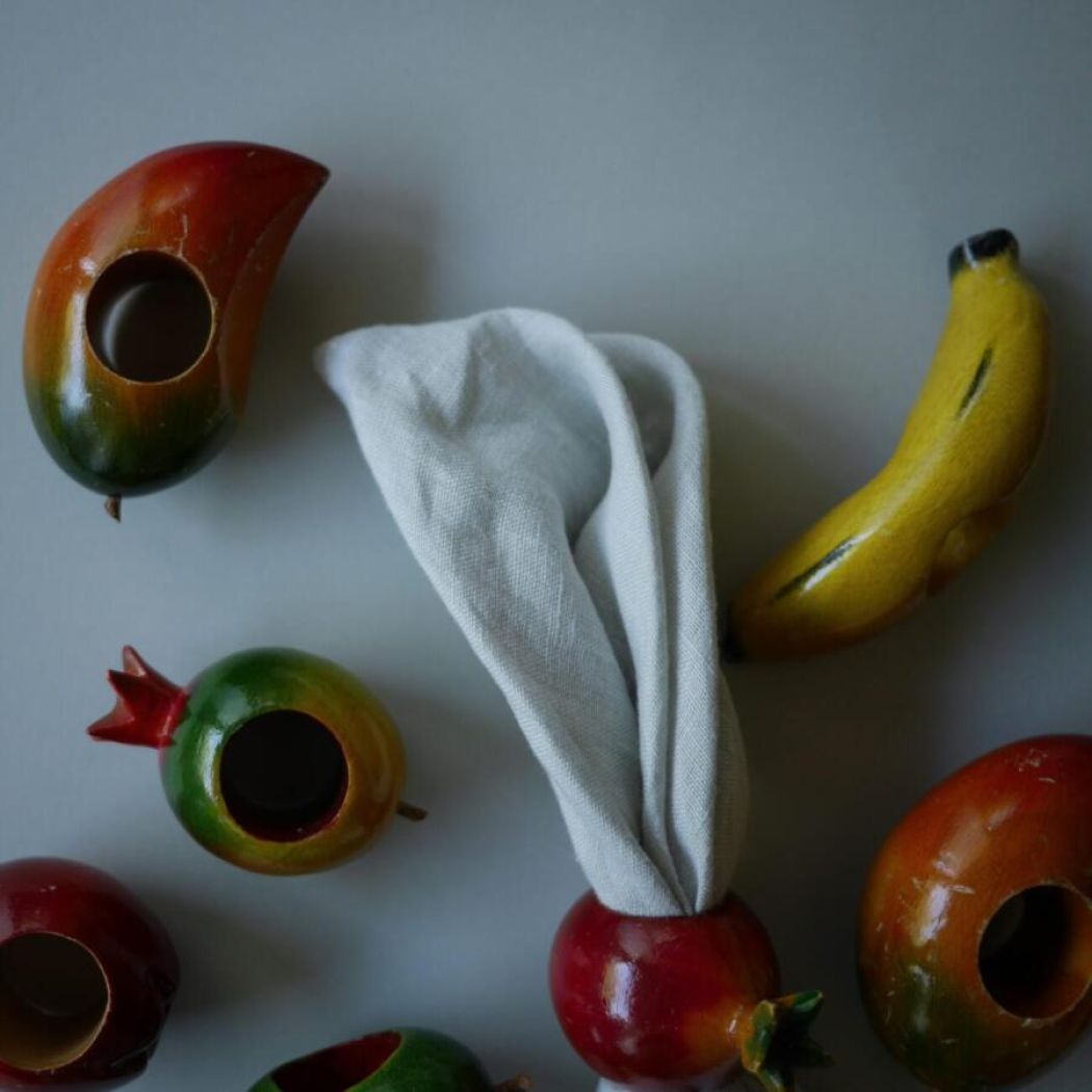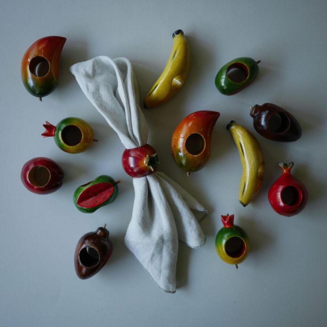 Skal der lidt humor og farve på spisebordet, så er her et rigtig godt bud, og endda et sundt et af slagsen. Sjove og finurlige frugt servietringe i flotte farver og flere forskellige slags. De kan i hvert fald bidrage til et sprudlende og sjovt spisebord. 13 stk. haves, sælges samlet.
