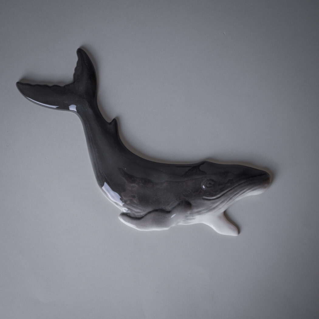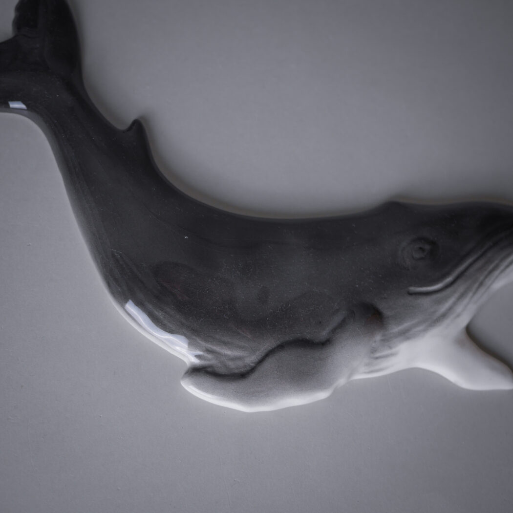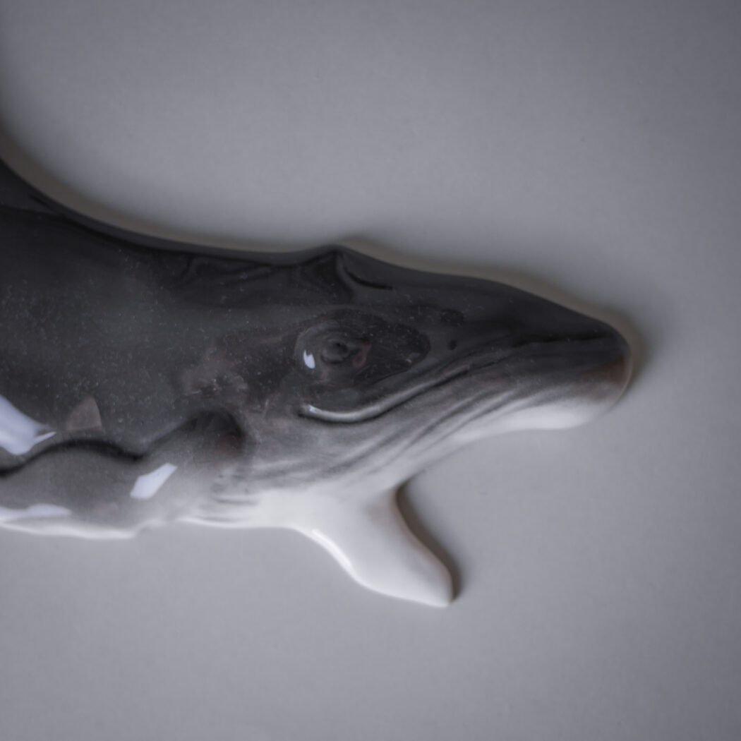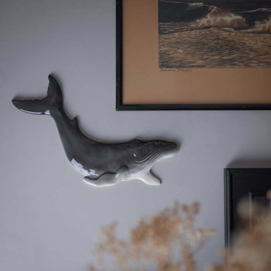 En flot og dekorativ stor grå hval til væggen. Giv din billedvæg et strejf af personlighed med et miks af keramik og billeder, det skaber liv. Hvalen er fundet i Sverige, og klar til at hænge op.