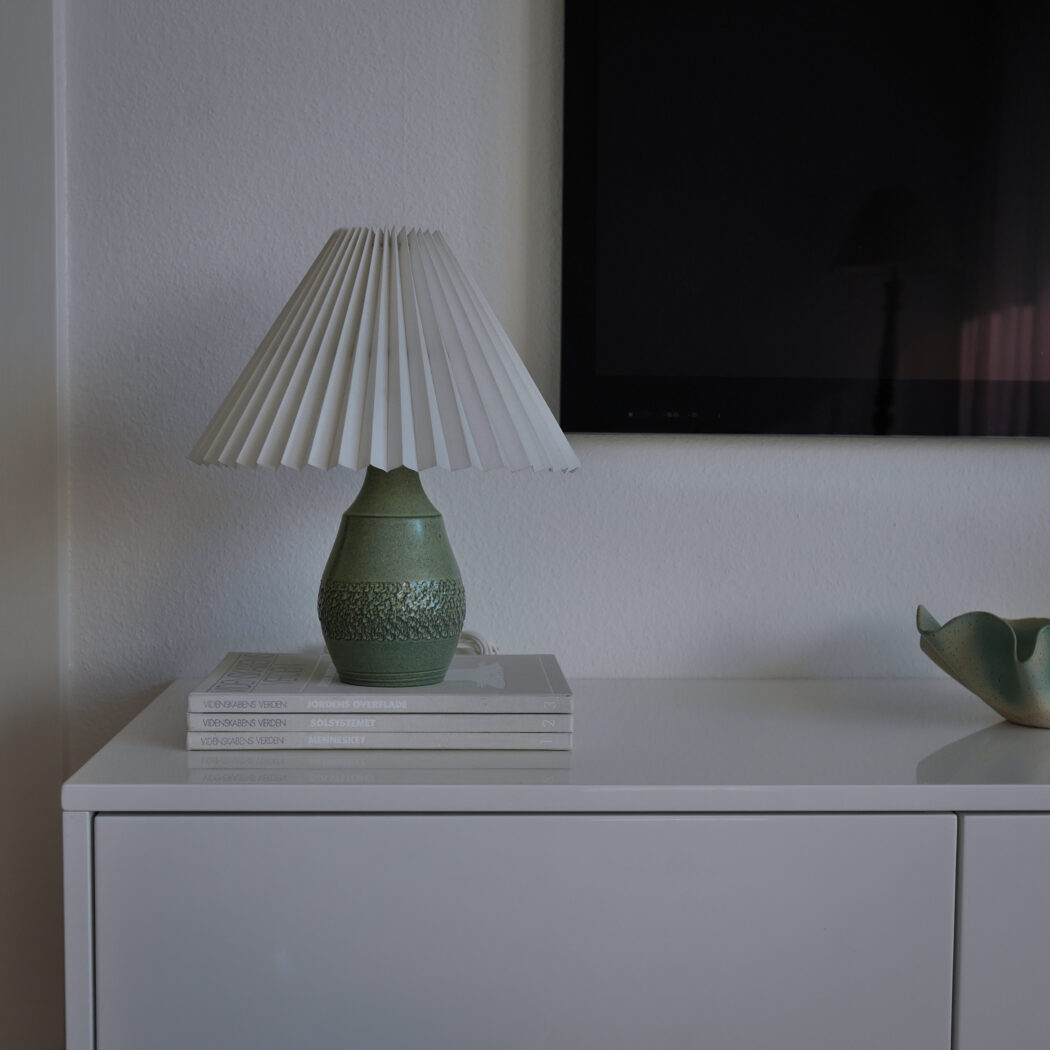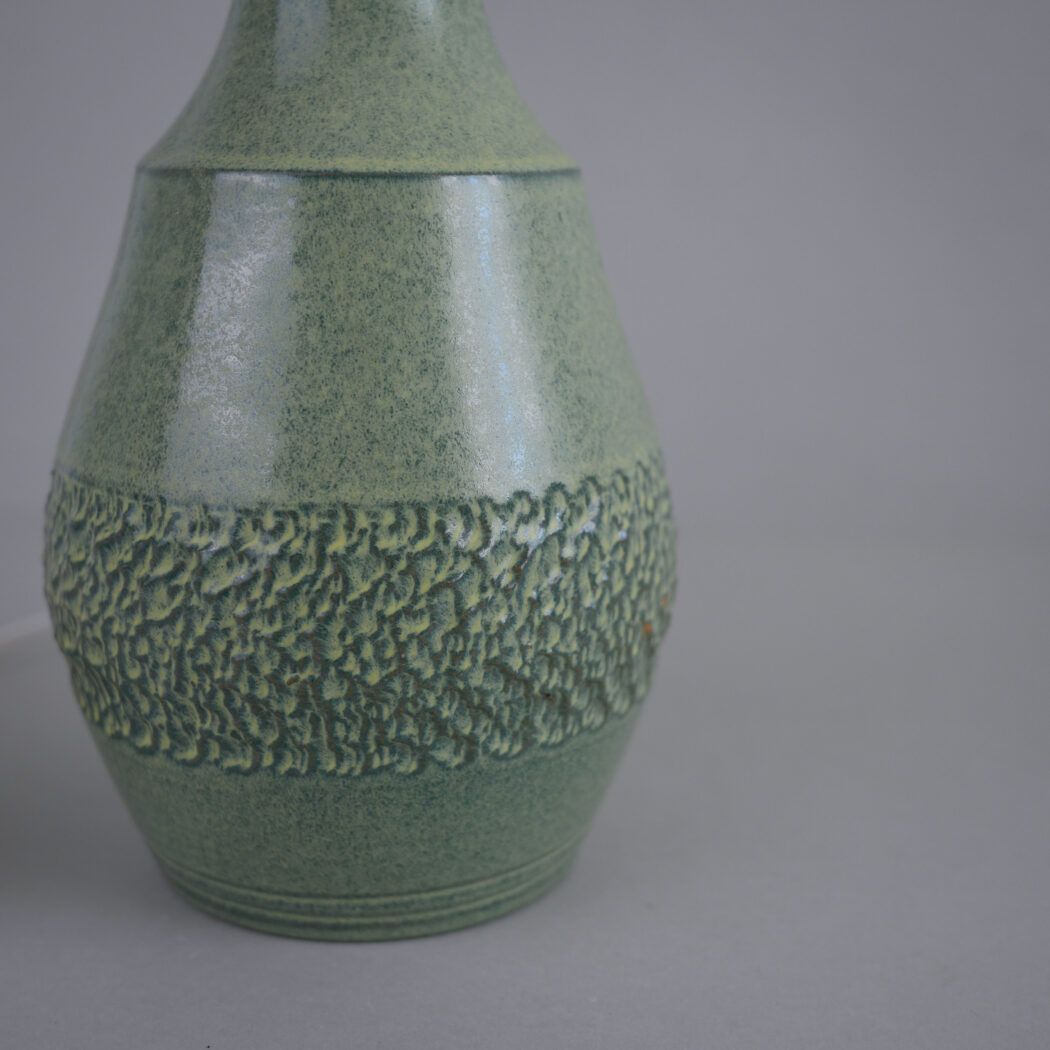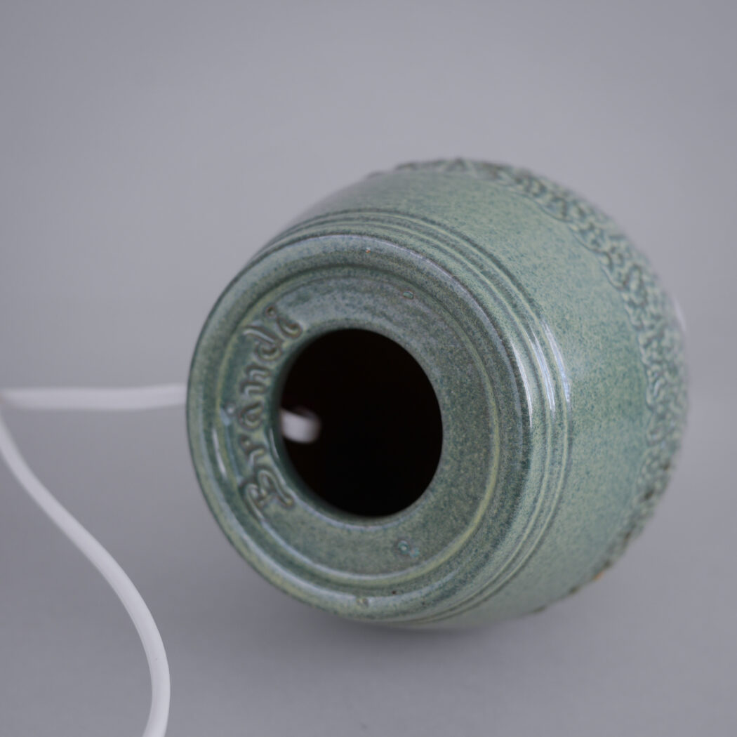 En utrolig smuk grøn vintage keramik lampe med fine mønstre i keramikken. Enkel, men med smukke detaljer – kombiner med en enkel skærm for et tidløst udtryk. Lampen er fundet i Sverige, og sælges uden skærm.