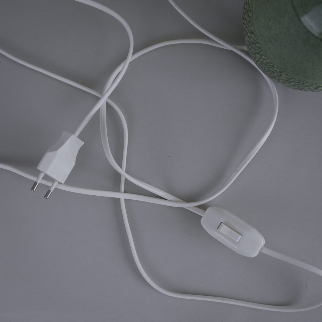 Mål: H: 18 (inkl. fatning 24 Ø: 10 cm. Ledning L: 185 cm.