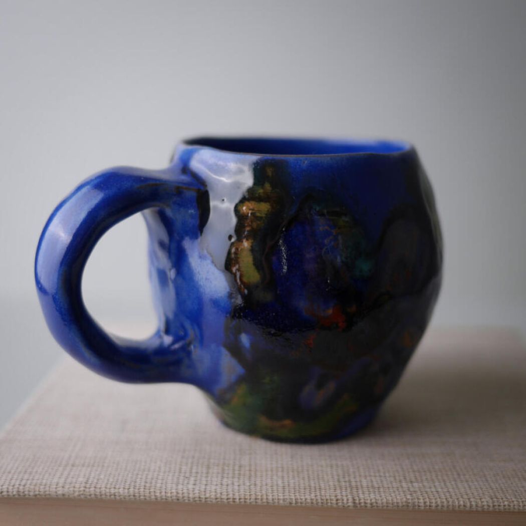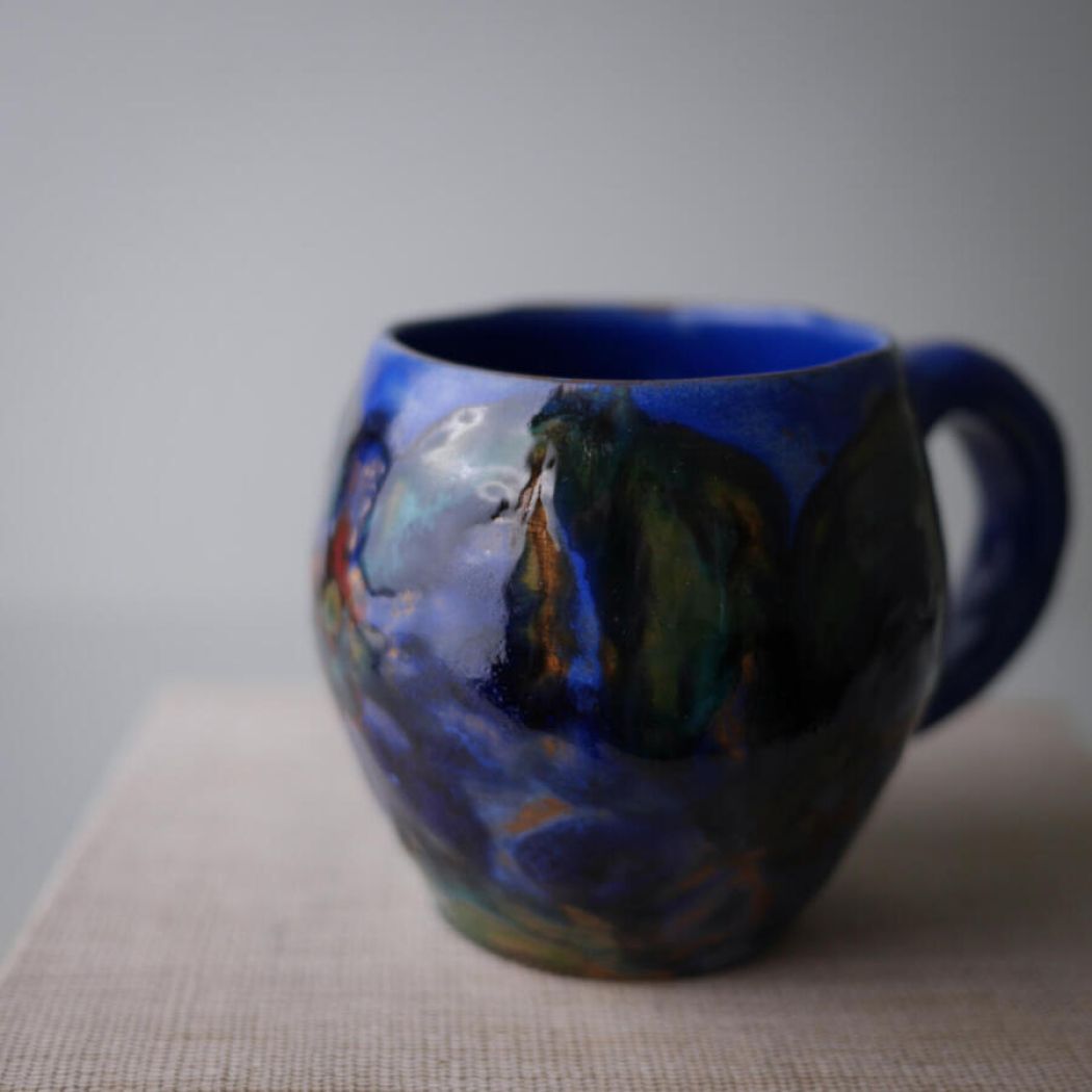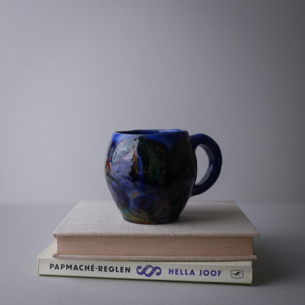Jeg er vild med unika keramik, og jeg er vild med dette skønne håndlavede mørkeblå krus i keramik med smukke dekorationer. Farverne er utrolig flotte og krusets udformning virkelig skøn! Et unikakrus til kopreolen, så bliver morgenkaffen bare så meget mere særlig.