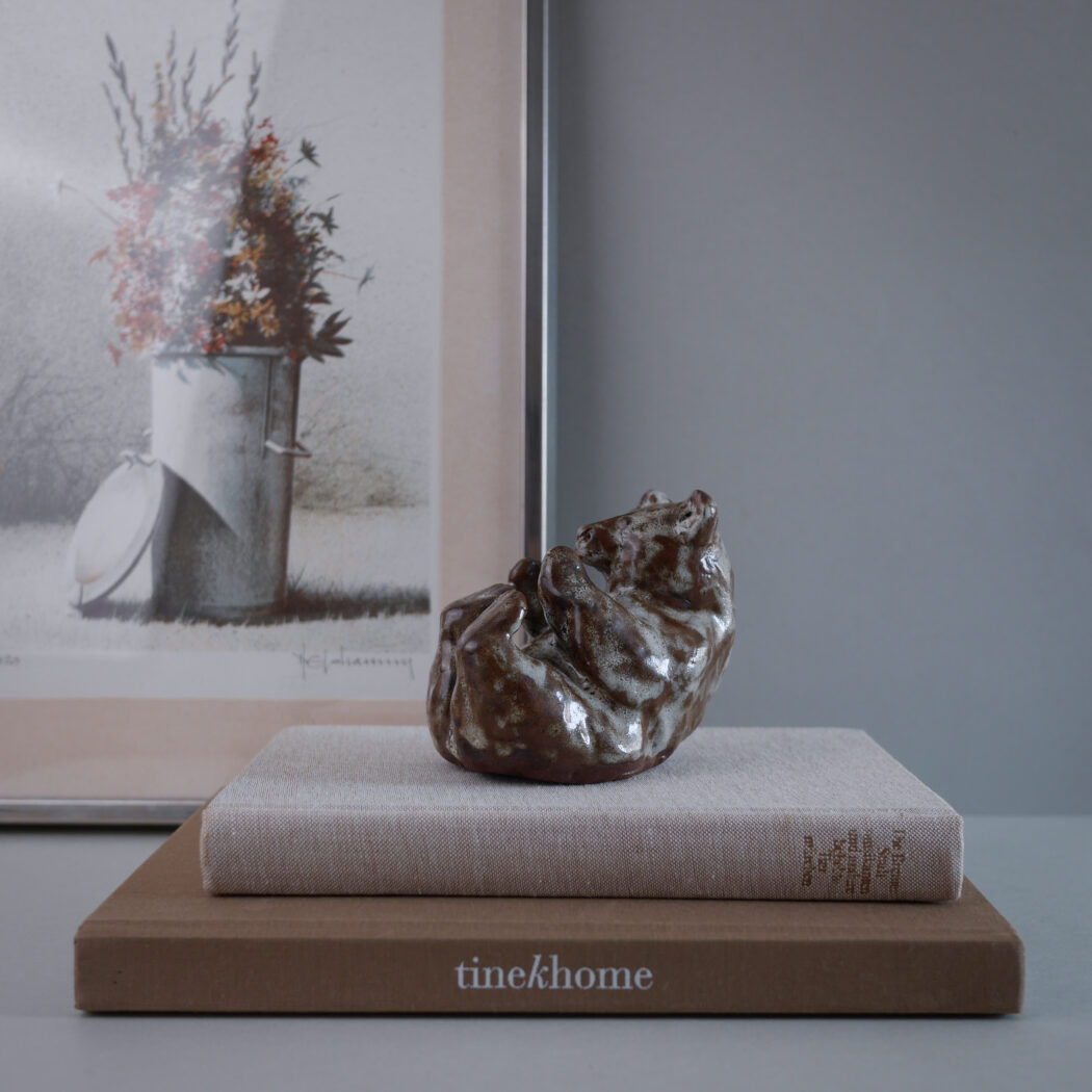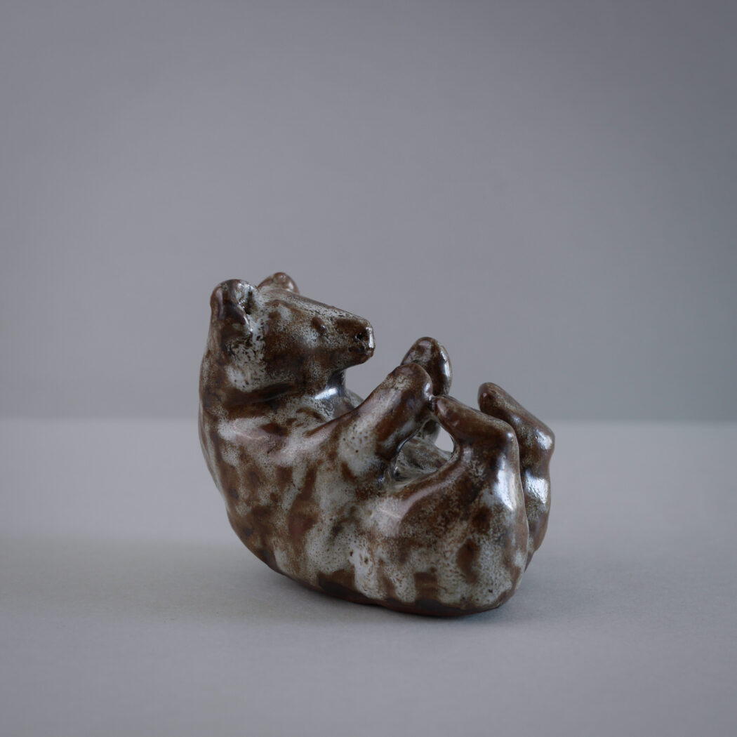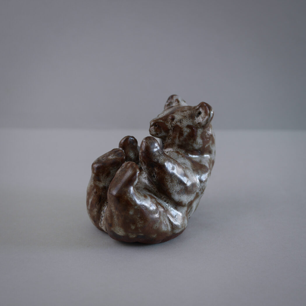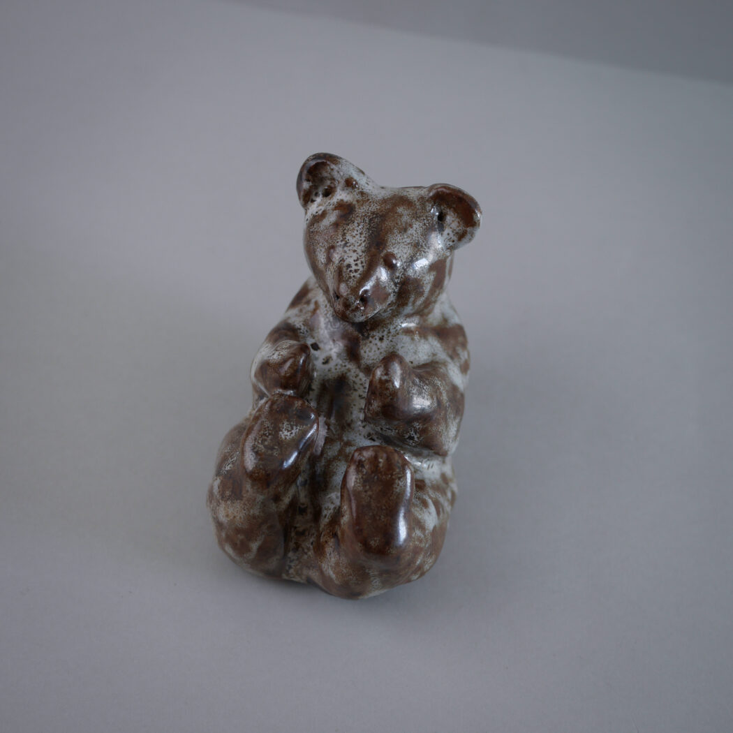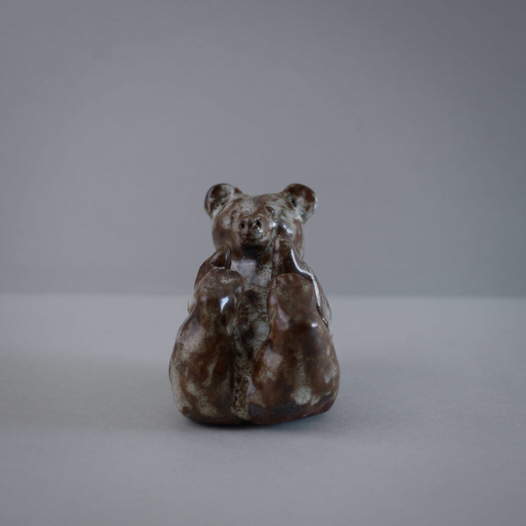 En skøn håndlavet skulptur af en bjørn i de smukkeste brune og lysegrønlige nuancer. En personlig og særlig figur skabt så fint! En figur til dit stilleben.