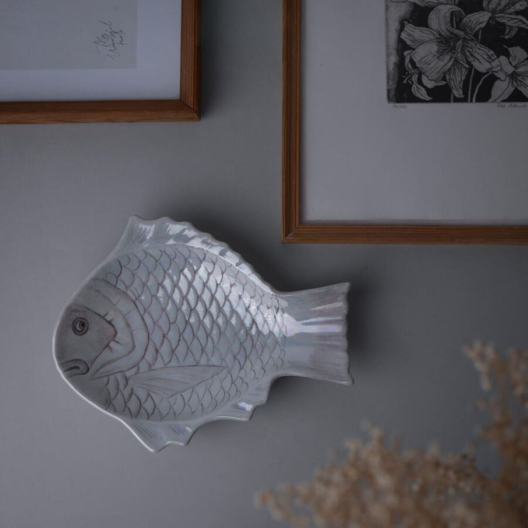 En smuk stor håndmalet pastelfisk til væggen. Lad den give væggen personlighed og charme enten alene eller som en del af en billedvæg. Fint håndmalet fund fra Sverige.