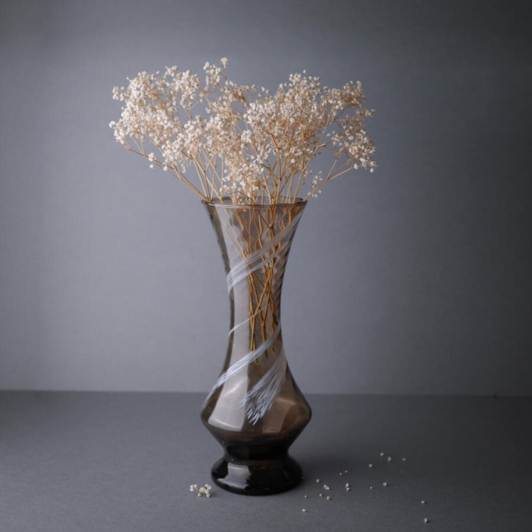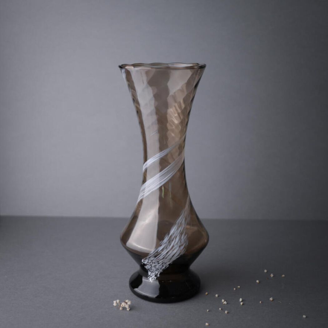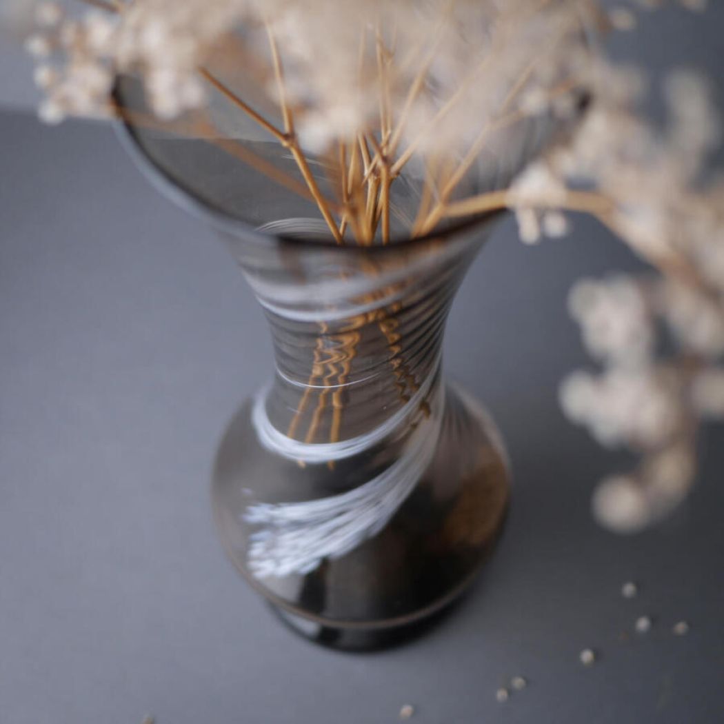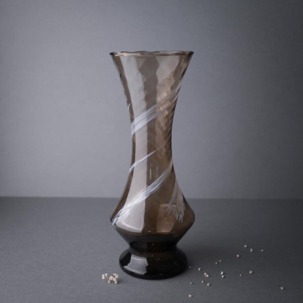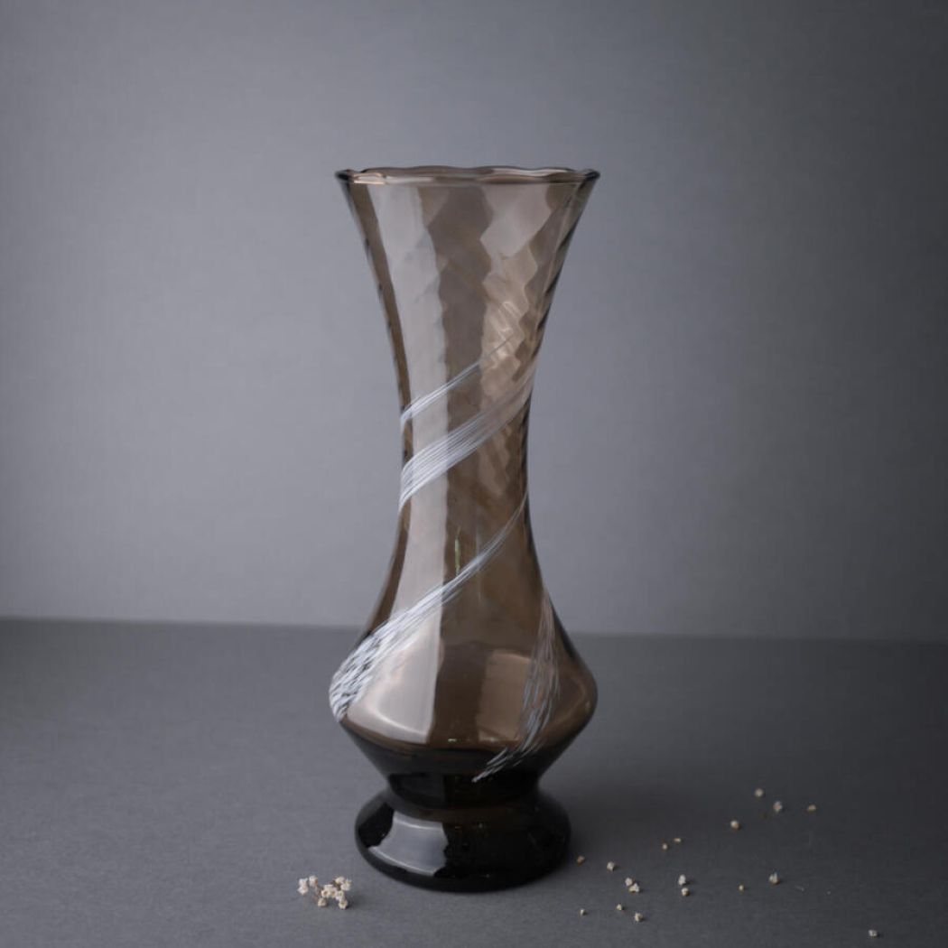 En smuk og dekorativ brun glasvase med fine organiske hvide striber 🙌🏽 En vase med karakter, blikfang og elegance. Den behøver slet ikke en blomst for at pynte i hjemmet! Smukke glasvaser giver indretningen power, og lyset spiller så smukt igennem glasvaser 💐
