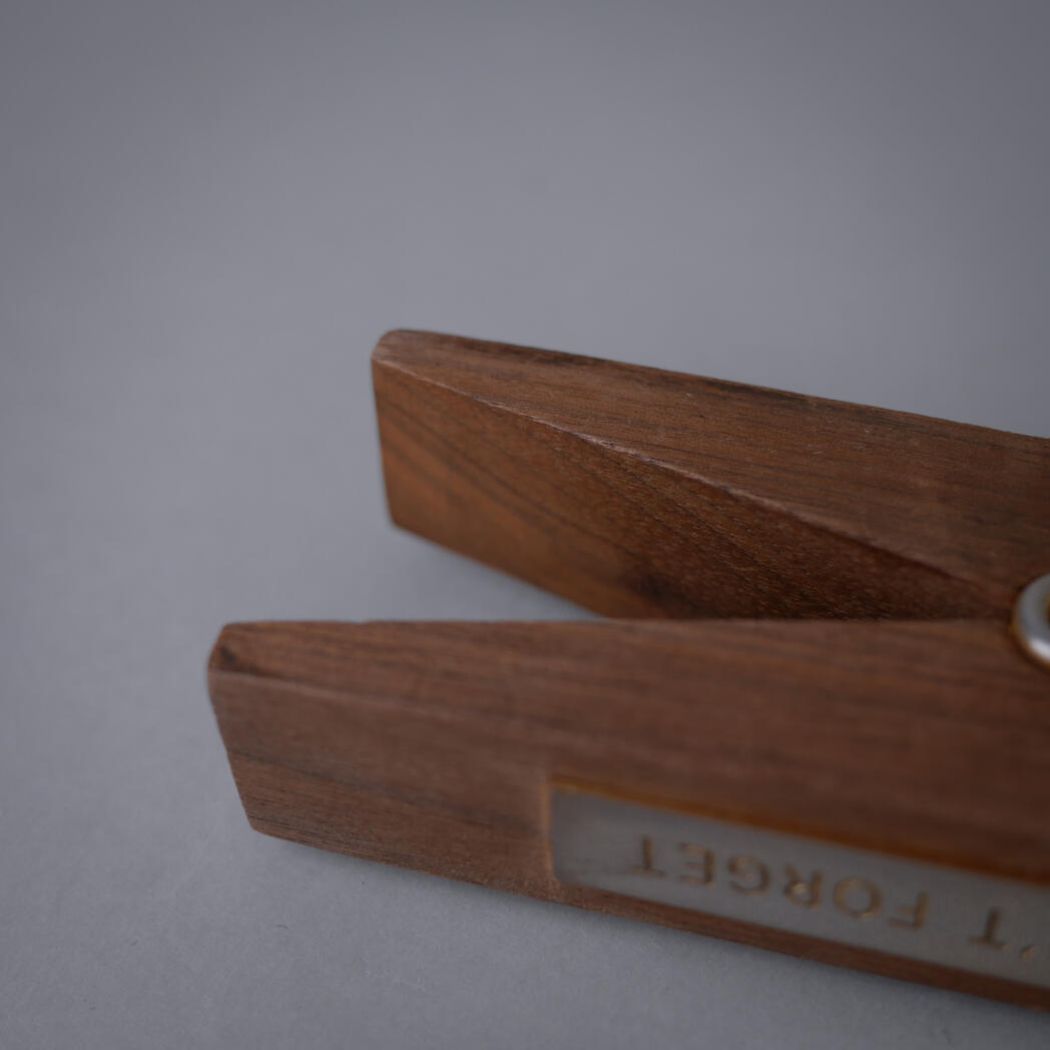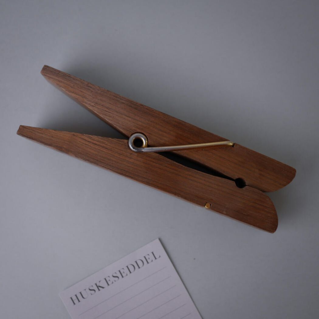 En sjov retro huskeklemme i træ med sjæl og patina. Den kan hænge på væggen, og holde styr på kvitteringer, invitationer eller lignende. Et sjovt fund fra Sverige.
