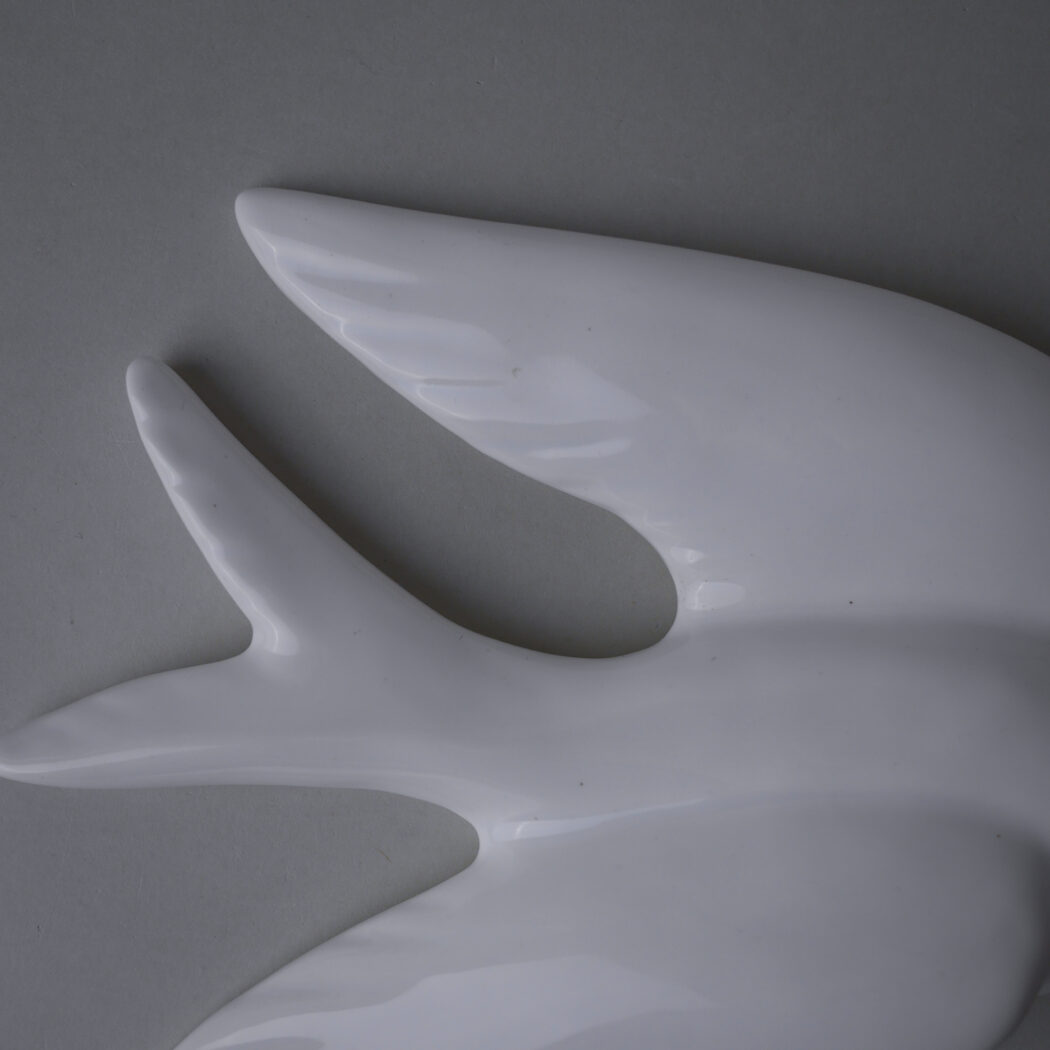 En fin hvid svale i porcelæn til væggen. Enkel og sød – perfekt til billedvæggen, som mangler et unikt og personligt præg. Fugle på væggen er bedst! Et fund fra Sverige.