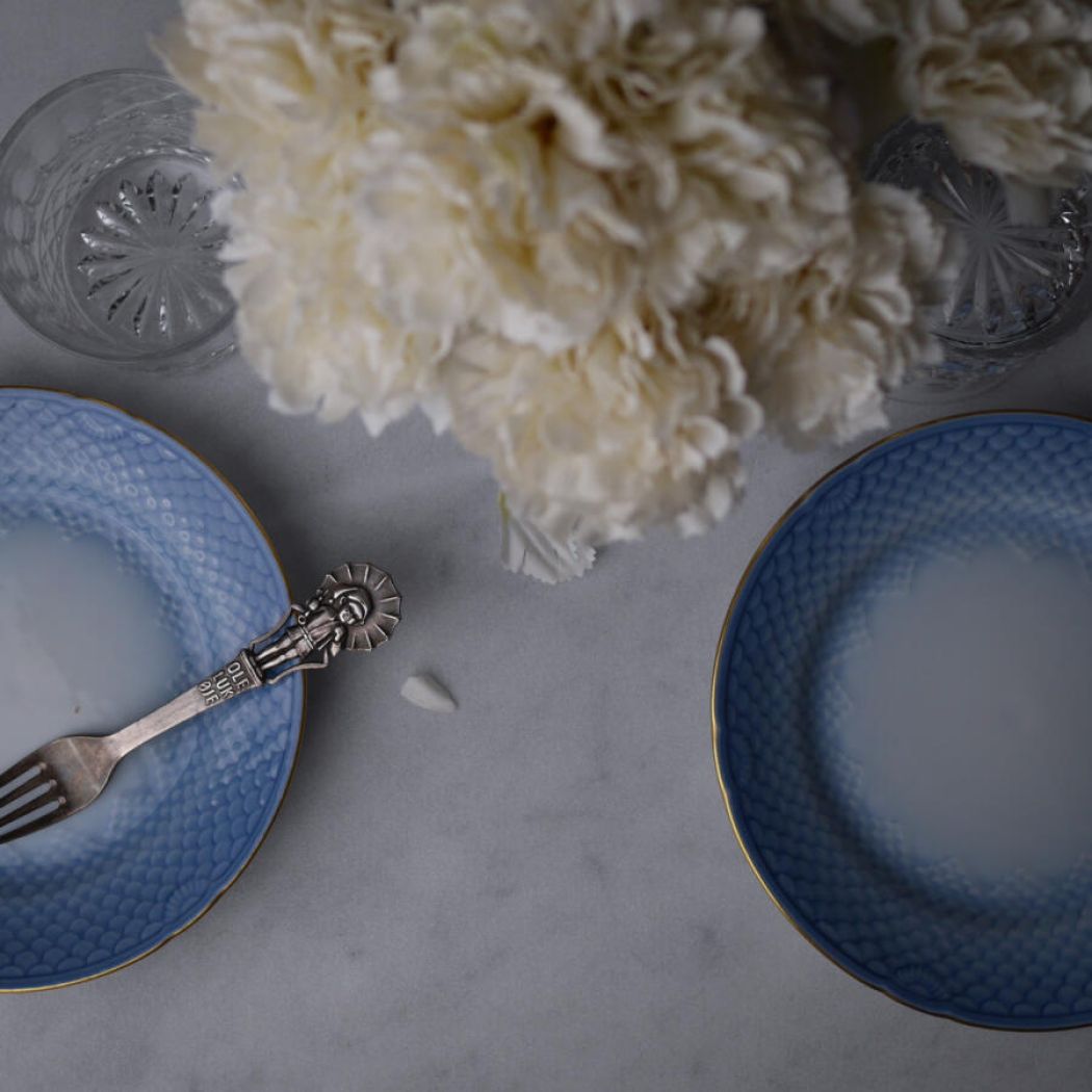 Fine små kage- eller dessert tallerkner fra Bing & Grøndahls nok smukkeste stel kaldet Blå Tone. Jeg er helt forelsket i det smukke stel, som varierer i den blå tone og har de smukkeste facetter i porcelænet. Jeg drømmer om en dag at få fingrene i både frokost og middagstallerkner, men det er et meget sjældent fund! Disse tallerkner er fundet i Sverige. 4 stk. haves, sælges samlet.