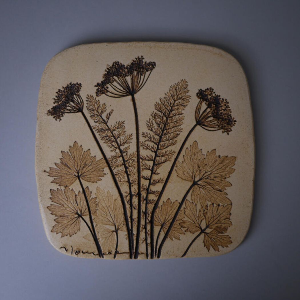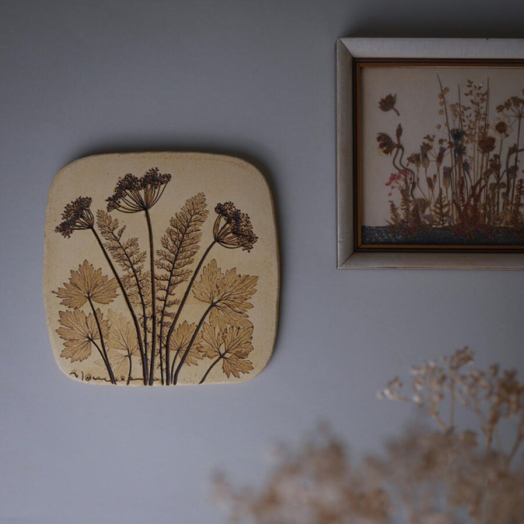 Et fint keramik Relief med blomsteraftryk – den smukkeste måde, at få lidt natur ind i indretningen. Aftryk fra ægte blomster og en sjov anderledes form. Et unika keramikfund til væggen. Et fund fra Sverige.