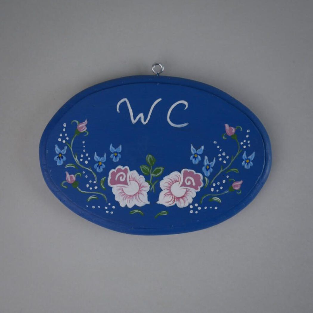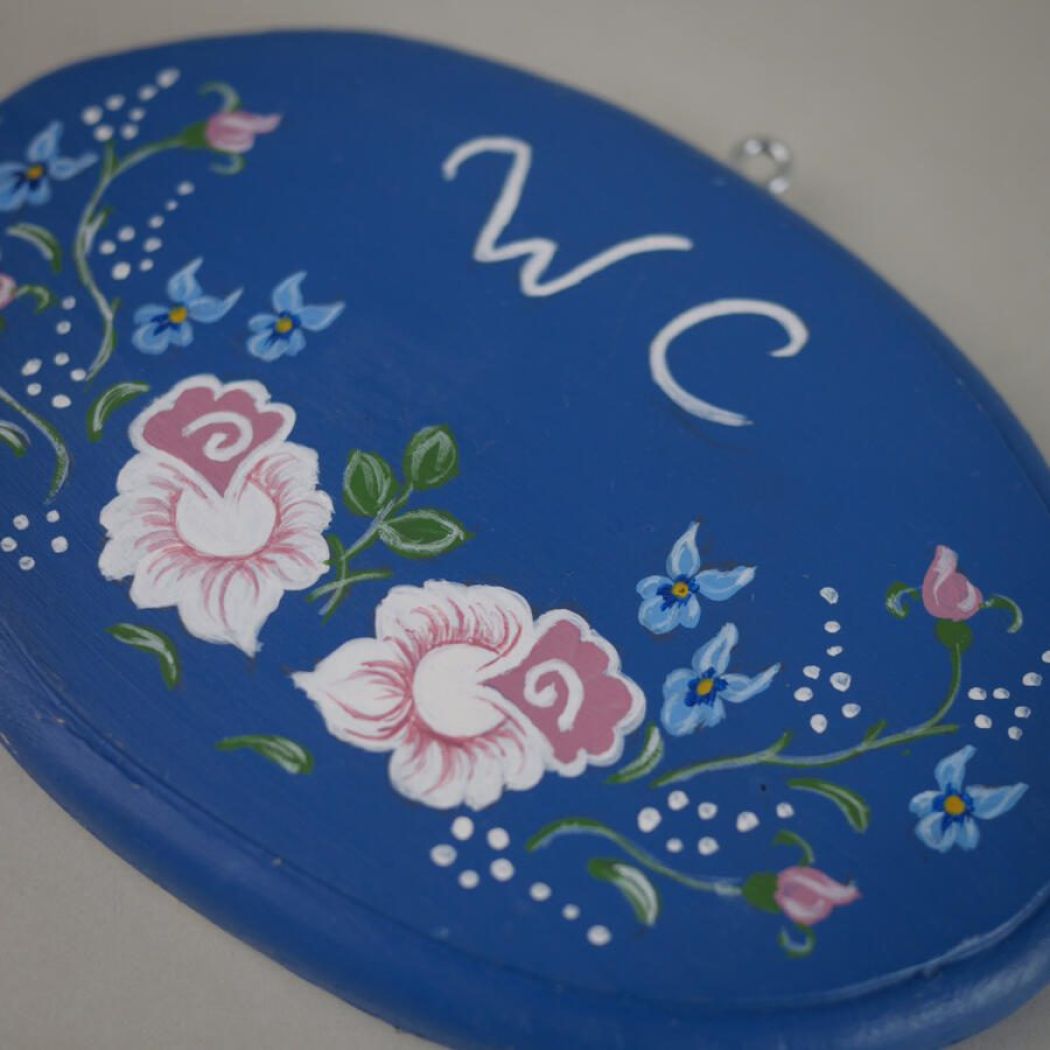 Lille Blåt Håndmalet Toiletskilt i Træ