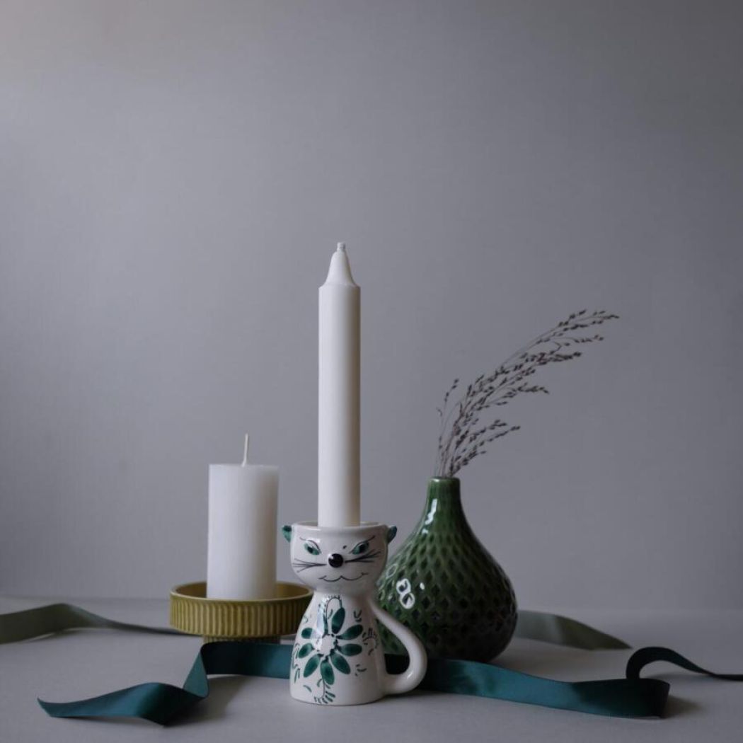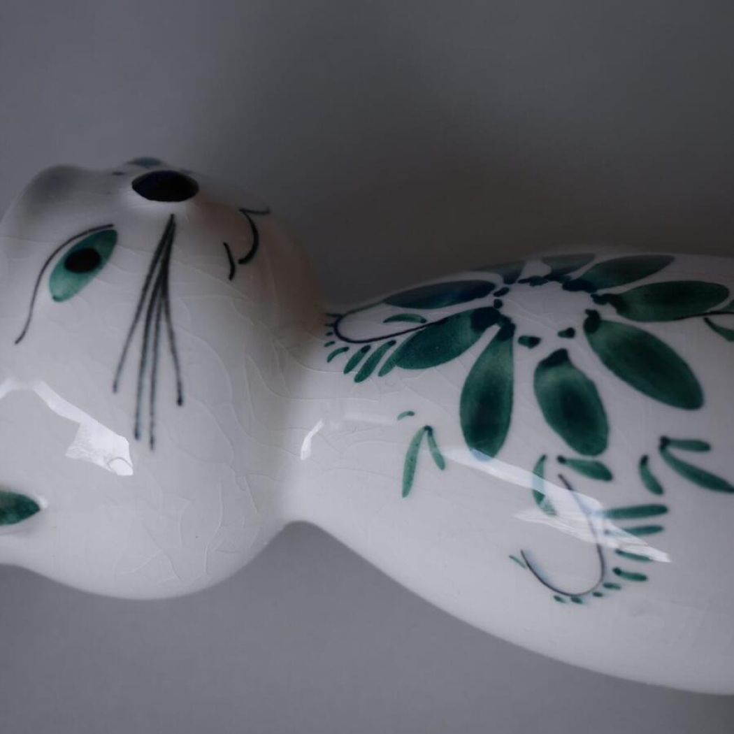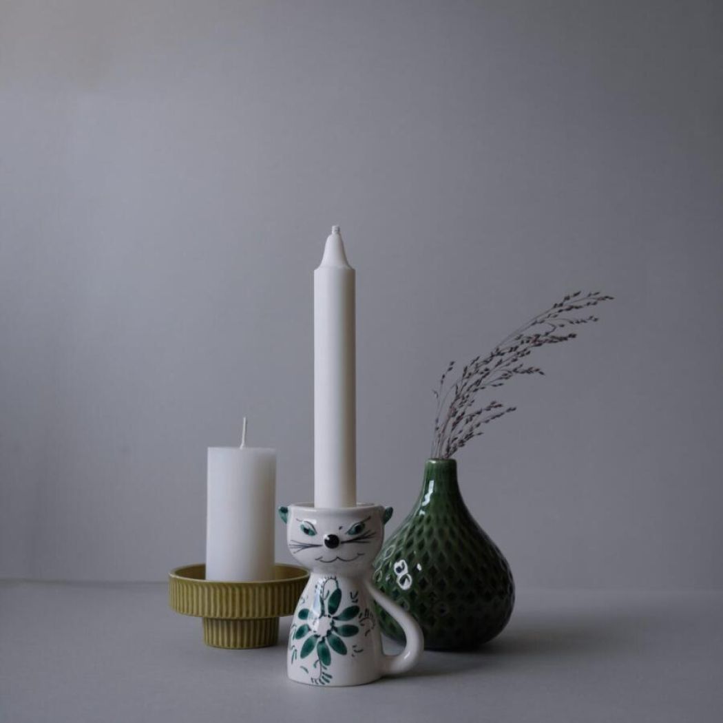 Her kommer en ældre sag – en fin lille vintage kattestage med hank og charme. Normalt falder jeg altid for de blå fund, men det er som om, at den dybe mørkegrønne farve begynder at snige sig ind på mig. Jeg tror den grønne farve bliver stor i indretningen. Kombiner med andre små grønne fund, som jeg har valgt at gøre på billederne. De kan også findes her på webshoppen.