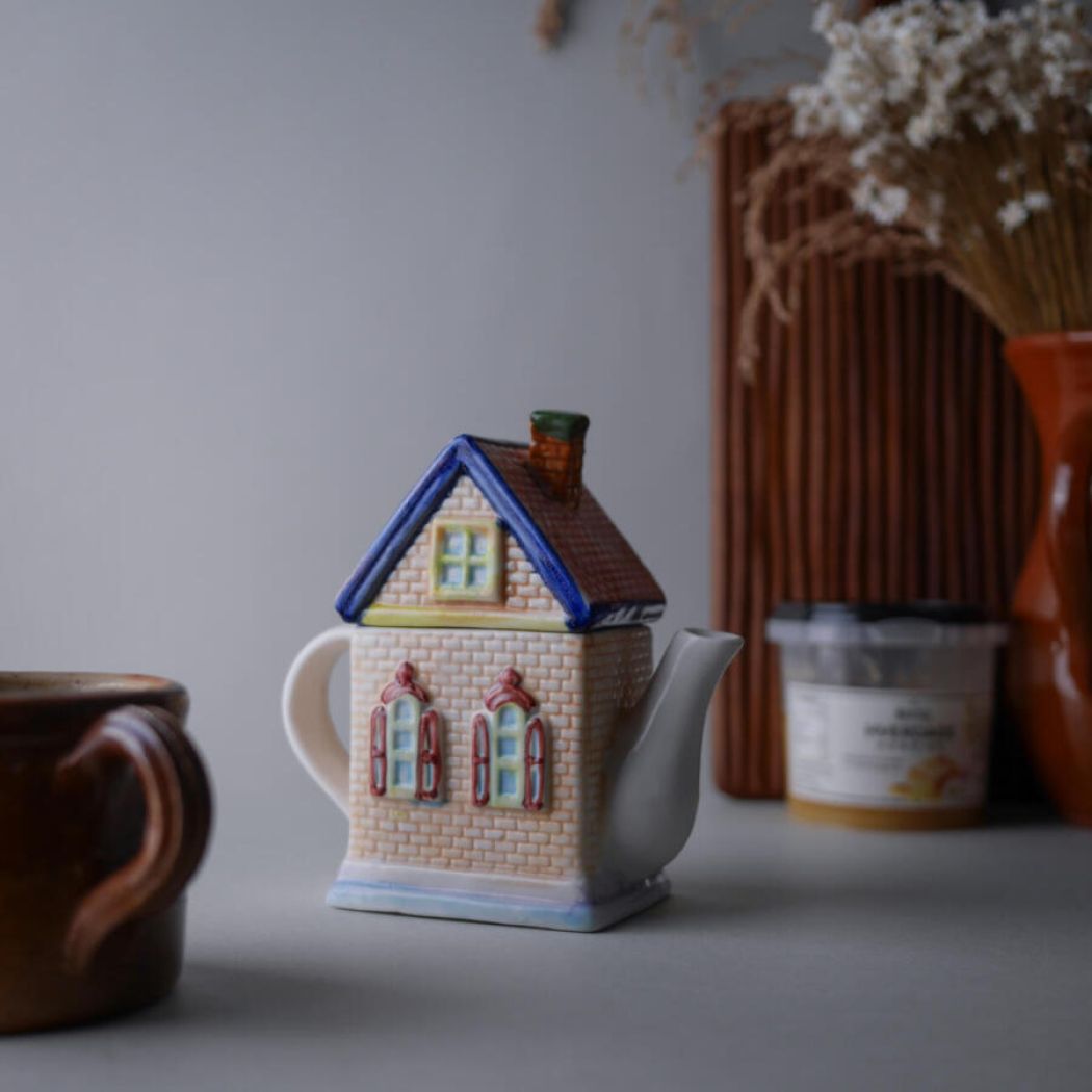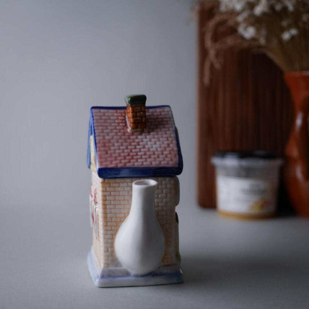 Et charmerende lille porcelæns tehus/tekande fra Italien i fine pastelfarver. Små vintage te-huse er så unikke, og de er svære at finde i flot stand. Dette er en lille version, men i helt perfekt stand.