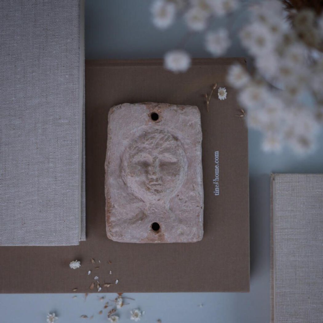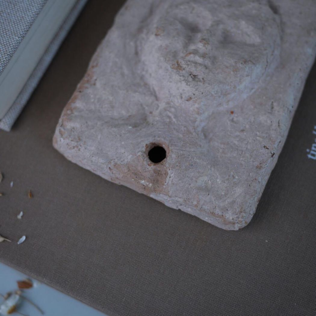 Et skønt lille rustikt keramikrelief med ansigt. Et unika fund til væggen. Håndlavet, sjovt og særligt. Relieffet er fundet i Sverige.