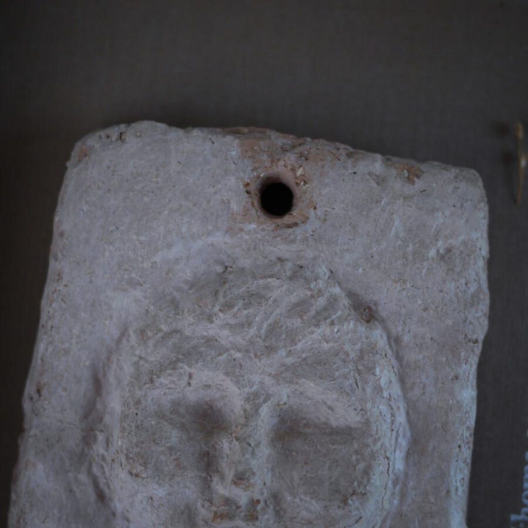 Lille Rustikt Keramikrelief med Ansigt