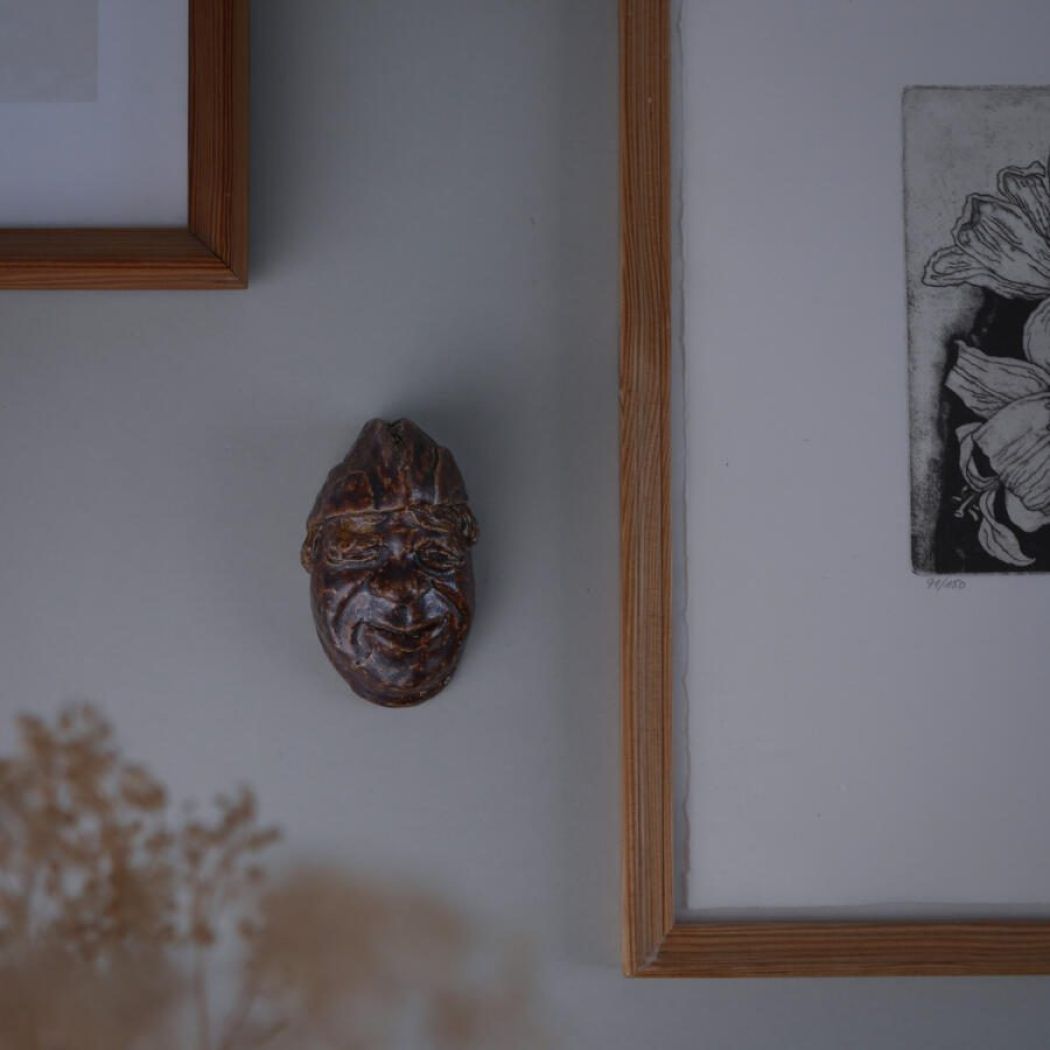 Lille brun unika mand i keramik til at hænge på væggen. Håndlavet og super charmerende. Giv væggen personlighed med denne skønne vægdekoration. Han er fundet i Sverige.