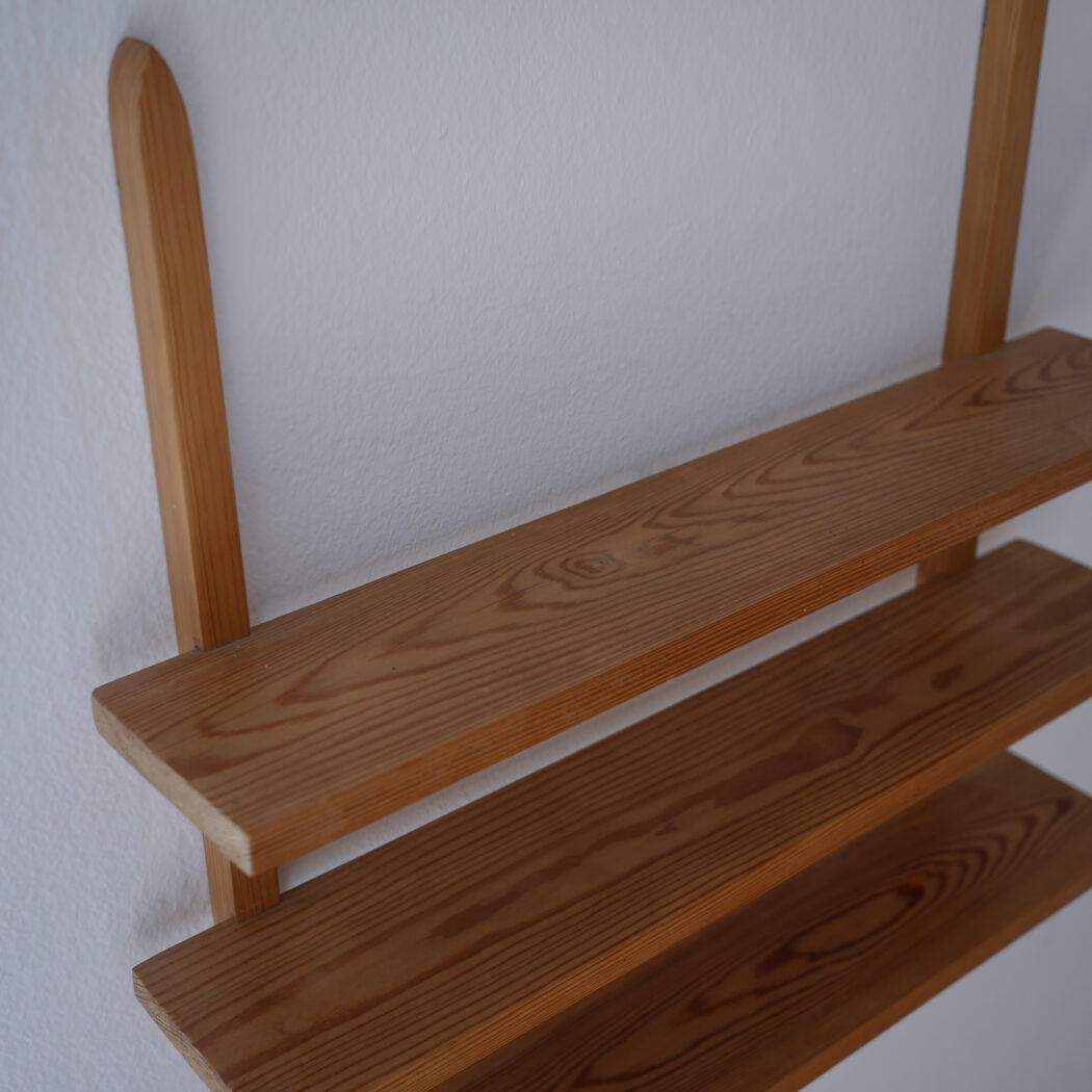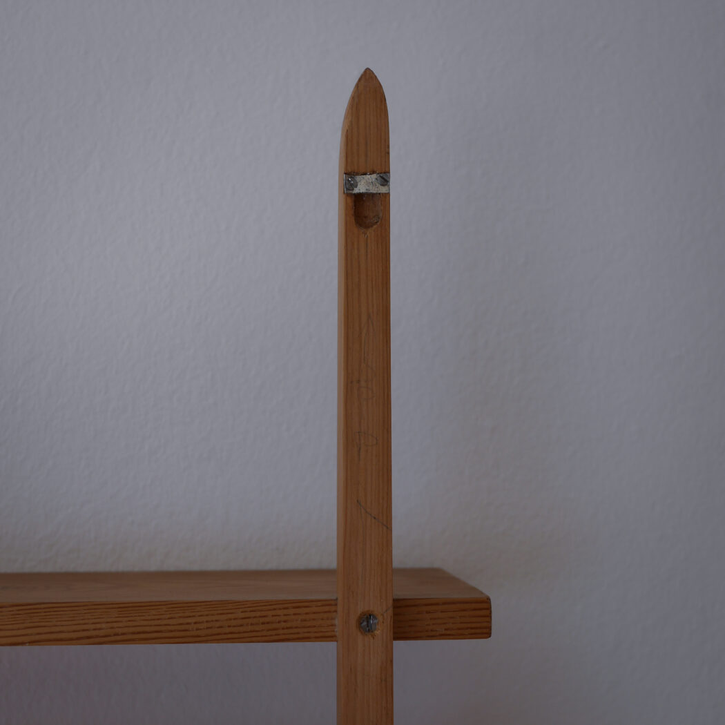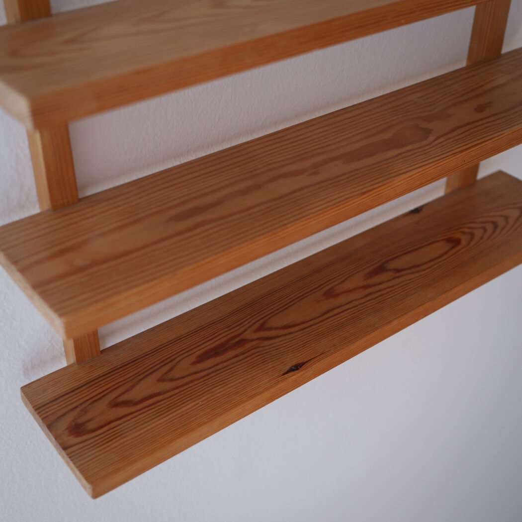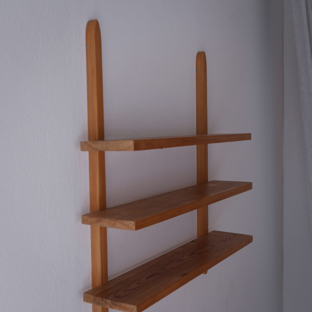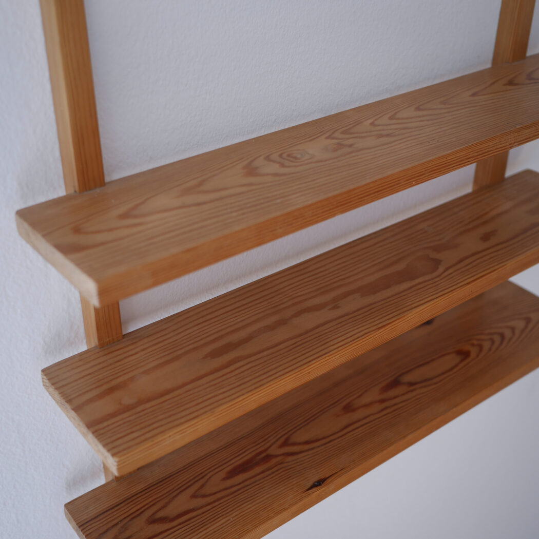 En utrolig flot og enkel vægreol med tre hylder – så smuk på væggen især fordi de lodrette trælister går længere op foroven, det giver et elegant udtryk. Perfekt til krus og kopper eller anden let opbevaring. Et fund fra Sverige.