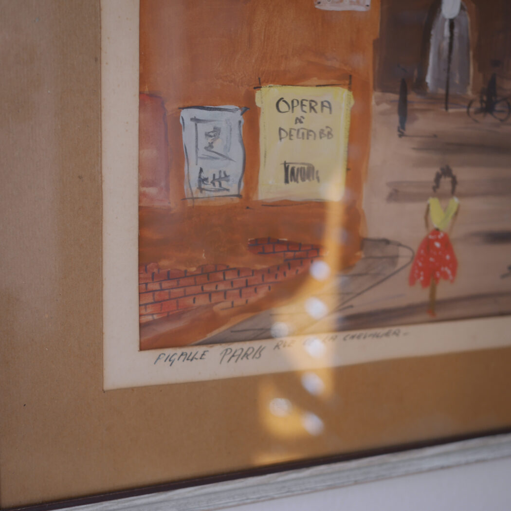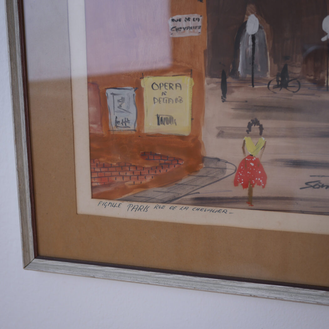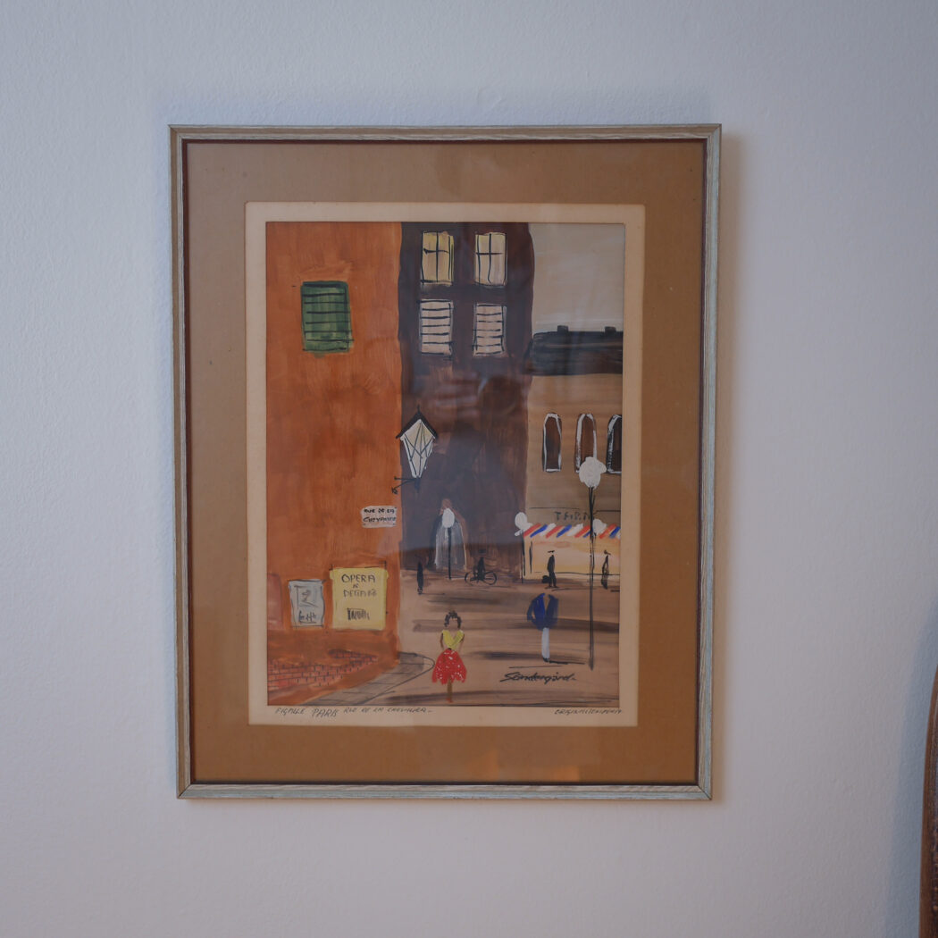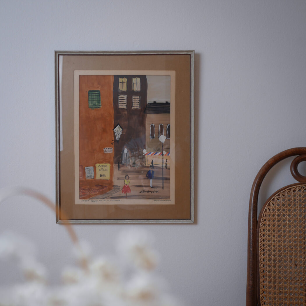 Et skønt ældre maleri af Paris i de smukkeste brændte farver. Jeg er vild med at personerne på maleriet ikke har ansigter, og bare hele måden, det er udført på, det har så meget charme og sjæl! Maleriet er fundet i Sverige.