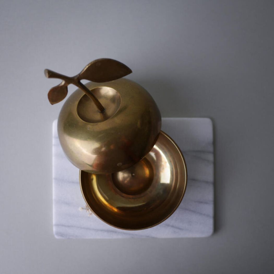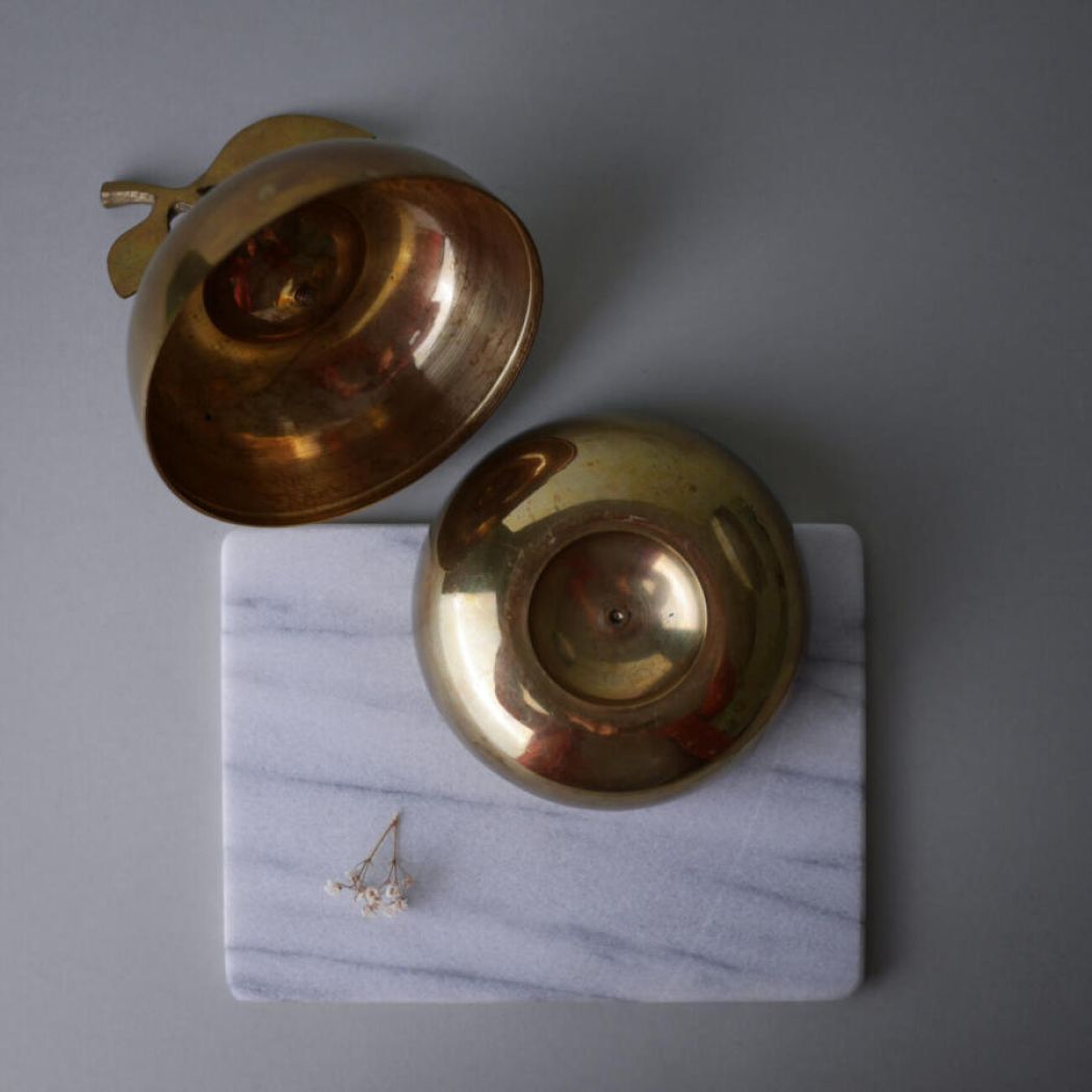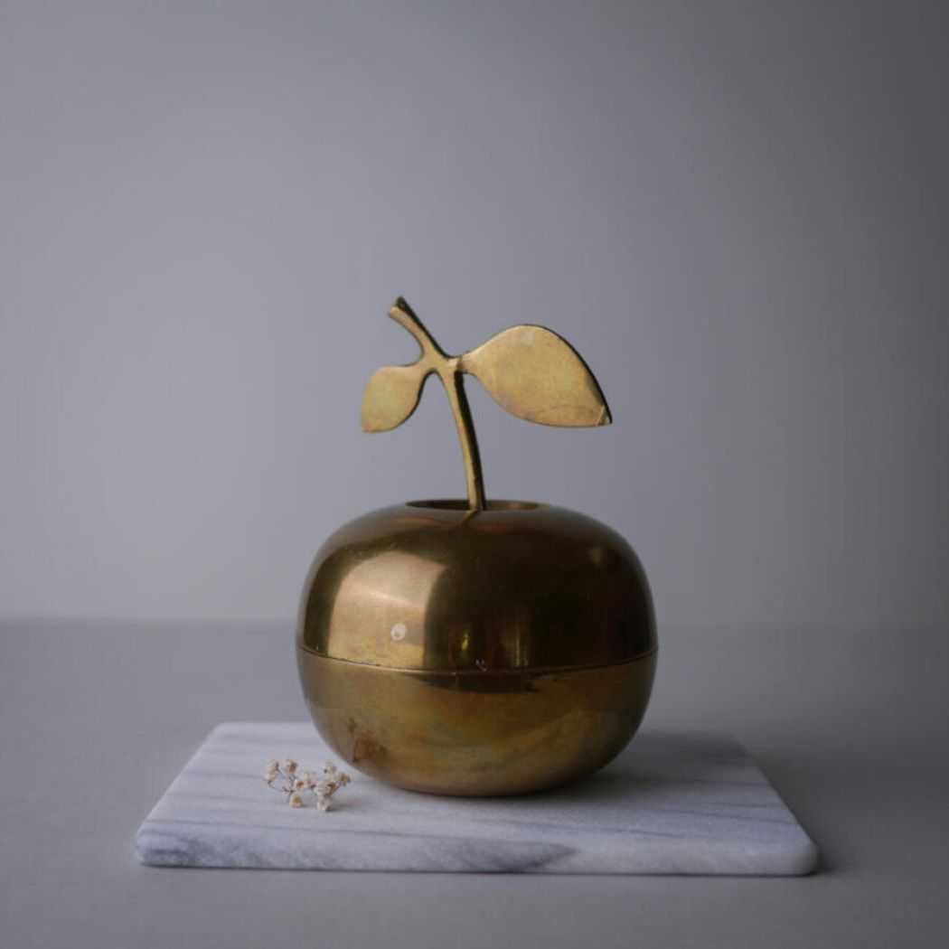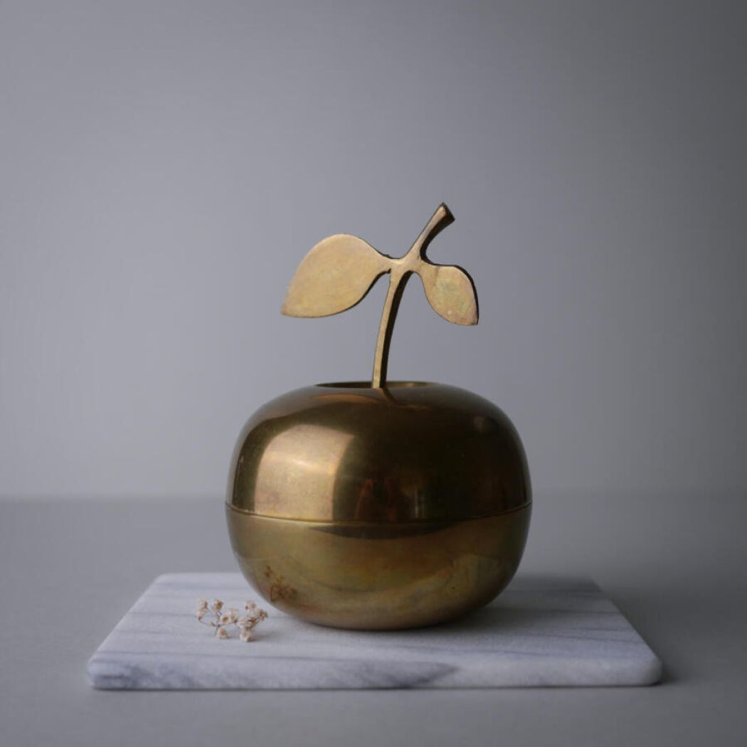 En skøn lille æble lågkrukke i messing 🍎 Lågkrukker er den fineste form for opbevaring, fordi de pynter samtidig med, at de passer på dine vigtigste ejendele. Denne messing krukke vil være flot som en del af et stilleben 🍎 Fundet i Sverige.