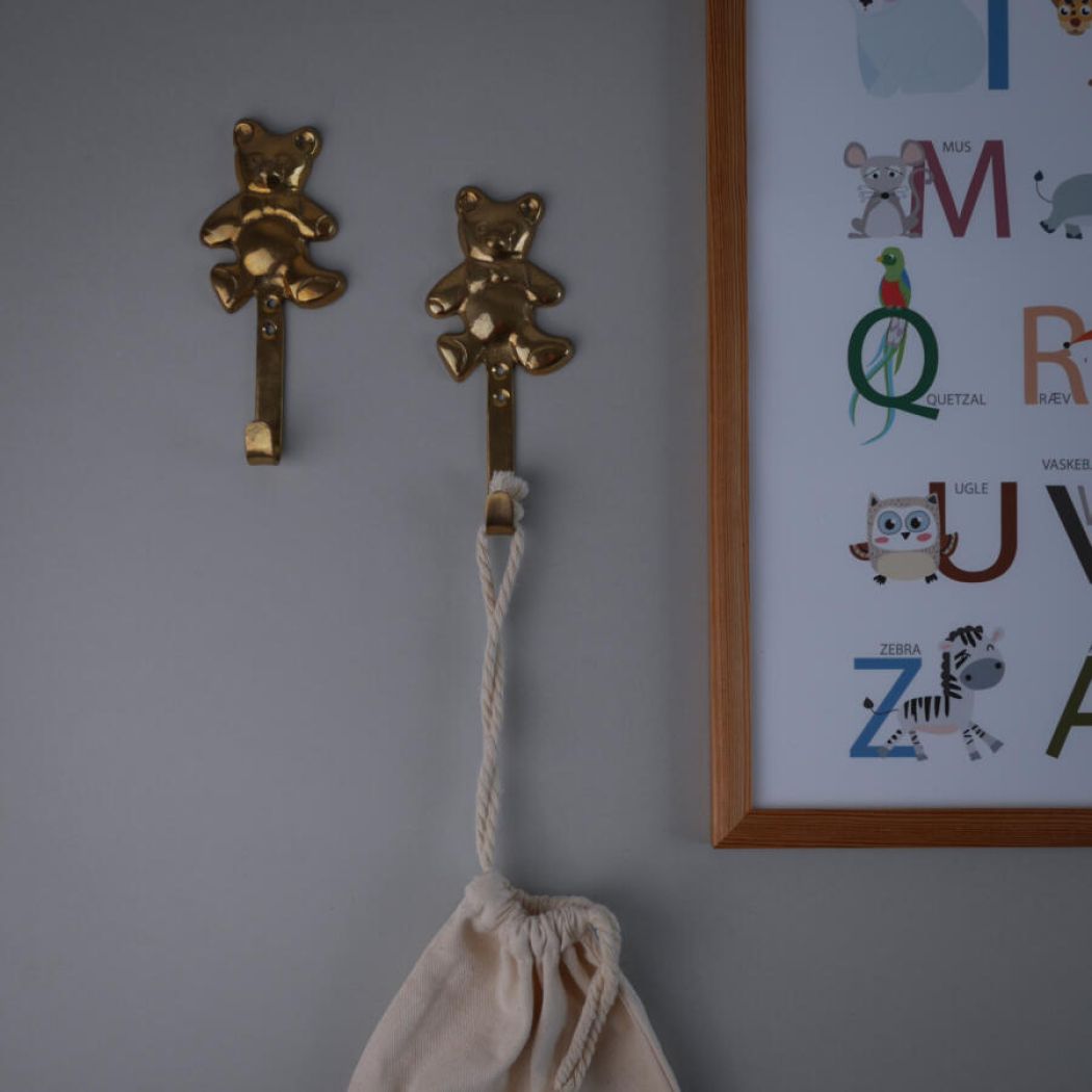 Eventyrlige messing bamseknager til børneværelset, som er sjovt for børnene og pæne at se på for de voksne. 2 stk. fundet, sælges samlet.