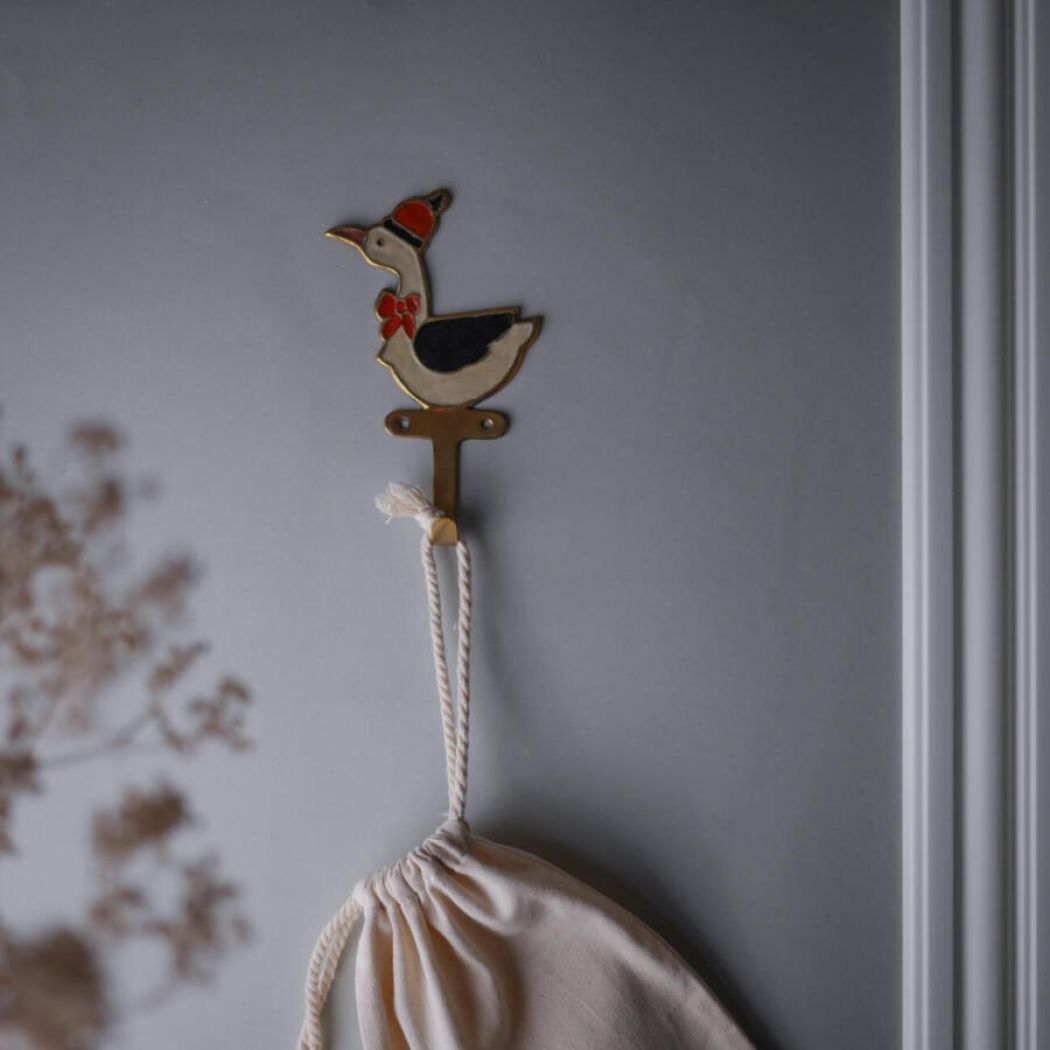 En fin og dekorativ lille messing knage med gås – perfekt til børneværelset, som savner nogle sjove og eventyrlige små elementer. Det er de små detaljer, som skaber et fint helhedsindtryk. En skøn lille vintage knage fra Sverige.