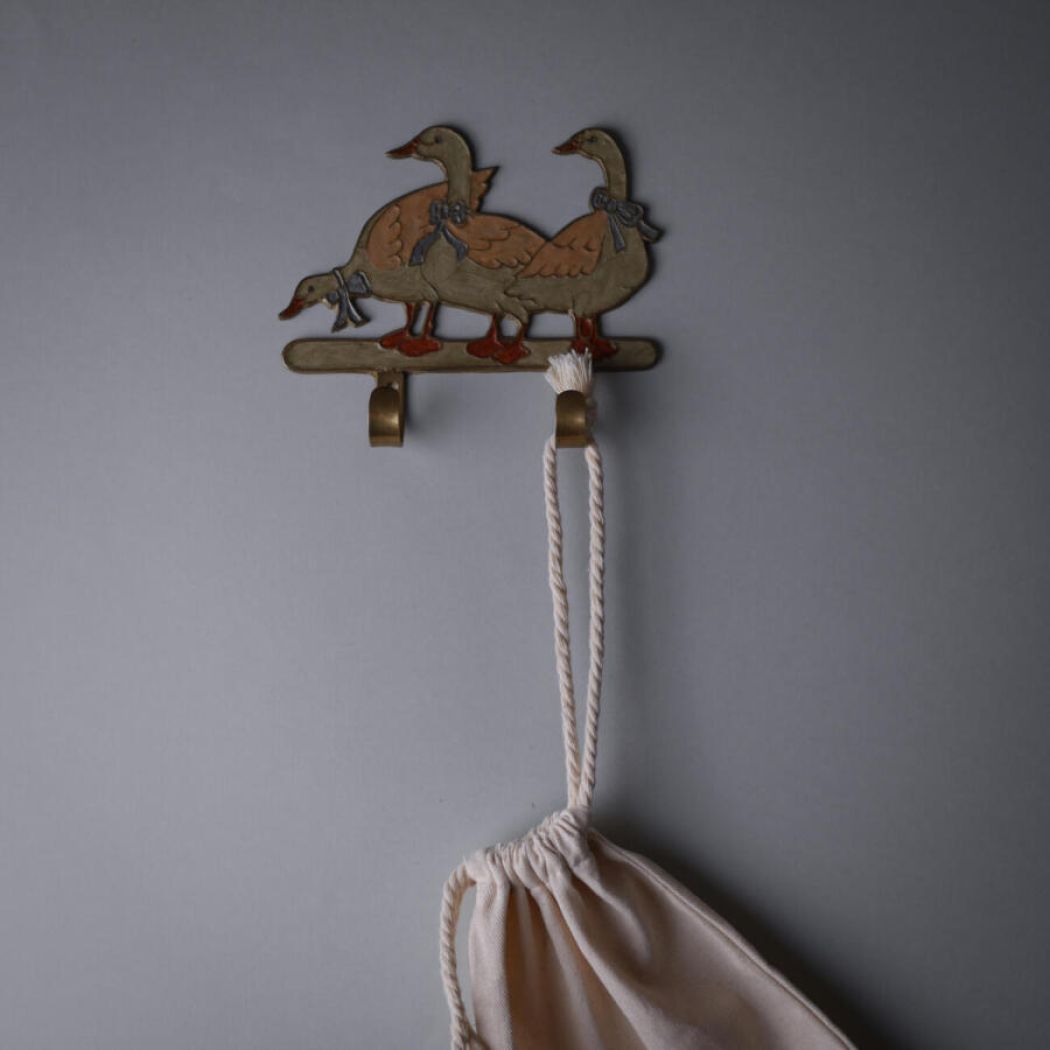 En skøn lille messing knage med plads til to ophæng med tre fine gæs ovenpå. Jeg ville elske, at dekorere et børneværelse med små unikke vintagefund, som kan skabe et eventyrligt univers.