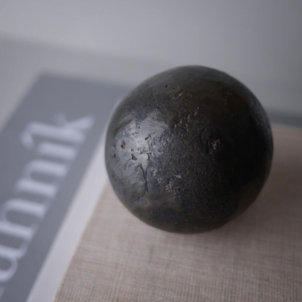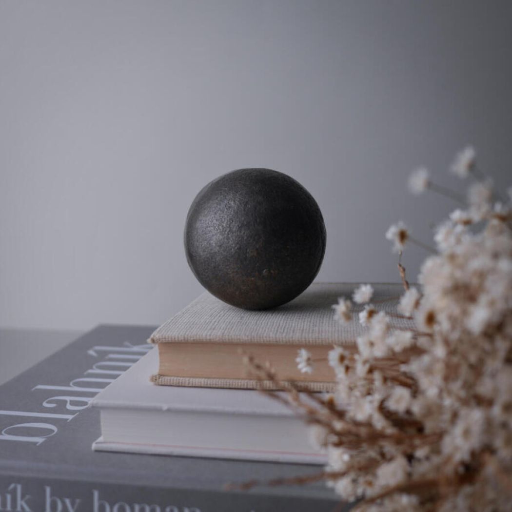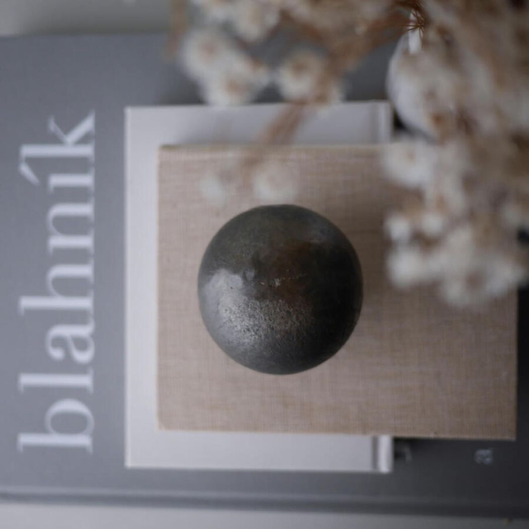 En super cool (- og meget tung) mørk metalkugle i råt look til dekoration, som en del af et stilleben. Den kan styles på en coffeetable book, hvor den vil være et cool og unikt element i indretningen.