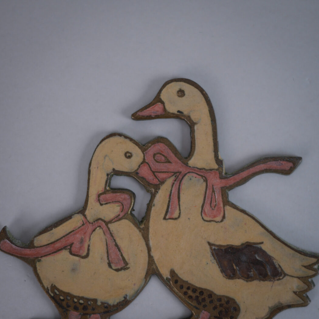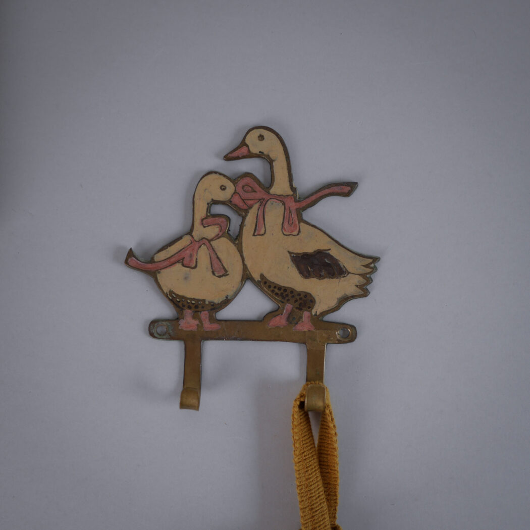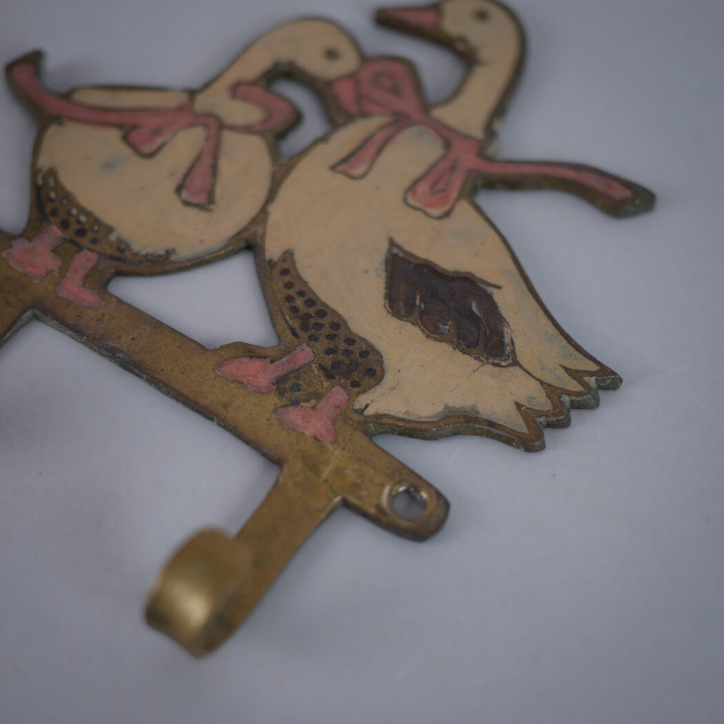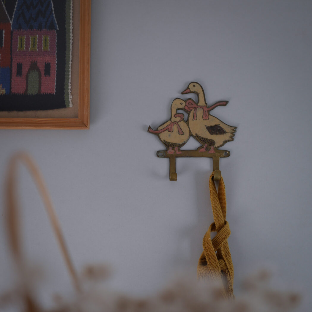 En sød og charmerende lille metaleknage med gæs i messing-look. Disse fine knager er så hyggelige, og kan bruges over alt i hjemmet til let ophæng. Denne fine knage er fundet i Sverige.