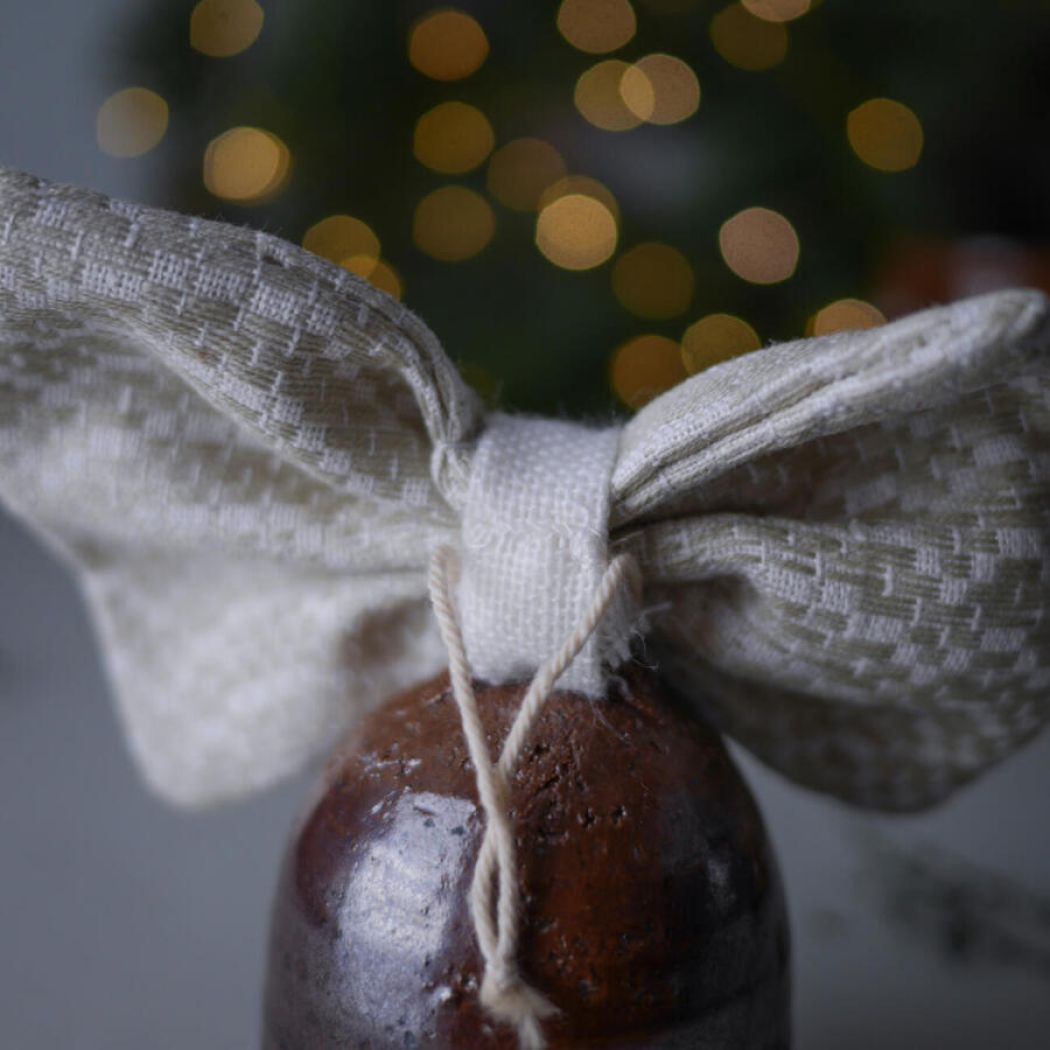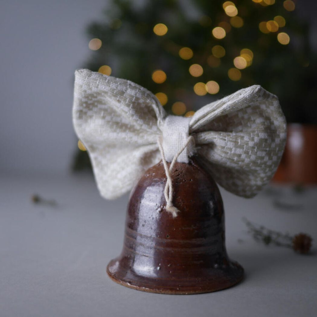 Mørkebrun Juleklokke i Keramik med Sløjfe