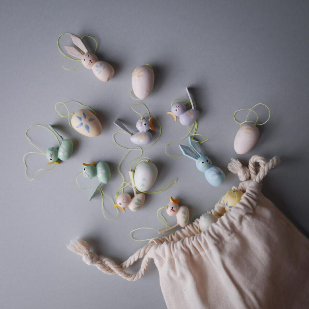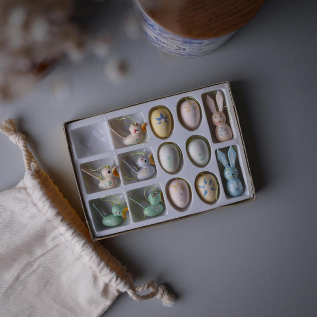 Pastelfarvet Påskepynt, 14 dele