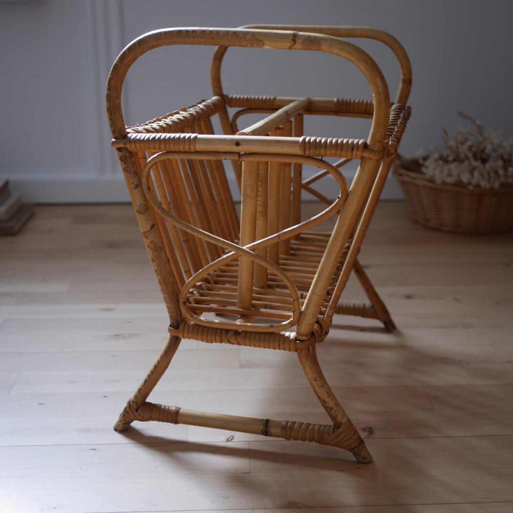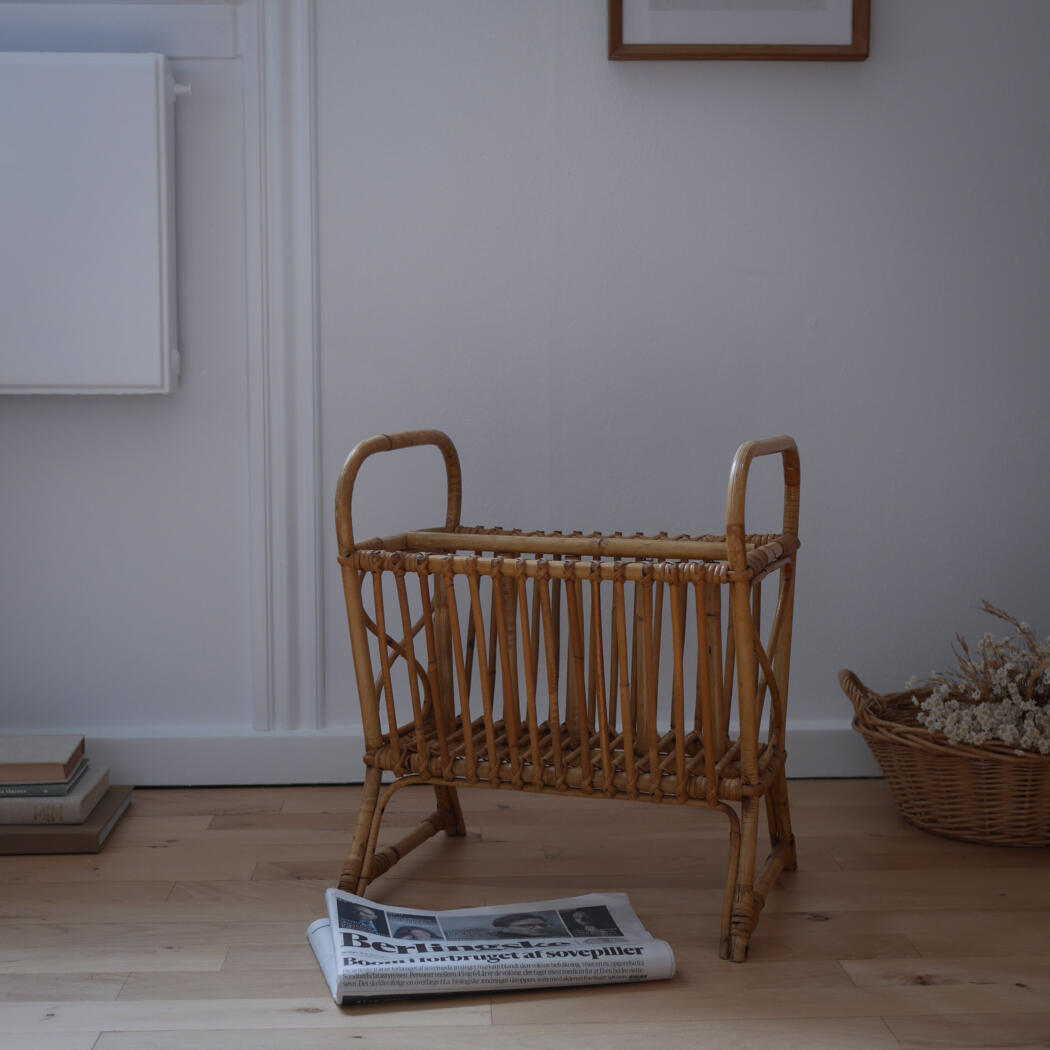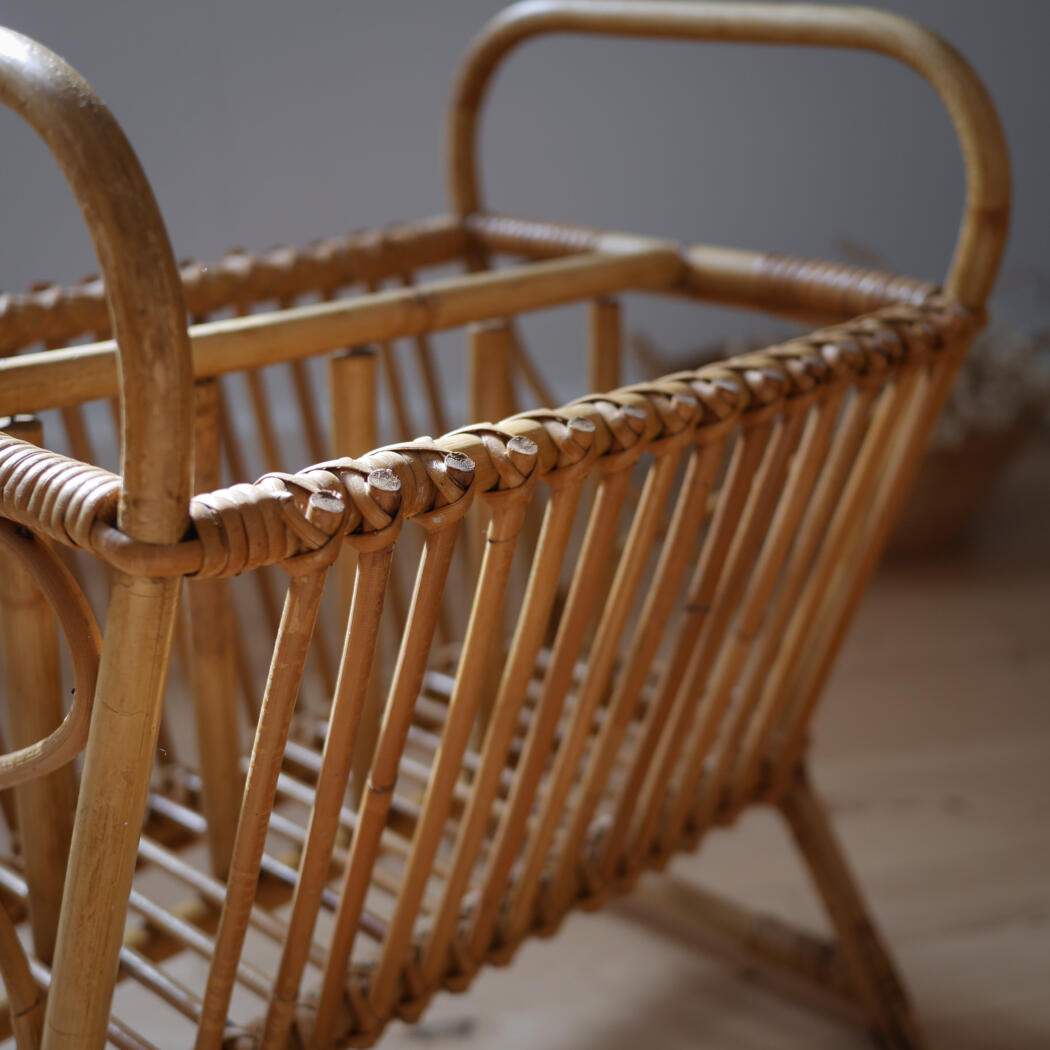 En skøn retro bambus avisholder til gulv, som kan bruges til opbevaring af aviser, magasiner eller bøger. Skøn retrostil – perfekt til sommerhuset.