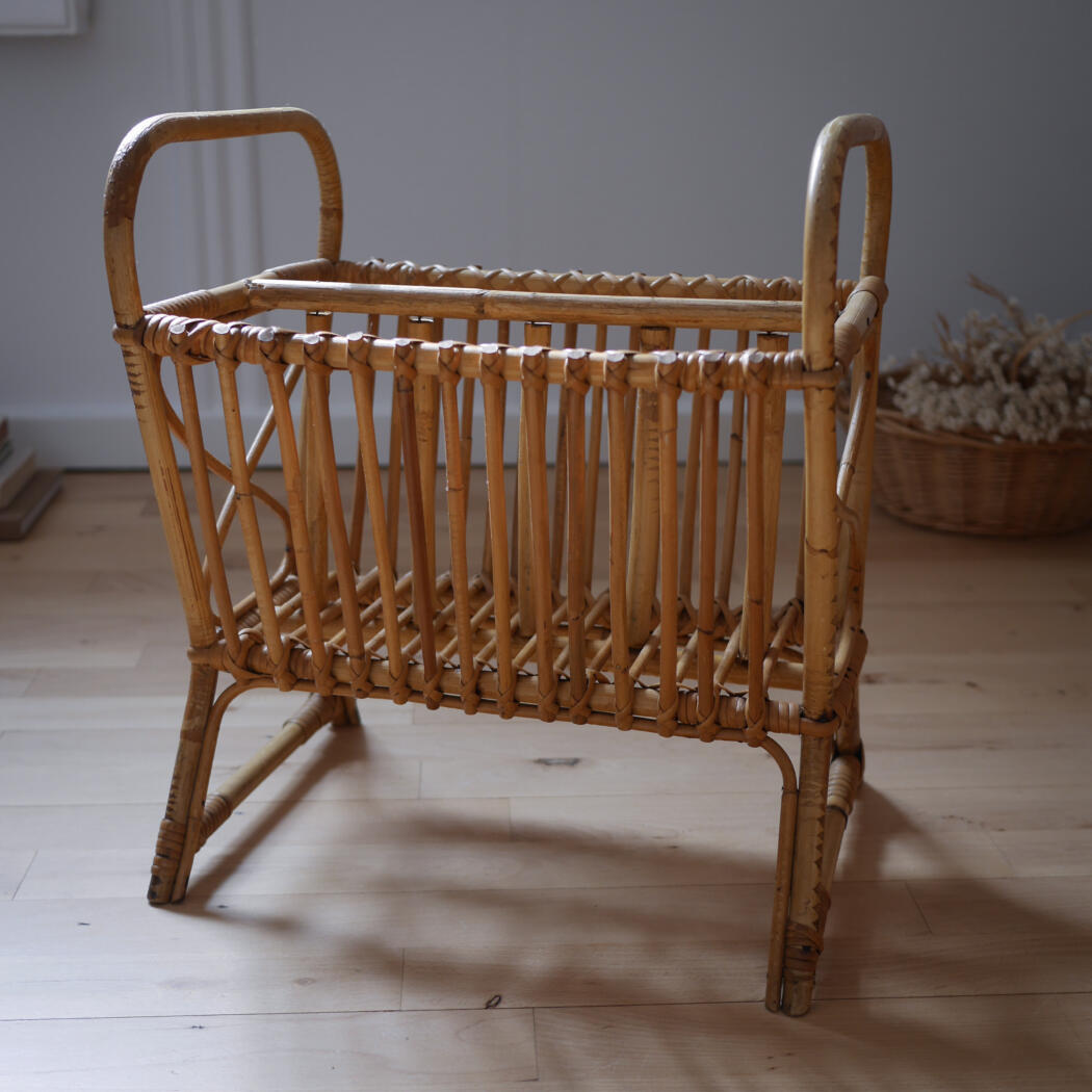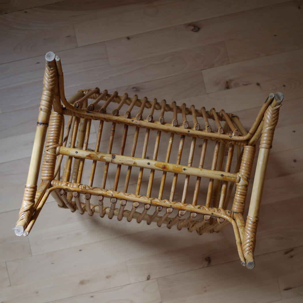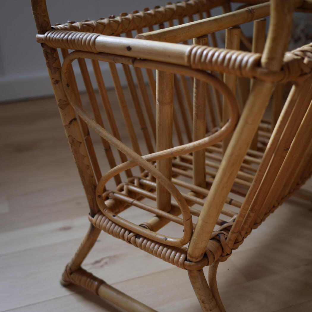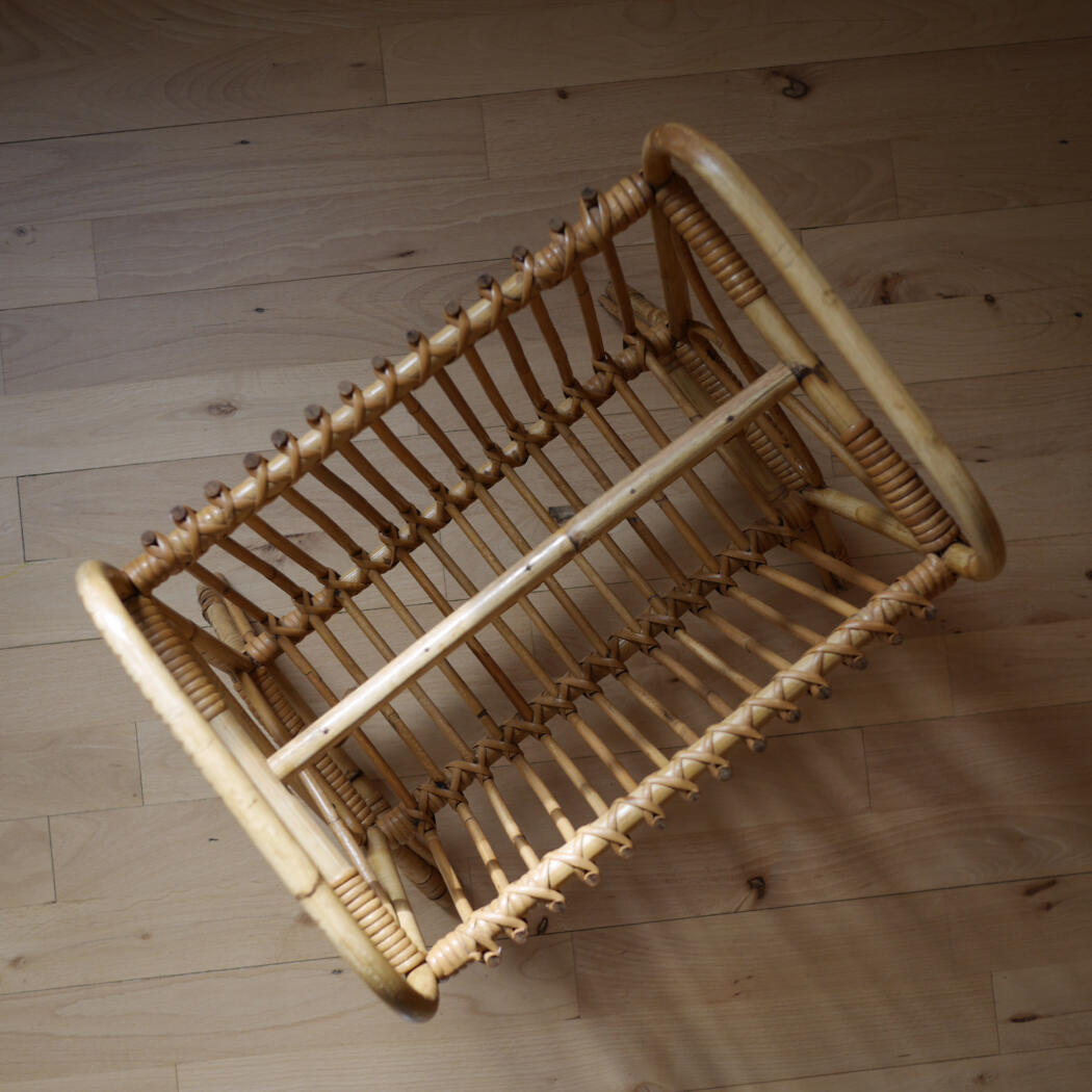 En skøn retro bambus avisholder til gulv, som kan bruges til opbevaring af aviser, magasiner eller bøger. Skøn retrostil – perfekt til sommerhuset.