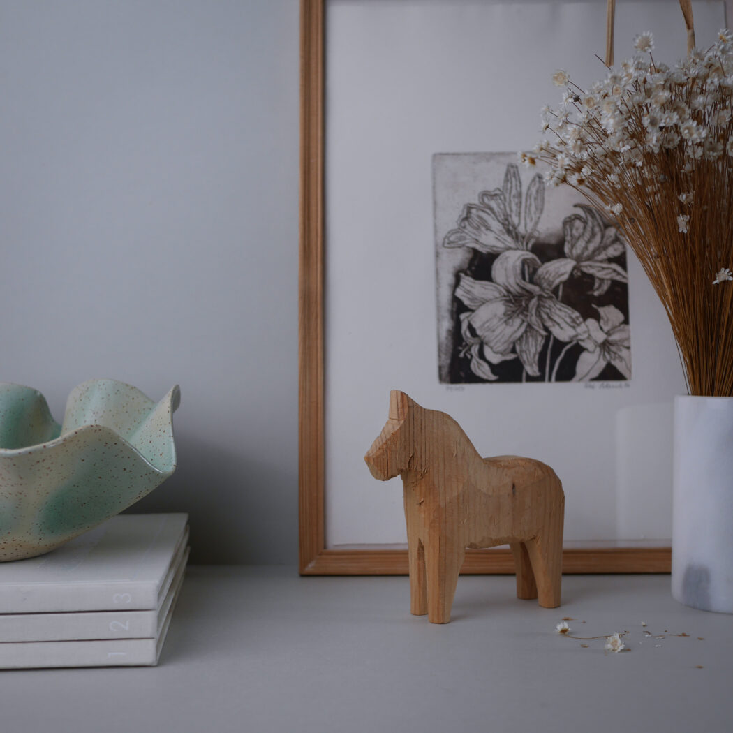 En skøn rustik lys træhest til dit stilleben. Jeg er vild med dens rå udtryk, og træ pynter så smukt i indretningen. Et lille stykke håndværk fra Sverige.
