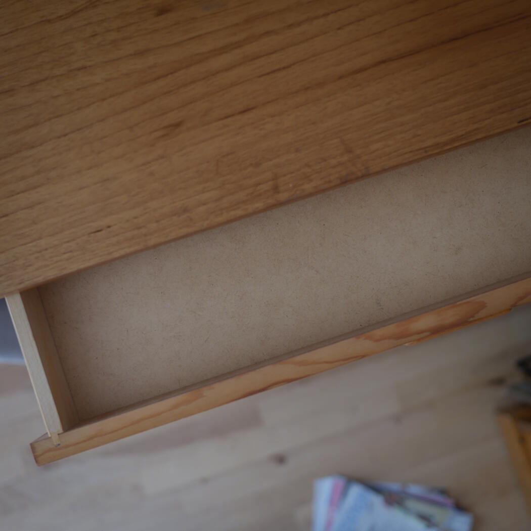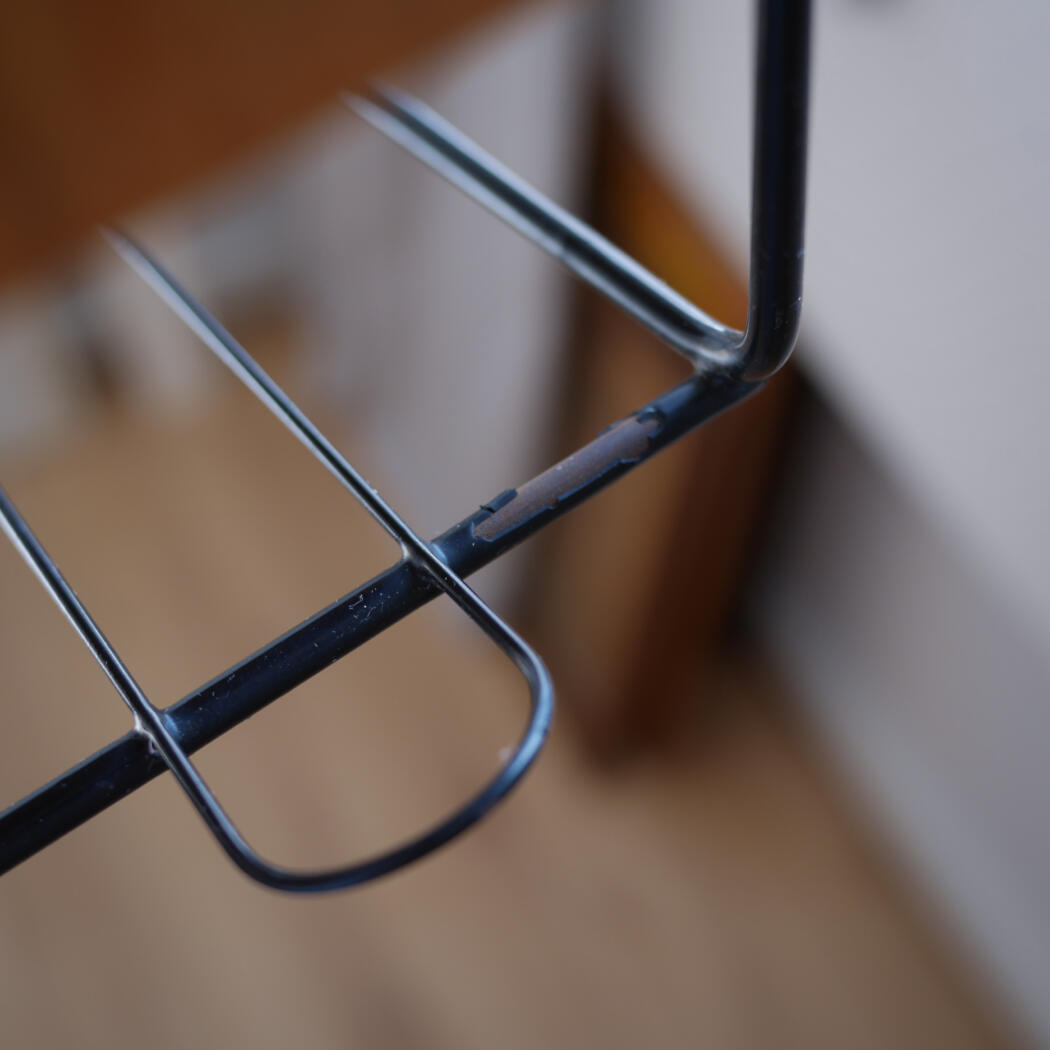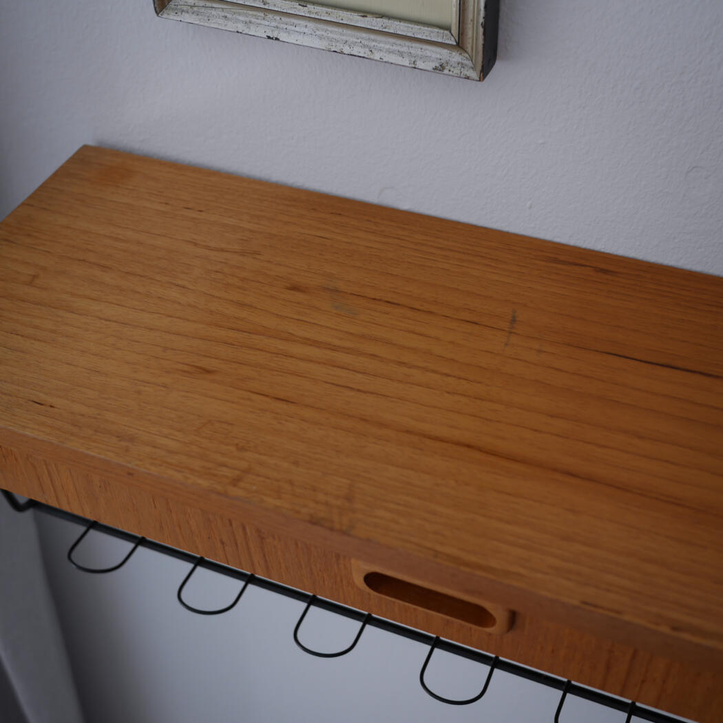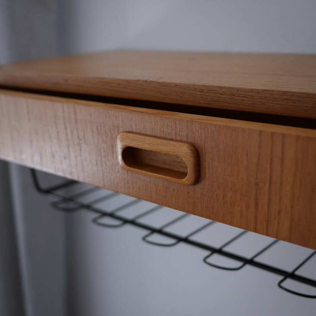 Et flot og elegant skuffemøbel til væggen. En enkelt skuffe samt ekstra opbevaring på den sort metal hylde nedenunder. Let patina og slid på metalhylden. Et flot fund fra Sverige.