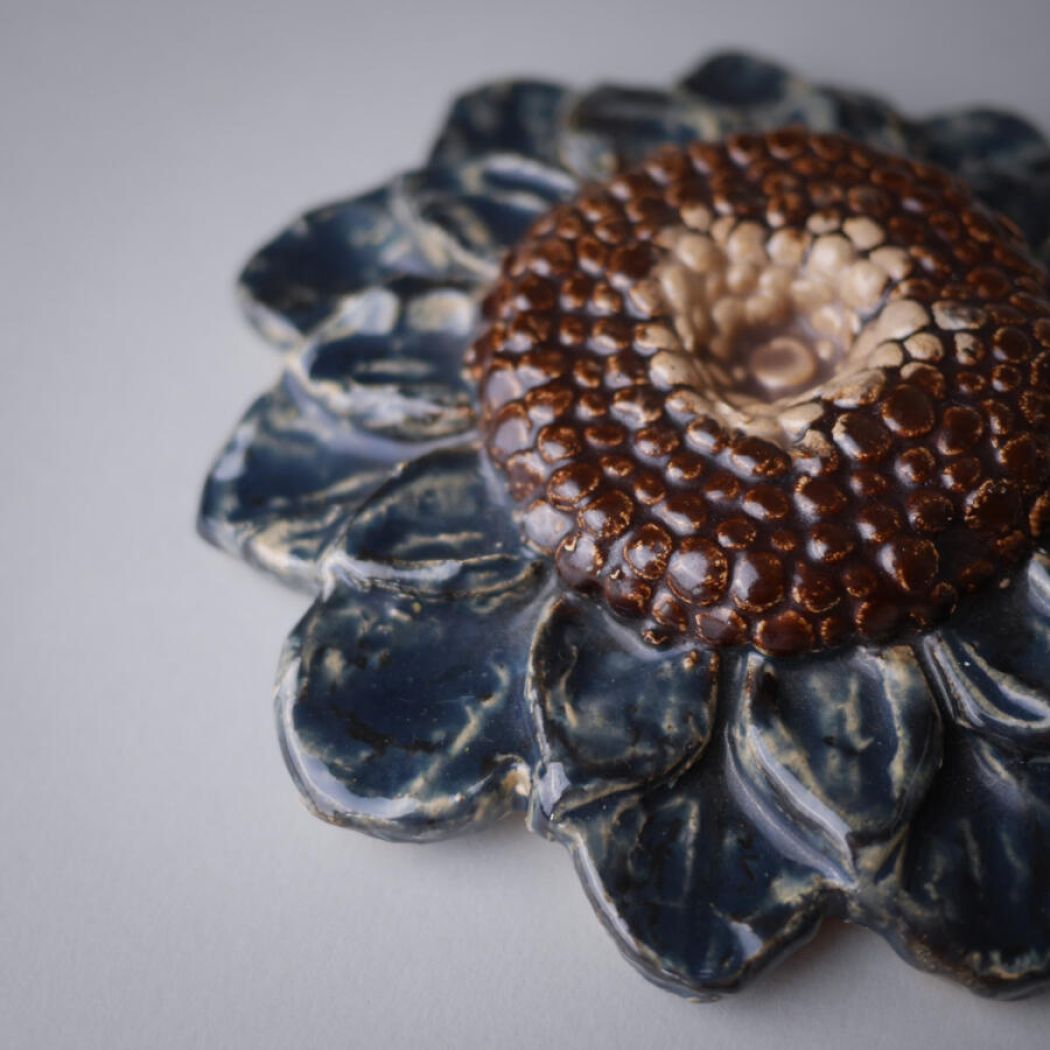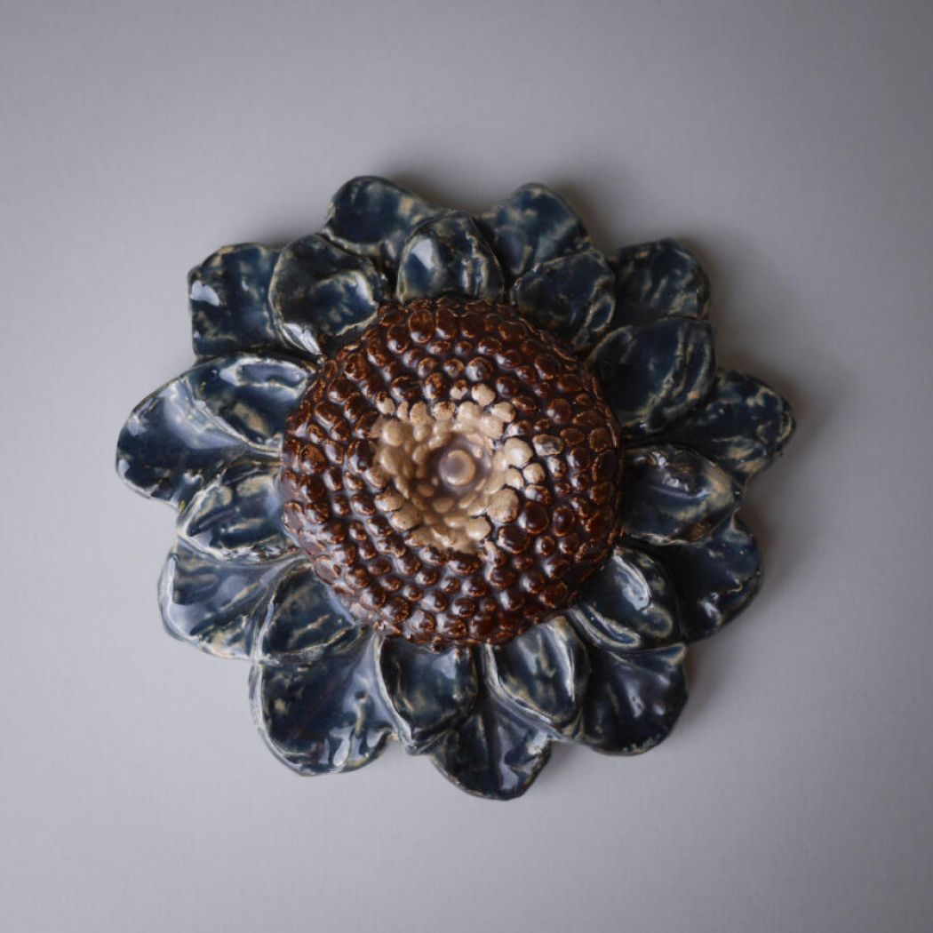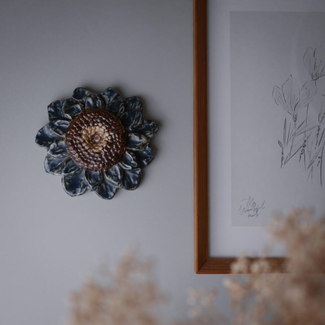 Den mest fantastiske solsikke i keramik til væggen. Solsikken er håndlavet, og i de skønneste farver og med så mange fine detaljer. En smuk og unik vægdekoration, som man ikke falder over hver dag! Solsikken er fundet i Sverige.