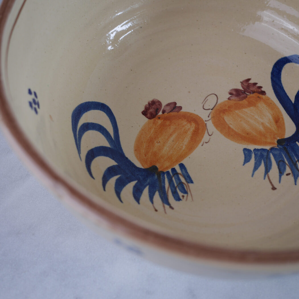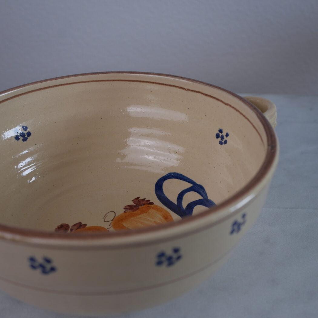 En smuk og meget stor lys italiensk spaghetti skål i keramik med blå og orange dekorationer. Den perfekte skål til forberedelse og servering af spaghetti, pastaretter og salater. Giv middagsbordet et strejf af Italien med denne smukke skål.
