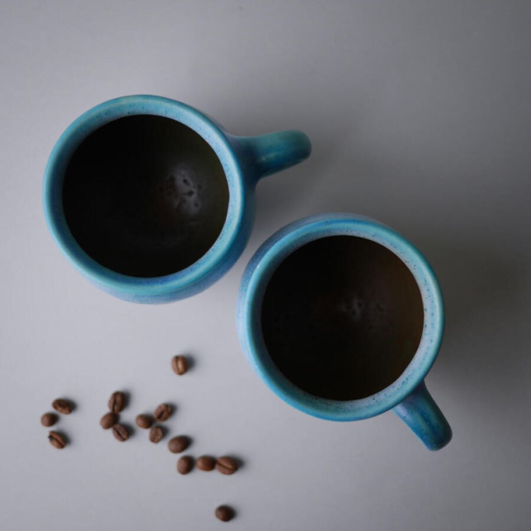 Lækre unika keramikkrus i den flotteste turkise nuance med masser af spil i glasuren. Et krus til samlingen og til morgenkaffen – så kan dagen ikke starte meget bedre! 2 stk. haves, sælges separat.