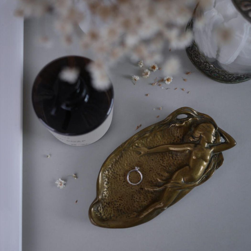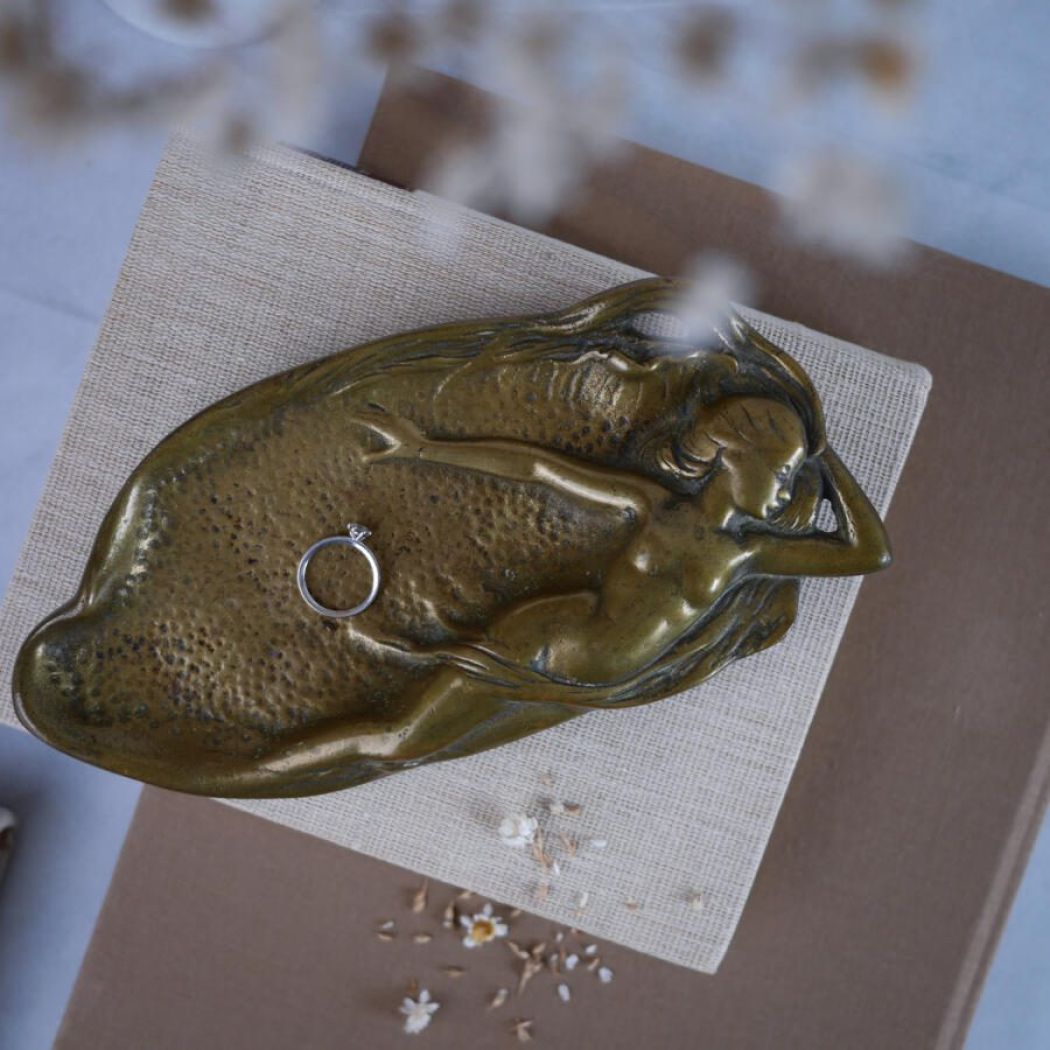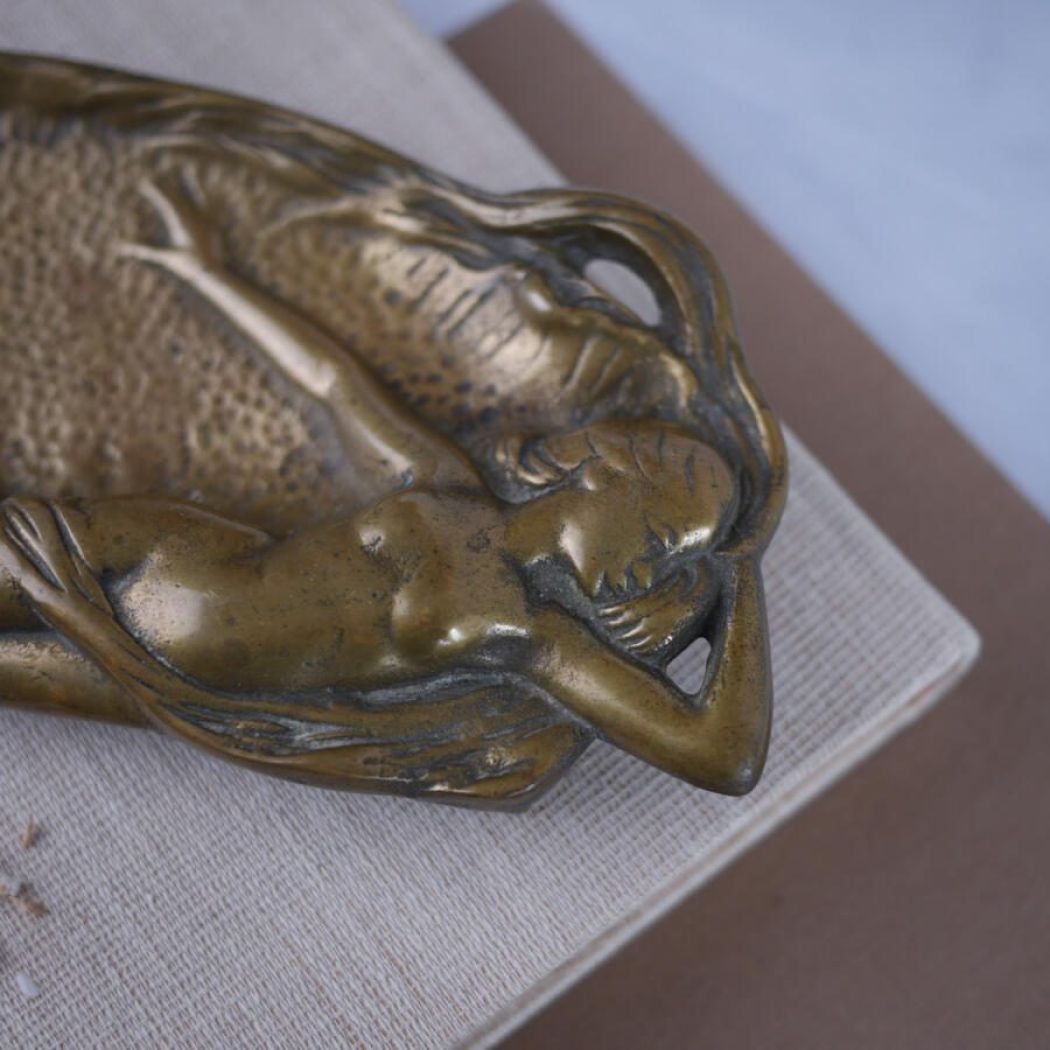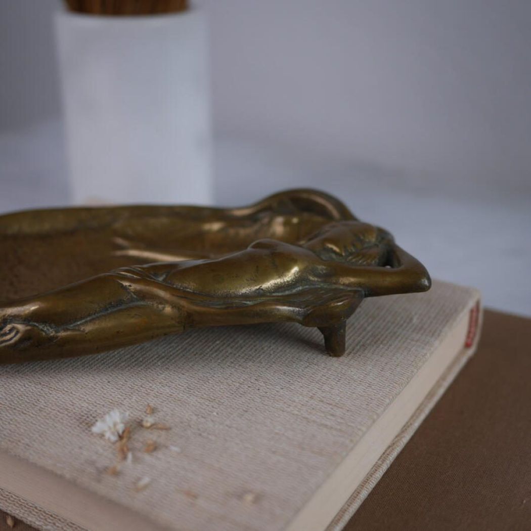 Et smukt unika messingfad med kvinde dekoration. Pyntefadet er i en lækker tung kvalitet – virkelig kram. Perfekt til smykker og nips. Messing har en helt særlig evne til at give indretningen varme og stemning.