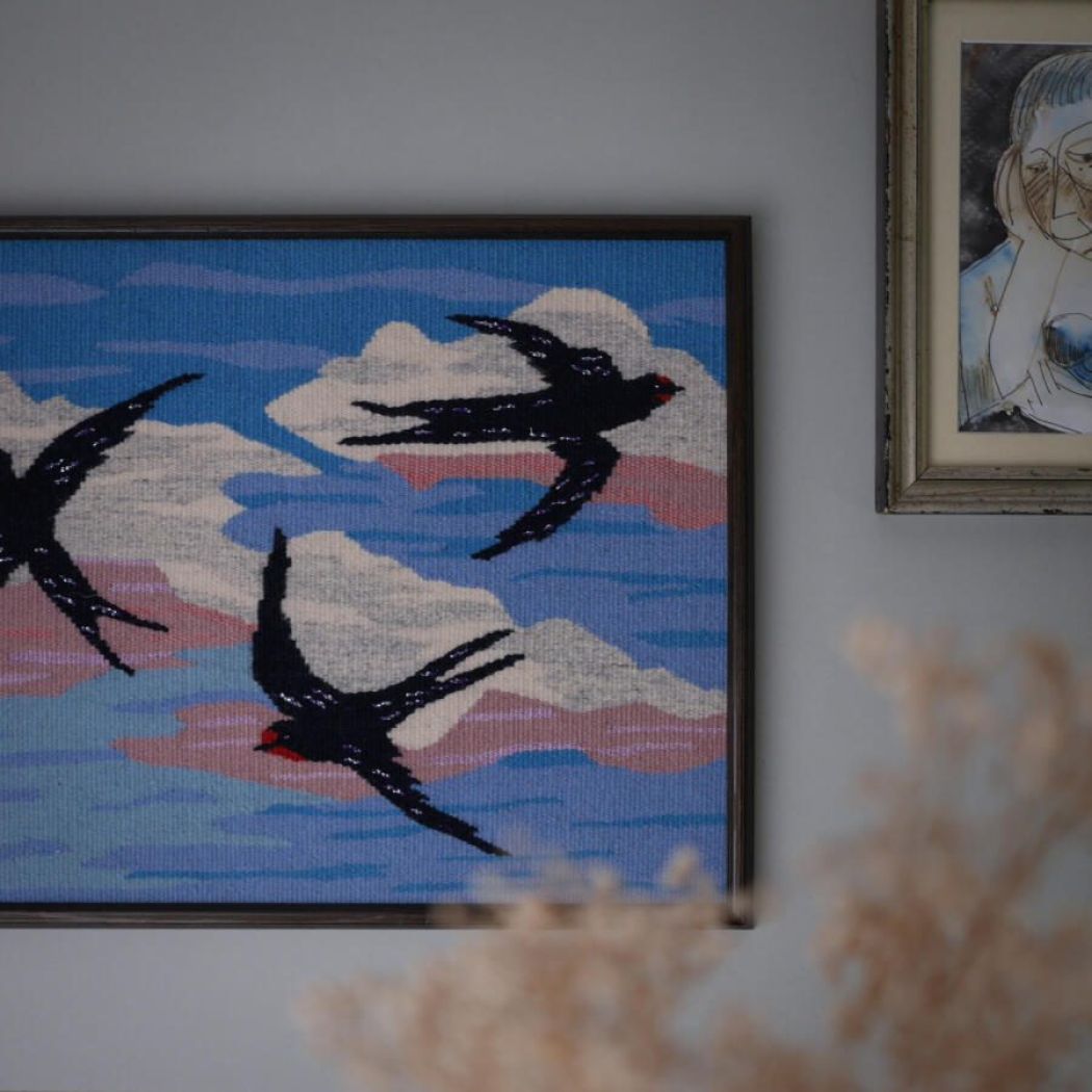 Vævet Pastel Billede med Svaler